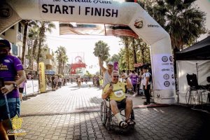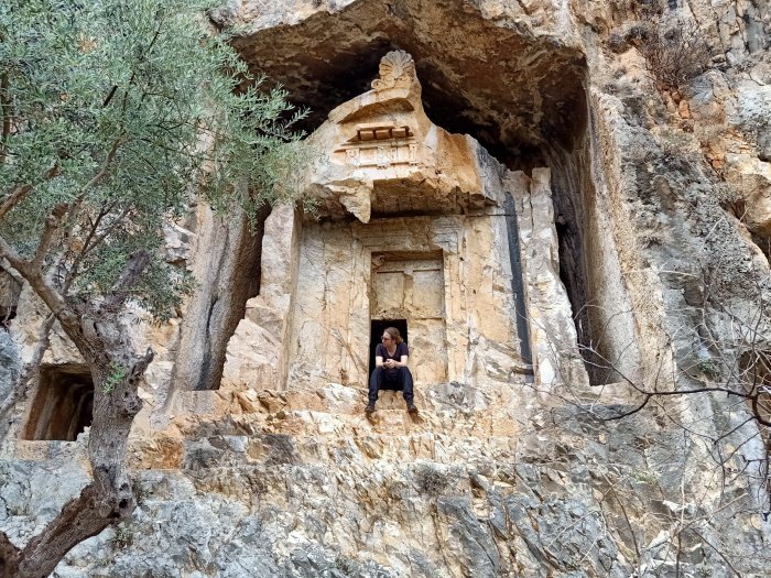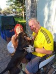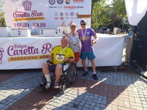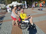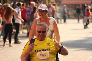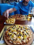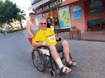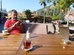 For lunch we popped to one of my favourite restaurants, which was a first this year for Captain Caveman, Kordon. Luckily it is open in the winter time and does gluten free options. I had chicken shish and Captain Caveman had the biggest pide I’ve seen in a while. I had a couple of glasses of white wine but then had to leave Captain Caveman with his beer while I went to meet a man about a dog. John was entered in to the forthcoming Caretta run and had unfortunately broken his foot while here, resulting in a cast and crutches. Instead of giving up he decided to ask on a Facebook group if anyone could push him round the 5km course as he was raising money for the dog charity. As it happened I had no plans so I volunteered and he accepted and I went to meet him to practice pushing him in a wheelchair – how hard could it be!?