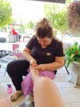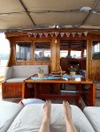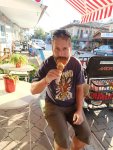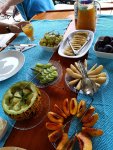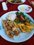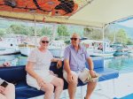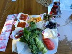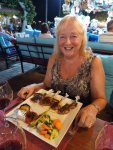 We went to Jiks for a late lunch where I had a chicken kebab and it was very tasty, Captain Caveman had a pizza and it looked great. Here in Dalyan you can get Avon and so I collected my order and went back to meet the table lady. She paid a deposit and promised to return the next day to collect – she also had arrived by motorbike but it would be a tall order to fit a dining table, 4 chairs and a spare set of seat covers on it. The lady with the bed was unfortunately unable to come until another day and so we left the bed as it was, went to meet my parents for a pre-dinner drink at Soul Kitchen (another one of my favourites where they have a playlist for my parents). They treated us to a complimentary fruit plate with sparklers and a firework on the street. My parents said they would be booking a flight to go back home, to the UK, for this coming Friday and so I wanted to make sure we saw them as much as possible before then. We decided on another meal at Adilan, which was a first for Captain Caveman, and we had a really good meal with wine. I have to say the jacket potato that came with my steak was the best I have had in a long time!