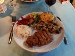 My parents, Captain Caveman and I had an excellent last night at Bistro Blue (of course you guessed it) where we ate like kings and made full use of that dancefloor. Captain Caveman and I shared starters of garlic mushrooms and liver & onions then both had the stuffed cheese meatballs which were all so good. Of course we had a few wines and then had a good laugh with Selahı and Annie, the owners, to wish my parents well for the end of their 7 week holiday!