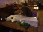 At 4pm I went round to Lukka with various bags to return or give away to people before I left. Sarah got Bacardi, prawns and sugar, Maddie olive oil, Katrina flour and olives, Leanne her coat, wig, feather boa and some snacks for her kid, Andy a beer. When I arrived at Lukka a lot of the familiar faces were there to laugh at the sorry state I was in. I ordered orange juice then went to pick up some earrings I had ordered for Tatas, in Vietnam, the same stone as my ring and Amanda’s earrings. On my way I popped in to Mustang to pick up the cake plate, Sarah’s glittery glass and to thank them for the night. It was a bit worrying that I got applause from the staff when I went in! I walked back to the bar after returning the plate and it’s surprising how many people offer you wine when you are walking down the street with an empty glass!