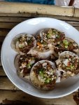 On Monday 23rd March Captain Caveman went to Oxalis in the morning and arranged to borrow a car so that we could go to Dong Hoi to change dollars at the gold shop. This money was all the tips so far this year which were given to the Oxalis porters and guides and, given the lack of work in Phong Nha now, it was a good time to give the money out. Tatas also asked to come along as she needed to get something in the market. Our first stop was the wine shop which we were surprised was still open – we bought 4 bottles of red wine and a bottle of vodka. I was getting a bit hangry as there was very little open for breakfast and we went to the Vincom centre for snacks. As we entered, all masked up, the security guard checked our temperatures. Captain Caveman and Tatas were both 36.6° and I was the coolest of us all at 36.2°. We had a drink at the Sherlyn Coffee shop (I had a passion fruit smoothie) and then we drove over to find some lunch. There wasn’t much open but we found Thai Binh Street Food. The food was actually pretty good and I would go there again. I had pork kebabs, Tatas had beef and chips and Captain Caveman had some beef jerky which was delicious.