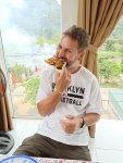 It was muggy and hot on Thursday 26th March and the cycle in to town for breakfast was sticky. Captain Caveman had the eggs benedict and espressos while I had fruit and yoghurt with honey on top and a herbal tea at Coffee Station. On the way back we decided to call in to Ho Khanh’s. We had some drinks and eventually we left so that we could go to lunch – at about 5pm!!!