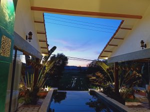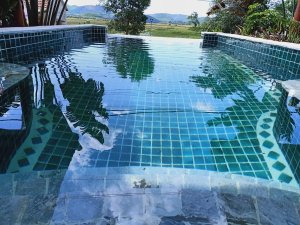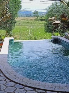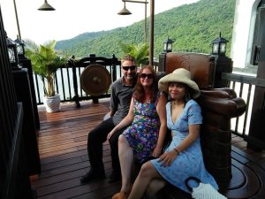 The walk to the poolside of the main building went better than I envisaged and is flat so I was capable of navigating to a comfy seat. The friendly staff brought us a cold lemongrass towel which was so refreshing and a welcome drink, they made sure we had a fan directed at us. We met Mai, the customer relations person, who would be looking after us and showing us to the brand new accommodation at the Phong Nha Farmstay – The Jungalo Collection Villas were now open!