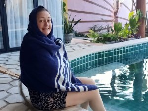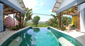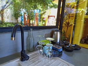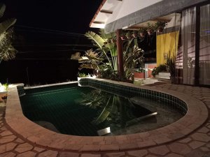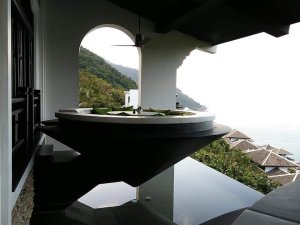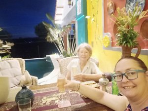 Captain Caveman went to the room, or should I say our pool villa, to drop off bags while I enjoyed a second ginger beer with ice (I know how to live it up). It was very sunny and where we were going to be staying was a short walk for an able person but a tiring one for crutching so I stayed where I was. When I did set off I was very slow and Captain Caveman went on ahead but waited at the very short, but steep, sloping entrance to the path which went to our new home, Little Lies. I struggled a bit, he had to push on my back to stop me falling backwards and I was a sweaty mess by the time we got to the door.