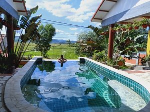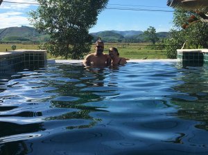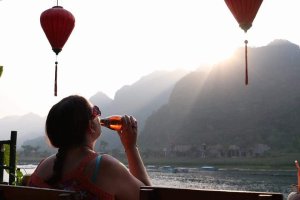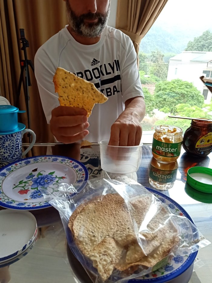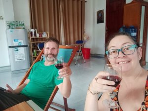 There was lots of use of the pool, chatting to visitors and then our friend, Veronika, joined us before sunset so we could have a drop of wine and some food. I found the villa so easy to get around and the food was top notch. I’d not even gone to bed but I knew already this was going to be the best place to stay in Phong Nha. After dining by our private pool on Nem Lui for me, pizza for Captain Caveman and an Aussie pie for Veronika we were stuffed and retired to our rooms. I’m not saying the bed is big but I had to put my glasses back on so I could see Captain Caveman at the other side of it as we finished wine in bed.