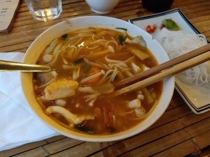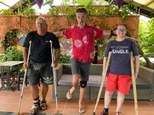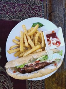 Monday 1st June, a new week, a new month and a new place to stay! We were up early, Captain Caveman had a car booked for 9am to take us to Capture café. I was excited to be going out for breakfast and managed the bum shuffle downstairs a little quicker than the last time, while Captain Caveman carried my crutches and bag. They do a great smoothie at Capture so we both ordered one and I stuck to my usual bacon, beans and potatoes while Captain Caveman had beans on toast with two fried eggs, cheese and a swirl of brown sauce (he’s an animal)! The staff were attentive and there was just us there on account of Phong Nha having very few tourists or visitors around. I managed to visit the toilet (after sending Captain Caveman in for a safety check) and crutched around fairly steadily. After breakfast Captain Caveman instructed me to walk to the road to get our lift, I used the big ramp outside and found it easier than stairs. I’d not realised before but Capture café is geared up for people with disabilities like mine.