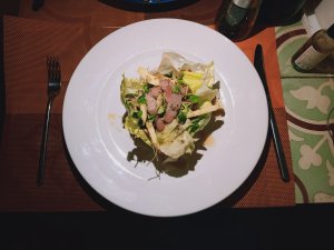 When Phuong and I arrived back at The Villas Caroline invited Phuong to come to join us for margaritas and popcorn. Captain Caveman ordered a pizza and I had the rather tasty smoked duck salad. I got on the back of Captain Caveman’s hired motorbike from Thang to go home and managed to be fine getting upstairs after my 2 margaritas. We were home early and in bed for 9pm, so much for Wine Wednesday – it had turned in to Water Wednesday.