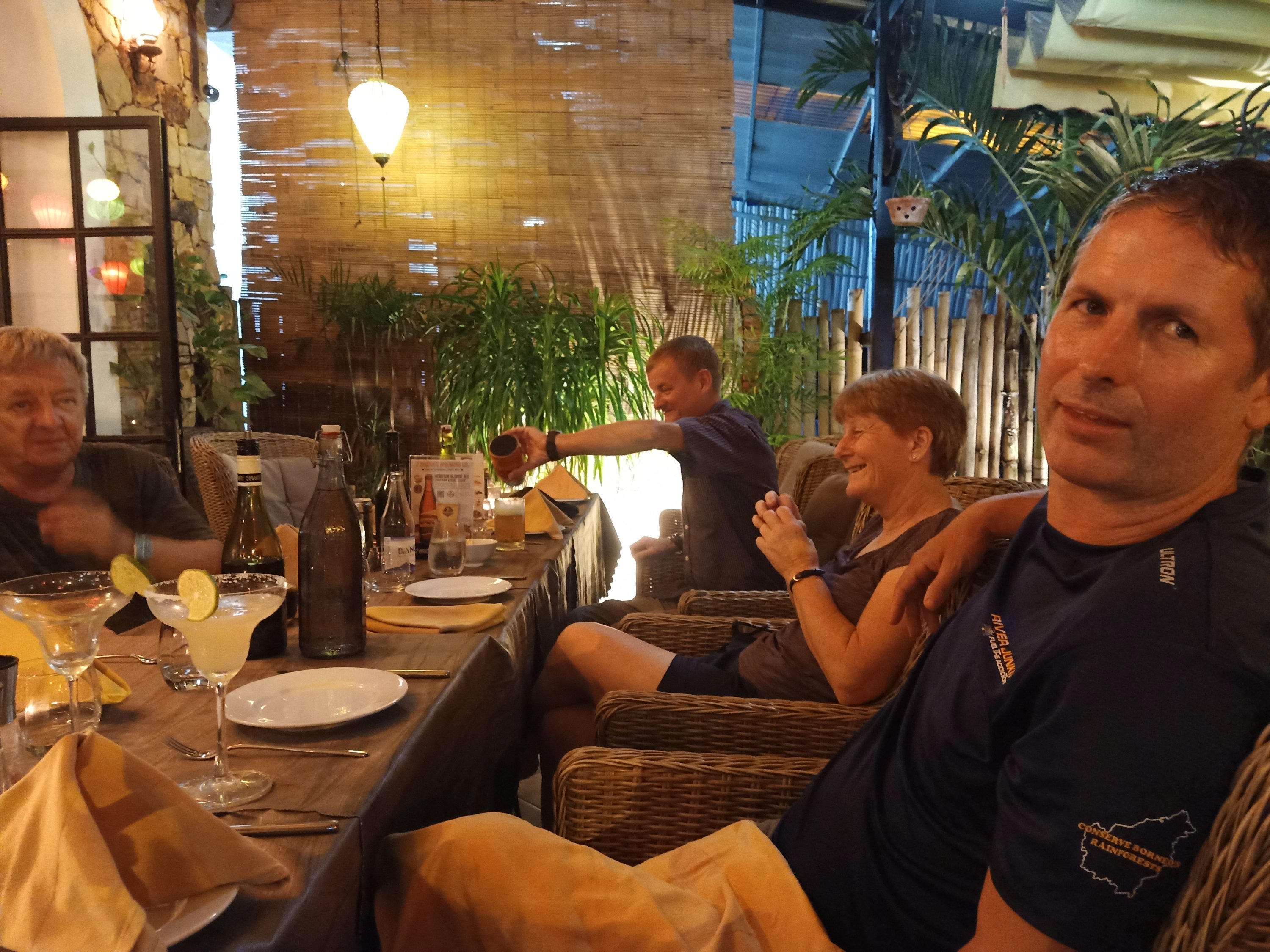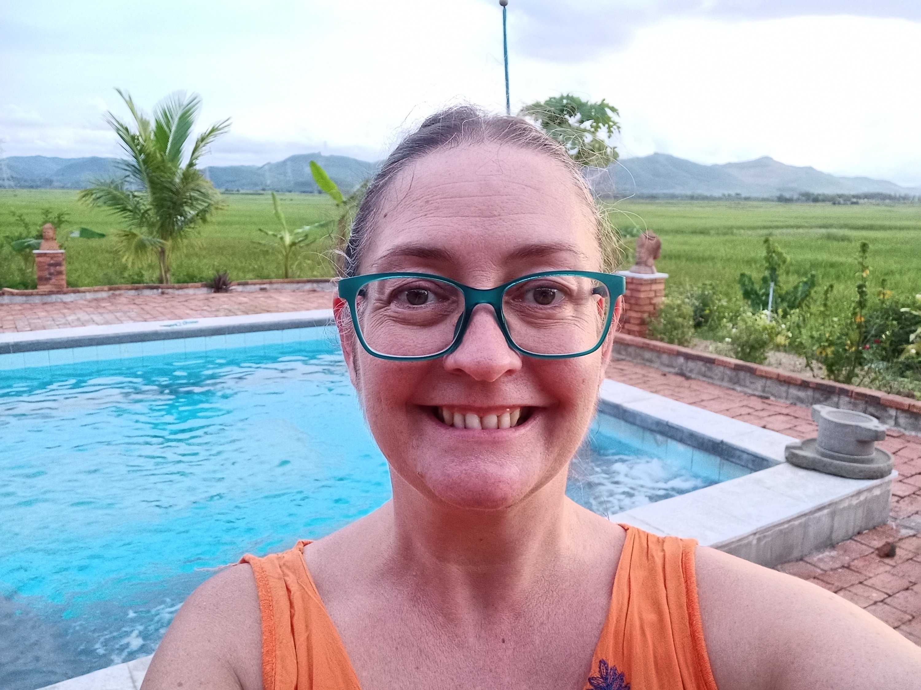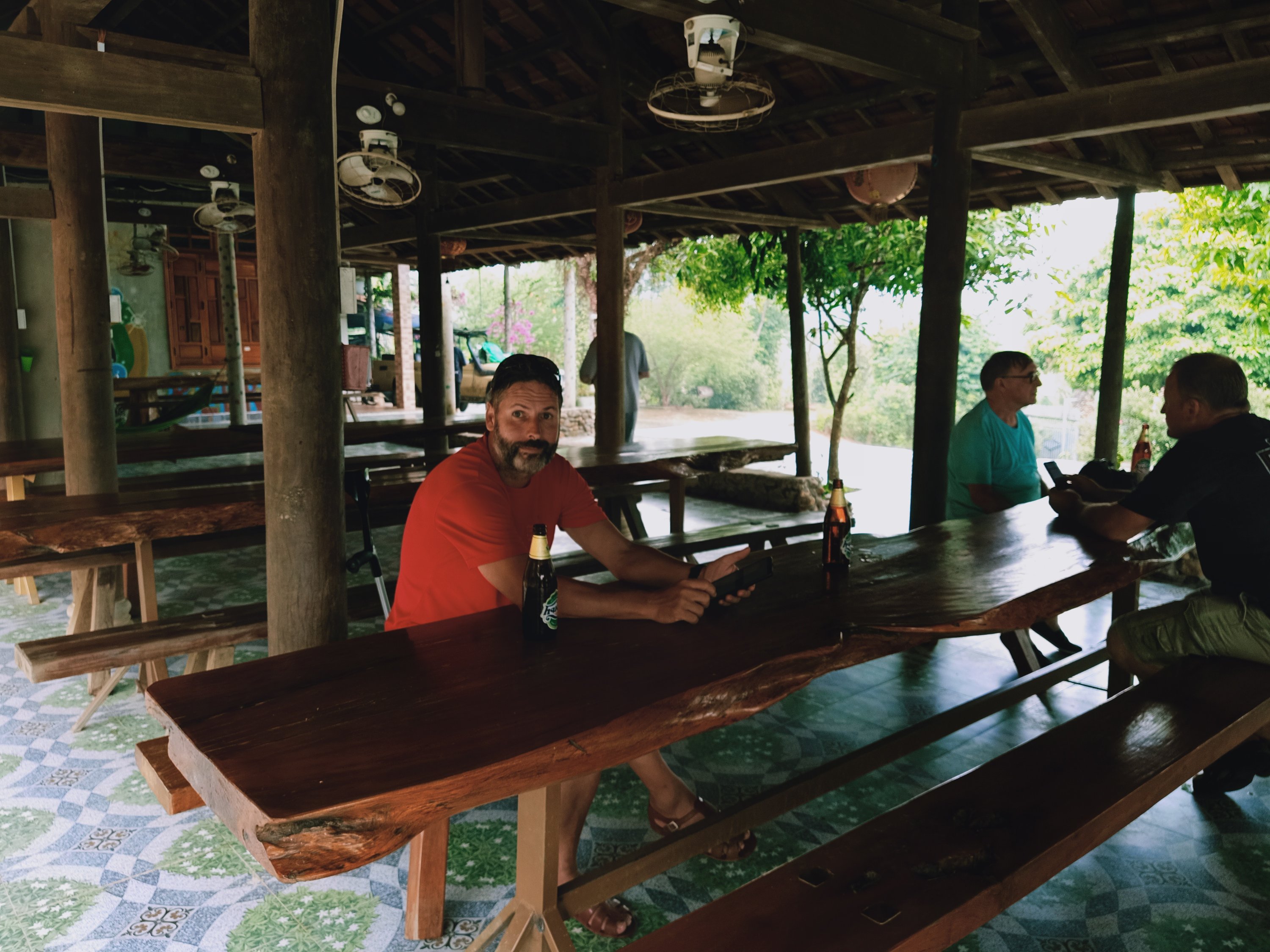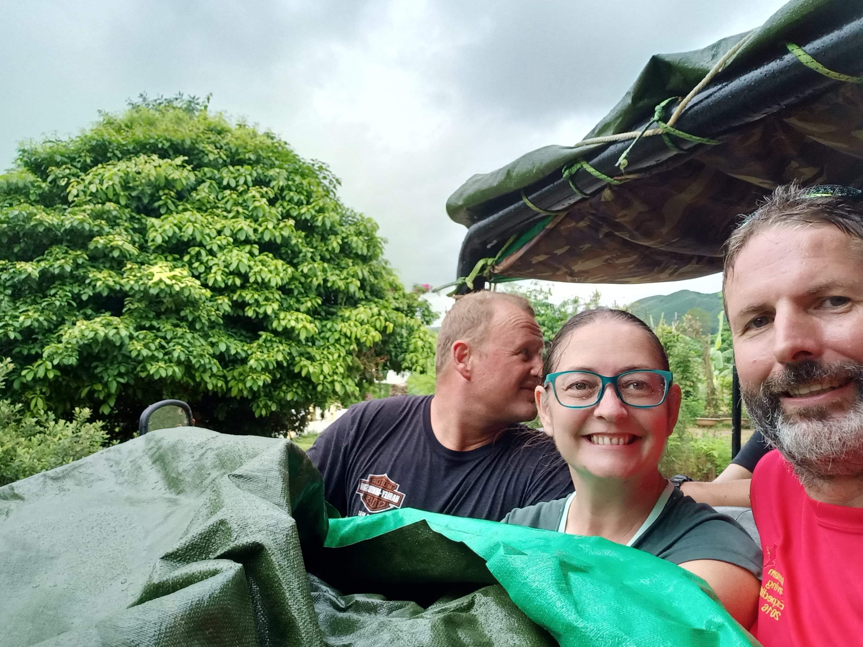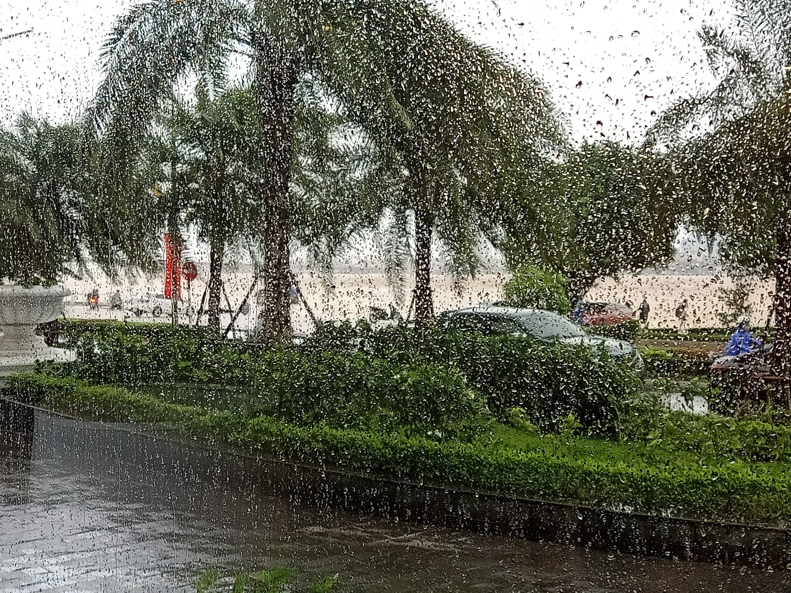 When I came down in to the kitchen on Thursday 15th October the cleaners were here and so I took my pot of jasmine tea outside and I got talking to Co and Duyet. They introduced me to ‘con cháu chấu’ which means grasshopper – they are pests to the beautiful orchids which are in the garden and Co picked it up and threw it away. Time was cracking on by the time I went back indoors and so I had gluten free cookies for breakfast and then added some grapes for lunch. While the weather wasn’t too bad, where we were, it had continued to be pretty awful in our neighbouring provinces and it looked like we were definitely in for a very wet weekend.