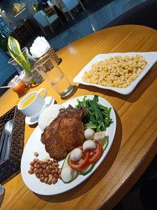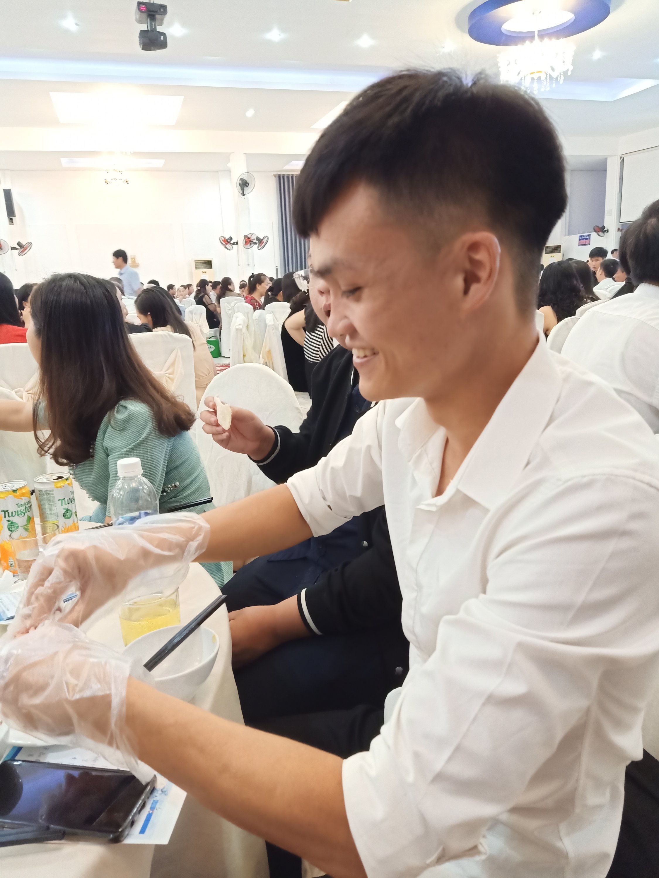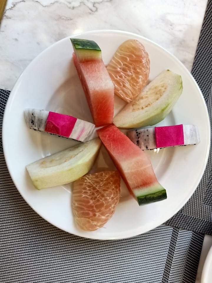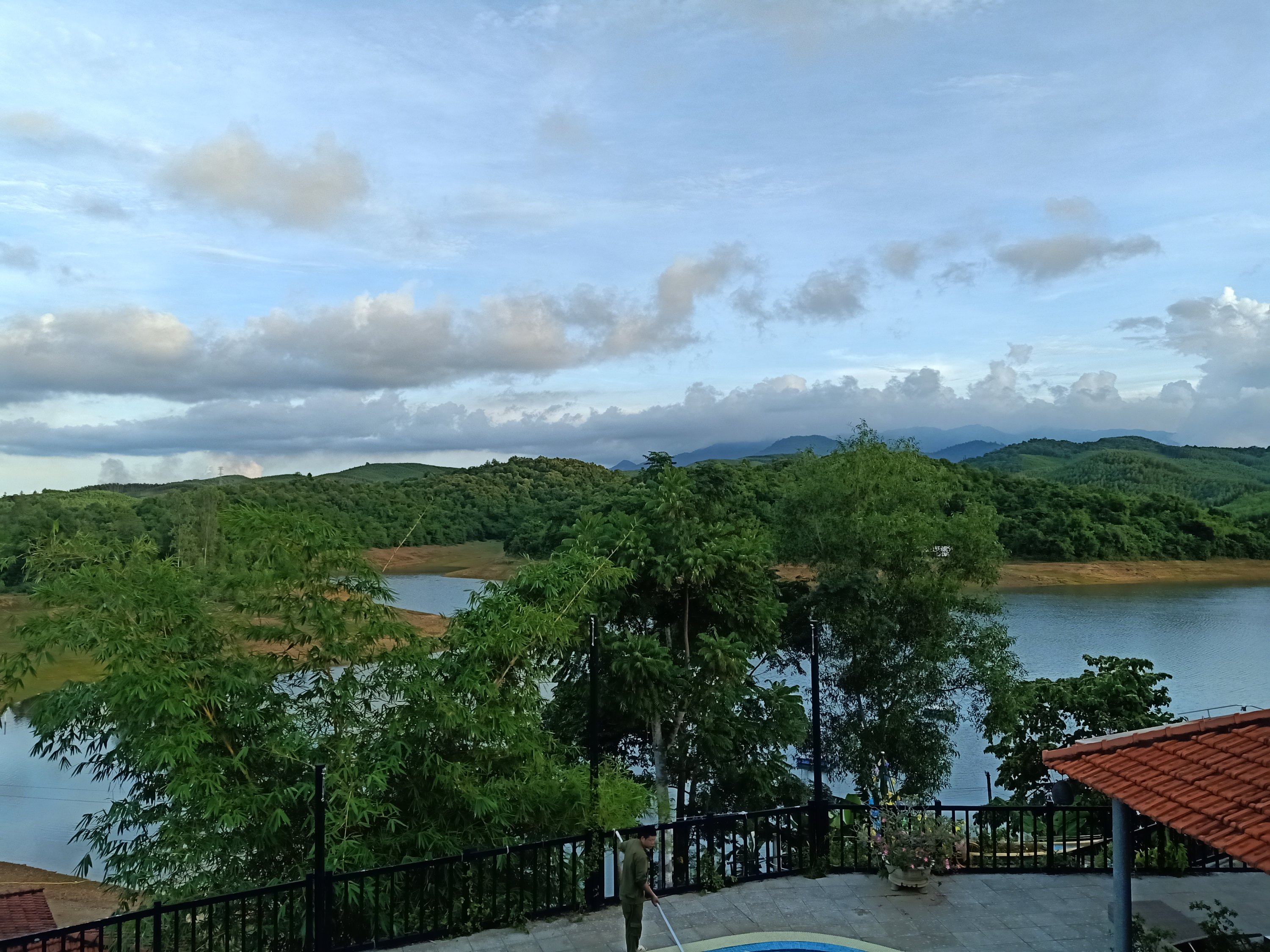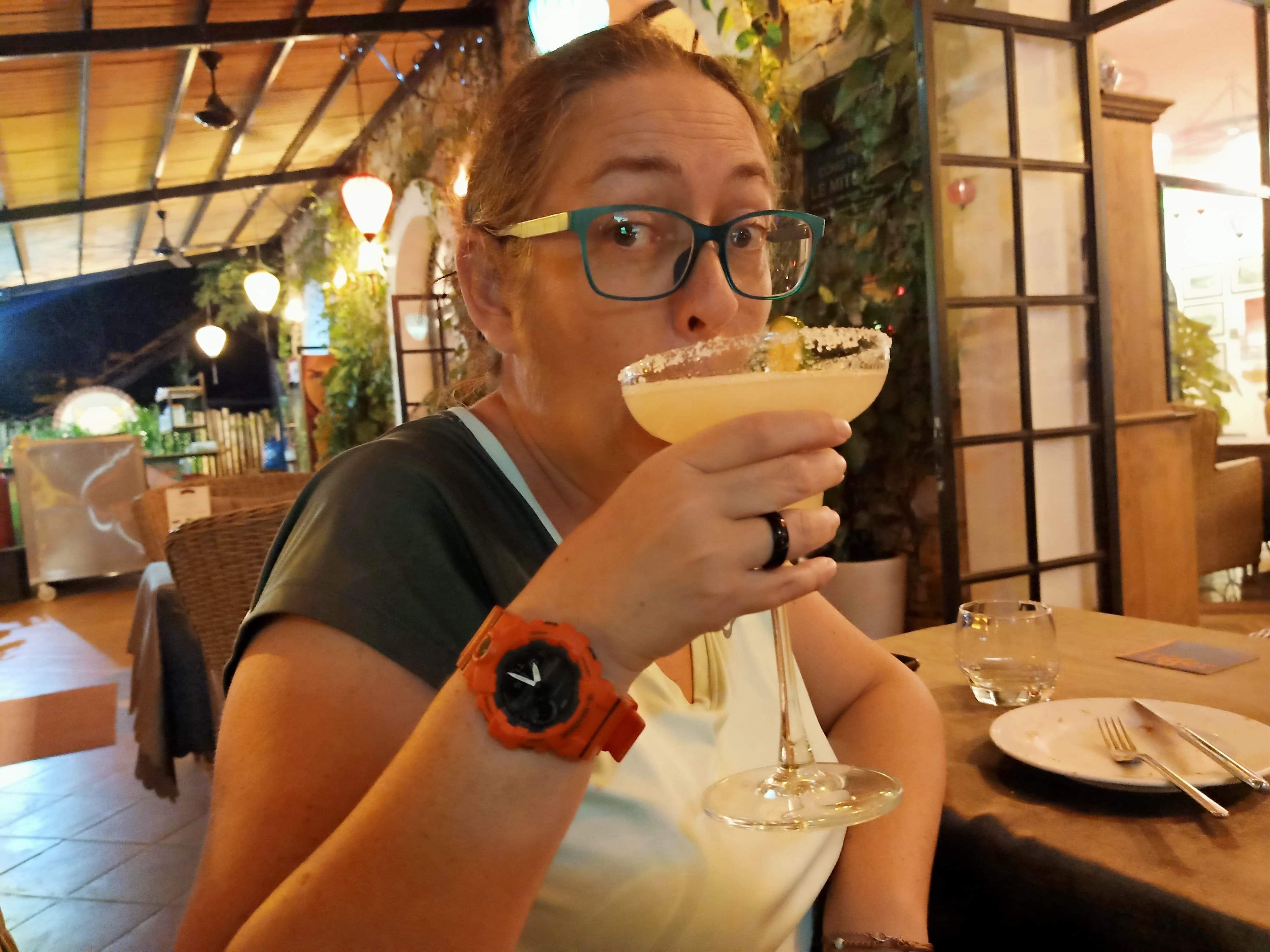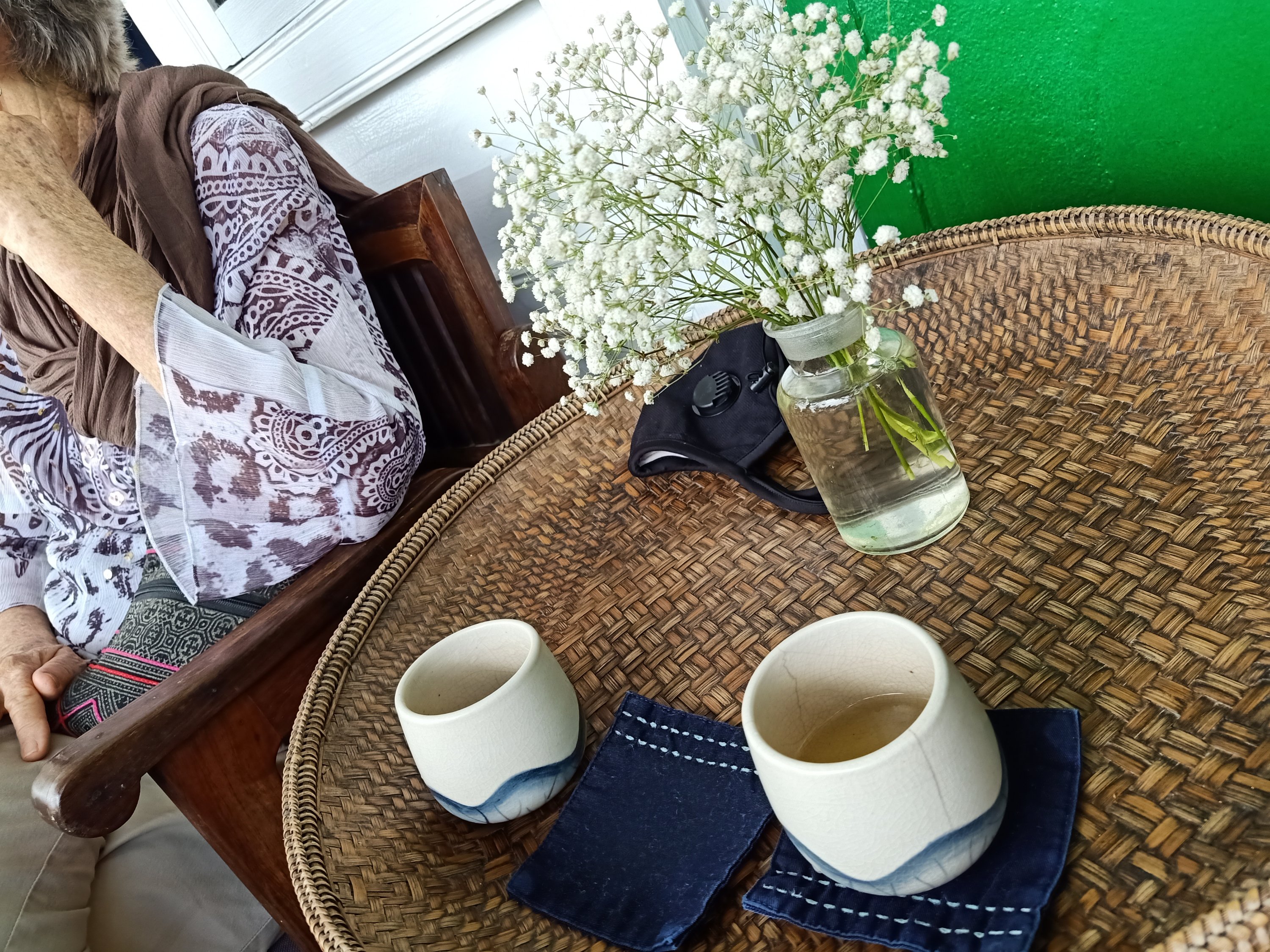 When I came down in to the kitchen on Thursday 15th October the cleaners were here and so I took my pot of jasmine tea outside and I got talking to Co and Duyet. They introduced me to ‘con cháu chấu’ which means grasshopper – they are pests to the beautiful orchids which are in the garden and Co picked it up and threw it away. Time was cracking on by the time I went back indoors and so I had gluten free cookies for breakfast and then added some grapes for lunch. While the weather wasn’t too bad, where we were, it had continued to be pretty awful in our neighbouring provinces and it looked like we were definitely in for a very wet weekend.