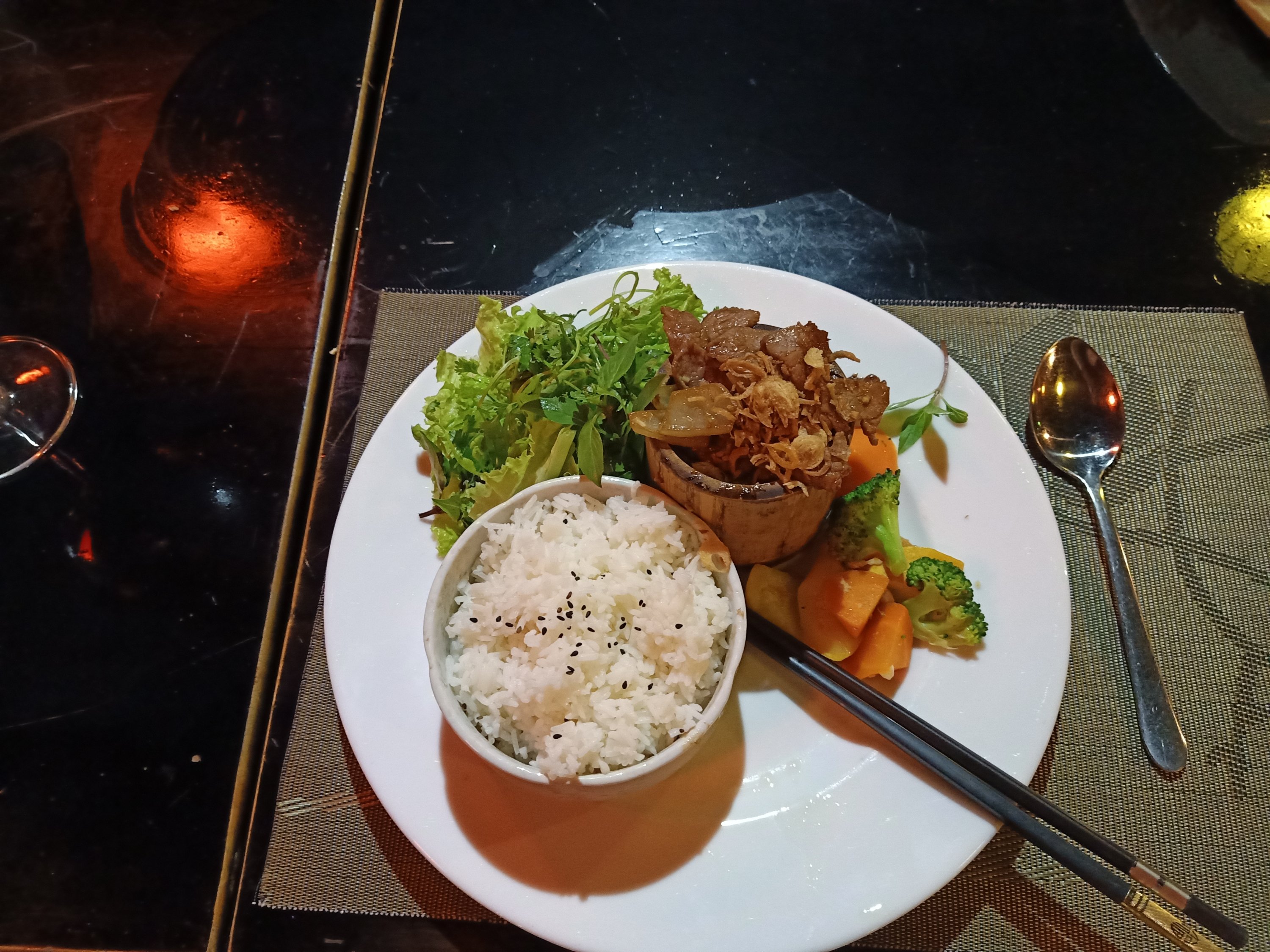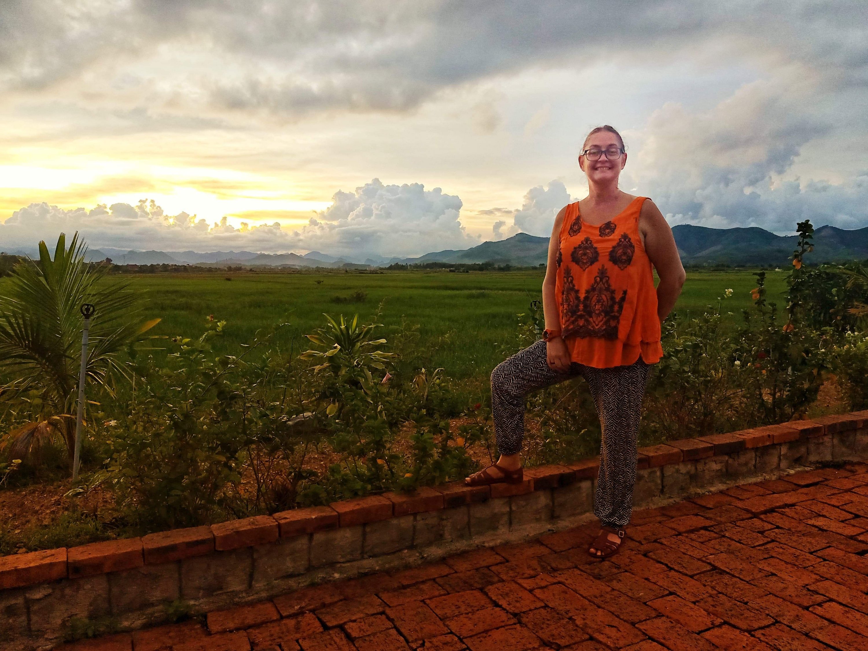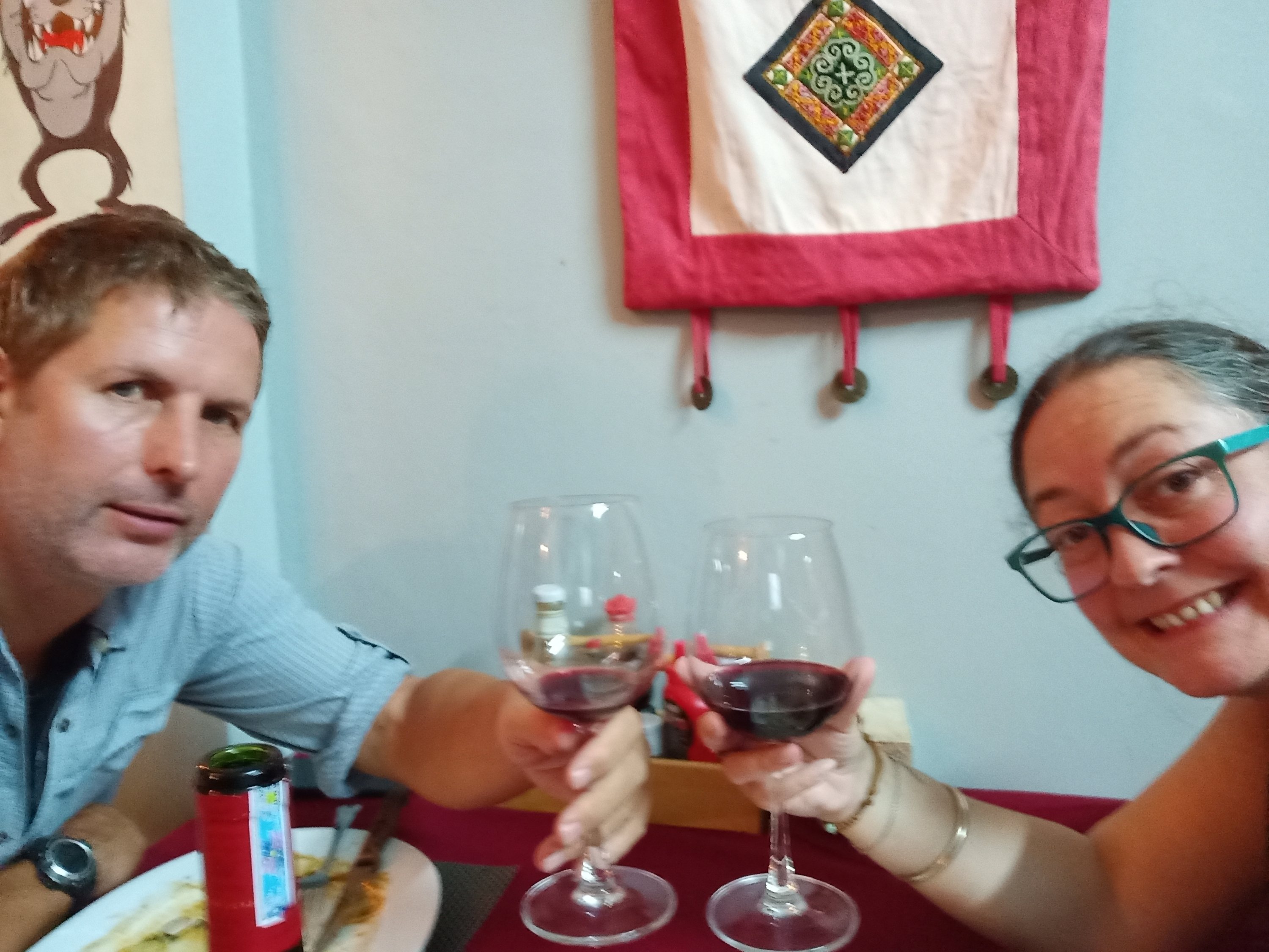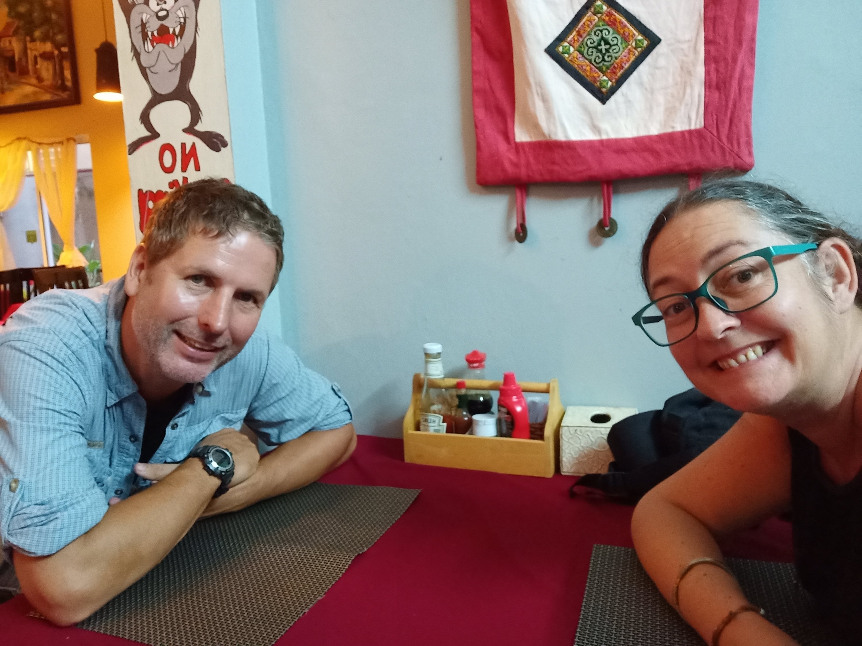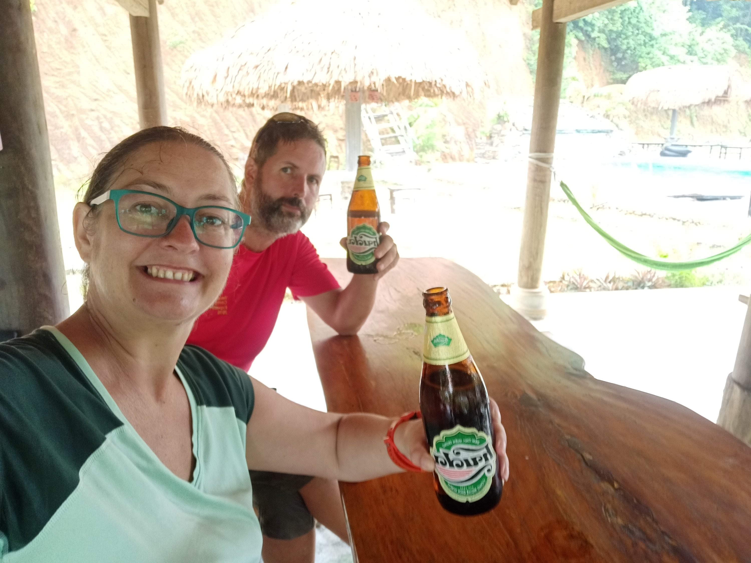 Our first stop in Dong Hoi was the organic shop where we stocked up on vegetables and fruit, I also bought some cheap peanuts. Our second stop was at Bibi’s clothes shop where Bich was picking up Marmot raincoats which really looked the business, I was tempted to replace my (donated by Josh) Oxalis raincoat which isn’t waterproof. They were great value but cash was tight until payday and so I didn’t think it a good idea to waste money on something I would rarely use on account of me not going far. I saw some amazing dresses which were made from silk and had pockets but was sure they would be too expensive or too small. I tried a couple on and they both fit, actually one was too big, but the one I really liked was nice, slightly baggy and comfortable. I decided to splash out and spend the 500,000 vnd (about £16.50) and buy it, it would look great with black tights or leggings on a wintery night. I was ecstatic to buy a dress off the peg in a Vietnamese dress shop! Our next stop was at a newly opened supermarket called Tuan Viet Gourmet which was fantastic because it sold gluten free stuff as well as British stuff. I bought crisps, gluten and sugar free chocolate cookies, beetroot wafer crackers and baked beans. They sold McVittie’s chocolate digestives which Watto would be shoving in the trolley like a kid in a sweet shop if he was here. Our last stop was for brunch at Tree Hugger where I had herbal tea, a peach tea and veggie spring rolls. The weather was fine, in fact it was warmer than expected and we sat outside. Tree Hugger had been closed for a bit of renovation and it looked even more cosy than before. It was great to see Anna, the owner, who is so lovely and very welcoming. On our way back to Phong Nha we called at the chemist near the hospital and stocked up on a load of stuff, I got amoxicillin for my infected eczema and started taking it straight away. When I got home I did my exercises which were tricky as my good leg was now a bad leg too. I got confirmation my visa extension had been done and that my passport would be getting returned to Captain Caveman – a relief I was now able to remain in Vietnam until the 9th November. That night for dinner I was feeling too lethargic to cook and so I ate the rest of the sourdough with butter and took a cup of jasmine tea to bed.