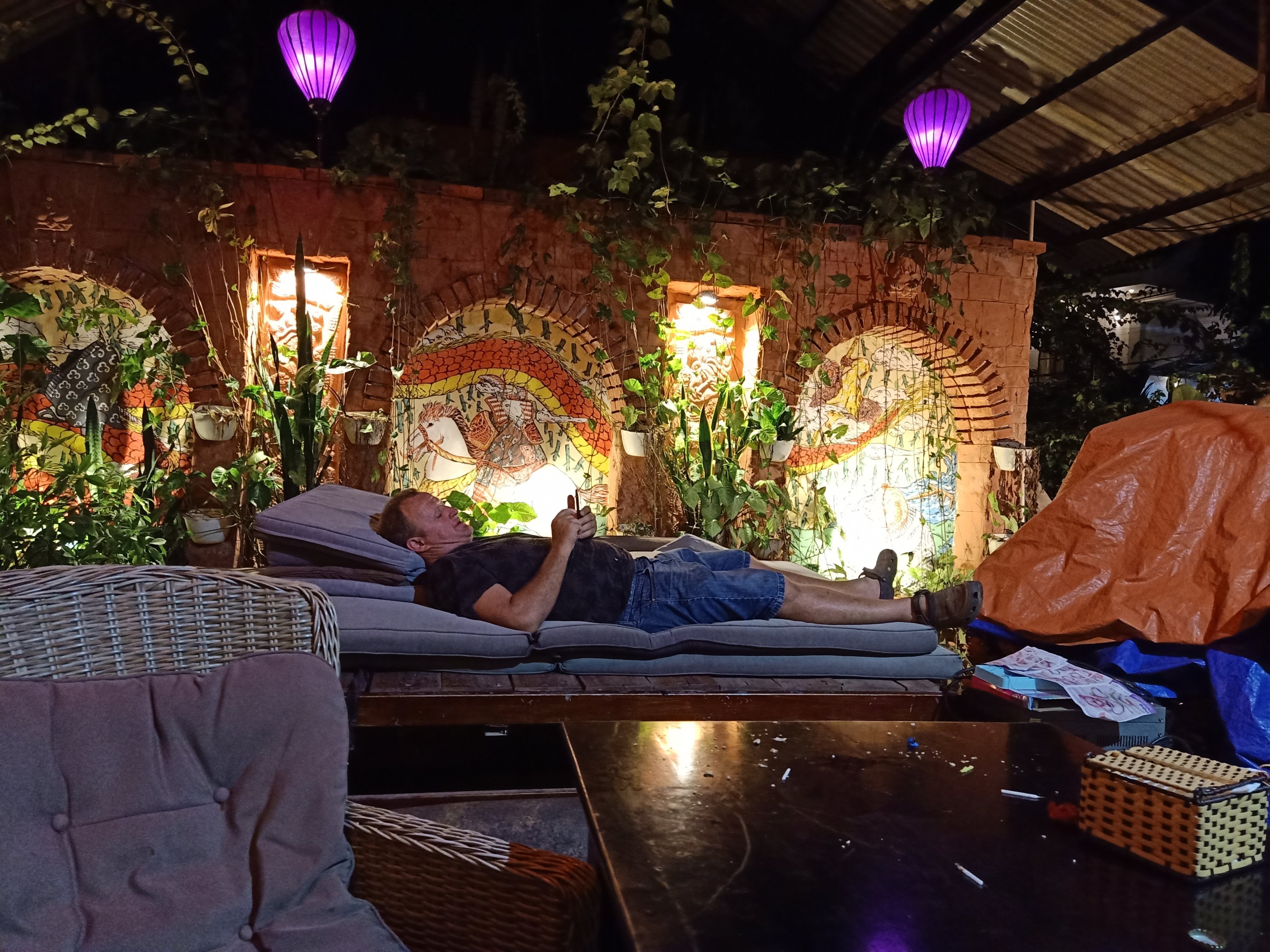 After 3 days off from physio and only 5.5 hours of therapy last week I had managed to get booked in for an 8.30am appointment on Monday 12th October. Phuong picked me up at 7.15am and I shared the car once again with Shannon, Stu and Jack who were off to the airport and flying to Saigon for a few days. The journey took a bit longer due to it being incredibly wet on the roads and when I got to physio it was ankle deep water that I had to walk in. That was the easy part because inside, on the lino floor, it was very slippery in bare feet and I was sliding a bit. Phuong helped me with the doors and told me to keep my shoes on but I managed ok. More flood photos were appearing on Facebook and there was news of hydropower plants facing landslides. Back at home I had a dragon fruit and an orange for lunch and shared a pot of green tea with Veronika. My visa still wasn’t ready but I was assured it would be in time for Captain Caveman to bring back at the end of the week, on his way back from Sapa. My good leg and the eczema was getting worse and I think it was infected so I was putting cream on but now the shower gel seemed to be irritating it and it was definitely infected. I had a zoom call with Ruth, a friend of Captain Caveman’s and a physiotherapist in the UK, she asked me to tell her what happened again and then she asked some questions, it was tricky without being able to fully translate word for word my MRI results in to English but we made do. I was keen to be able to supplement the physical massage therapy with some exercises and so she said she would send me some exercises to do in addition to my sessions in Dong Hoi. I felt a bit more confident having spoke to Ruth that I would be able to make more progress and hoped it would be beneficial to do some exercises which she would recommend.