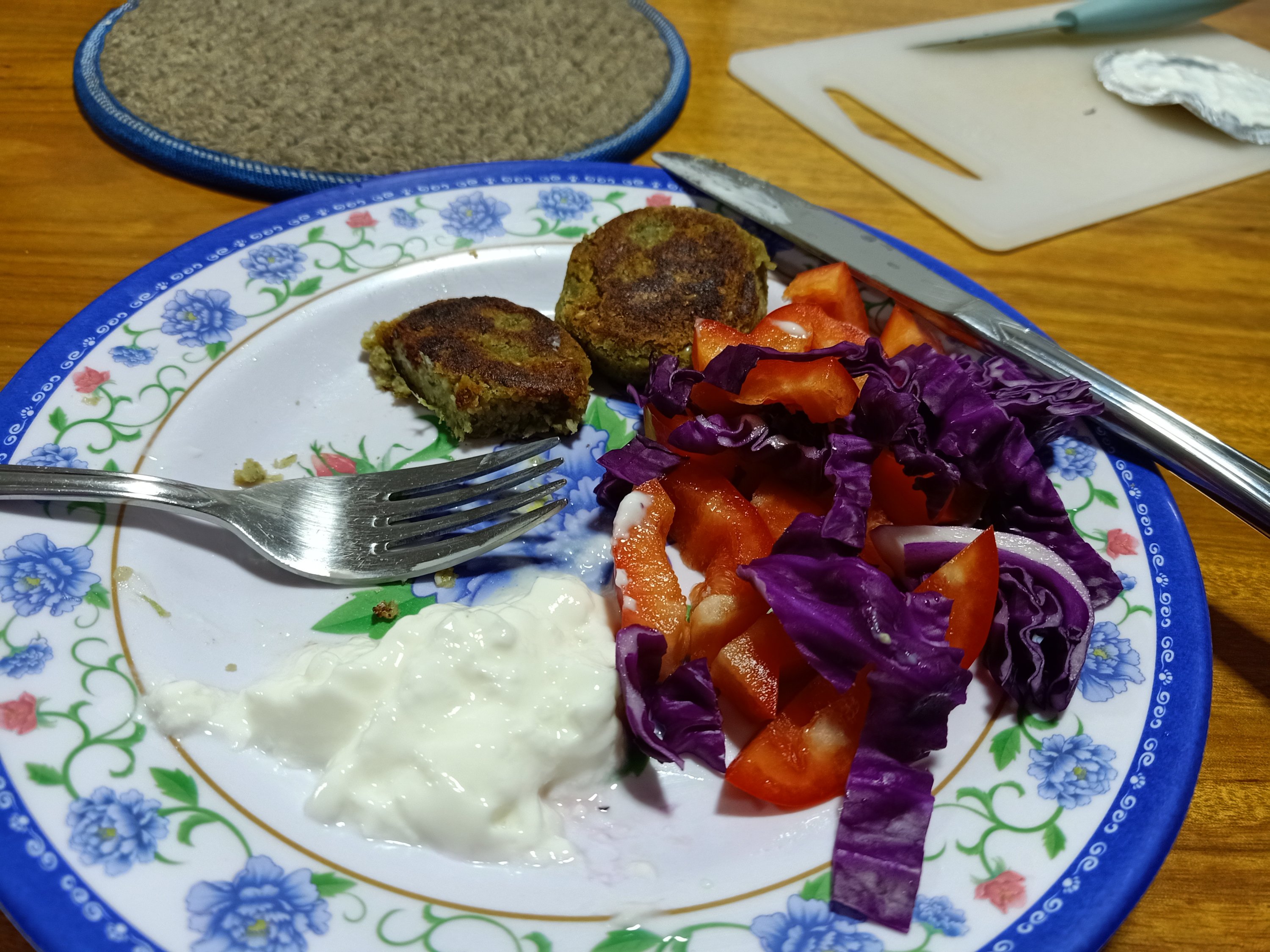 Veronika had made a bowl of tomato salsa which she was having on toast and I had some with rice crackers. I also made myself some veggie rice in the rice cooker and had that and shared Veronika’s left over wine.