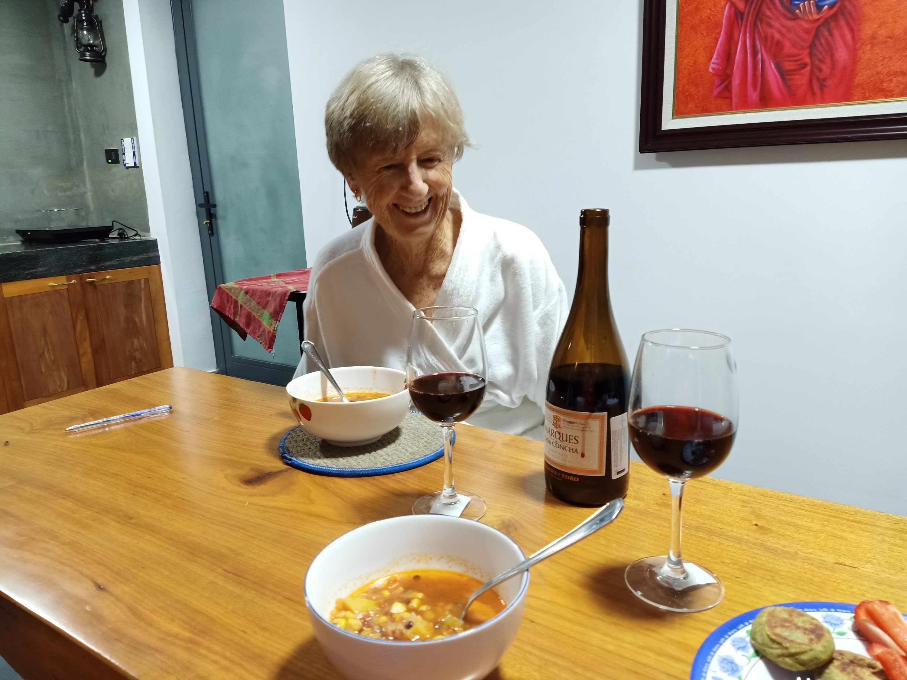 That evening Veronika asked if I would like to share her wine gift, I agreed and I ate my falafel and veggies for tea. Veronika had soup and offered me some which I enjoyed, it was a veggie one with a good tasty flavour. Back in the bedroom I put my returned laundry back and got ready for a good night’s sleep – I had planned a lay in!