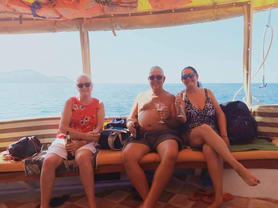 Yusuf at Amy’s bar had booked us on his boat trip on Thursday 26th September and so I met my parents at Jazz bar at 10am. We already had our swimmers on and had took a bag with a towel each and some suncream. We were lucky as we only had 4 more people onboard and so with just 7 guests it looked to be a nice peaceful and relaxing day. We sailed out on to the sea while drinking a cup of strong tea and I forgot to take a sea-sickness tablet. We had the chance to try a spot of fishing, swim in beautiful bays and enjoy the odd beverage.