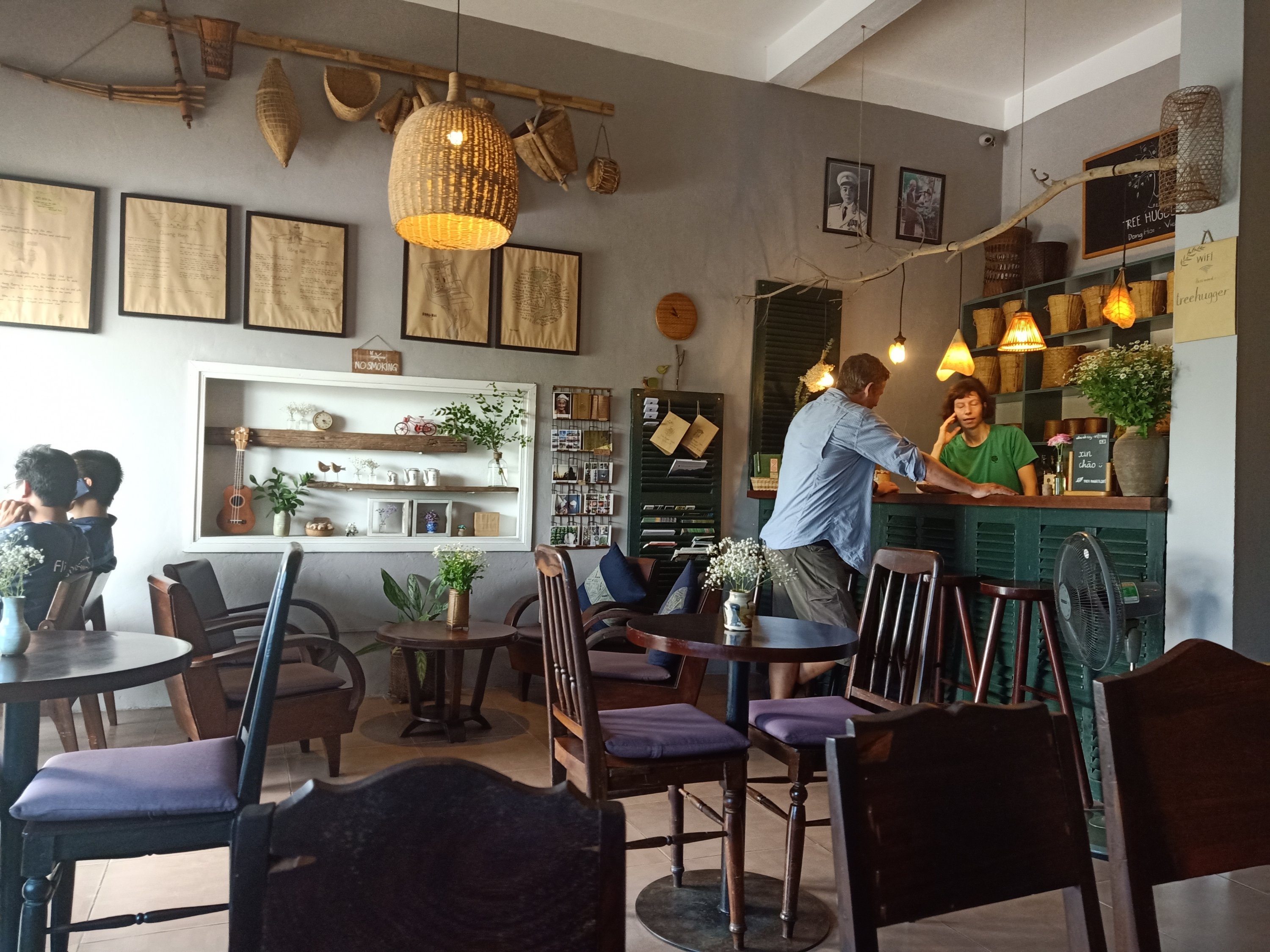 Phuong picked me up at 7:30am on Friday 16th October and we headed to Dong Hoi airport to pick up Captain Caveman, I’d also requested a physio appointment from Thuy but had not yet heard back from her. When we arrived at the airport Captain Caveman was already waiting and got straight in to the vehicle, this time without the bicycle which would have to be posted back. We went straight to Tree Hugger for breakfast where I gulped down a Gastropulgite so that I could have the amazing cheese and ham toasties with my herbal tea. Captain Caveman had coffee and egg sandwiches which he absolutely loves. I’m not sure he was too pleased to see me as he happened to drop a book from the bookshelf on to my back, which hurt (it was the Lonely Planet guide to Southeast Asia)!