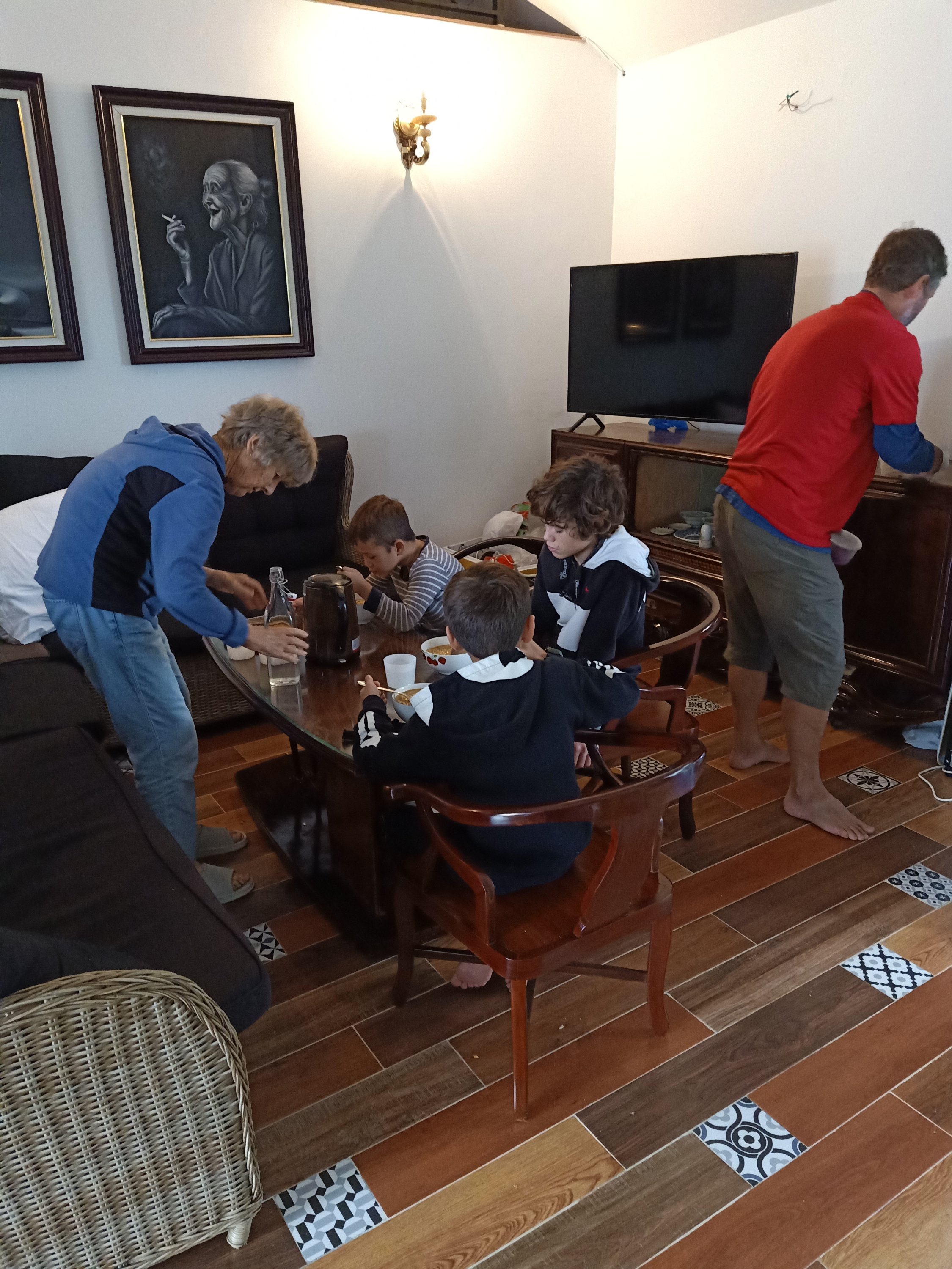 In Phong Nha town the electric came back on after 4 days of no power and we got word from friends that they were ok but just busy with tackling the clean ups. Of course we had been so fortunate to have the generator most of the time. Harry Potter 3 commenced, popcorn was made, 2 minute noodles were prepared and 4 of the 5 neighbours came to watch the film with us. Remy was out helping Ben and Bich with clean up stuff. When Harry Potter finished everyone left; the neighbours went back home, Veronika and the boys went to have dinner with Ben and Bich at the Farmstay and Captain Caveman decided to cook the last of the veggies we had with some beef that had been thawing out. We shared a bottle of wine and sat at the kitchen table to enjoy the wine, smell the delicious food cooking and appreciate a bit of quiet! We decided to eat 2 pieces each and chop the rest up for a stew – because the fridge freezer was on and off we didn’t want to risk keeping it any longer. The meal was lovely and the best meal we had eaten since Friday’s pizza night. We drank the rest of the wine and went to bed.