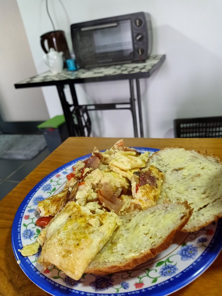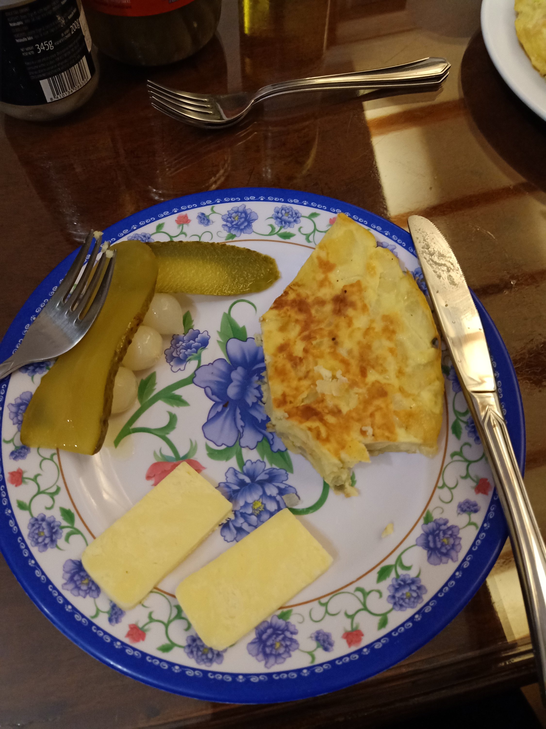 Captain Caveman made me a bacon sandwich with mushrooms for breakfast and he had his with eggs and brown sauce. I had 2 pots of jasmine tea and, feeling lucky to have missed the typhoon (now only a tropical storm), I had crisps for lunch while watching another episode of The Haunting of Bly Manor which I couldn’t decide if it was extremely badly cast or just odd. I suggested to Captain Caveman, who was now doing nothing but scrolling on his phone all day, that he might like to make us a Spanish omelette for dinner and he rose to the challenge – it’s another one of his signature dishes which he cooks really well. We had some for dinner with cheese and pickles and I saved a small slice for my breakfast the next day. I abstained from alcohol hoping to completely be rid of my cold by the weekend.