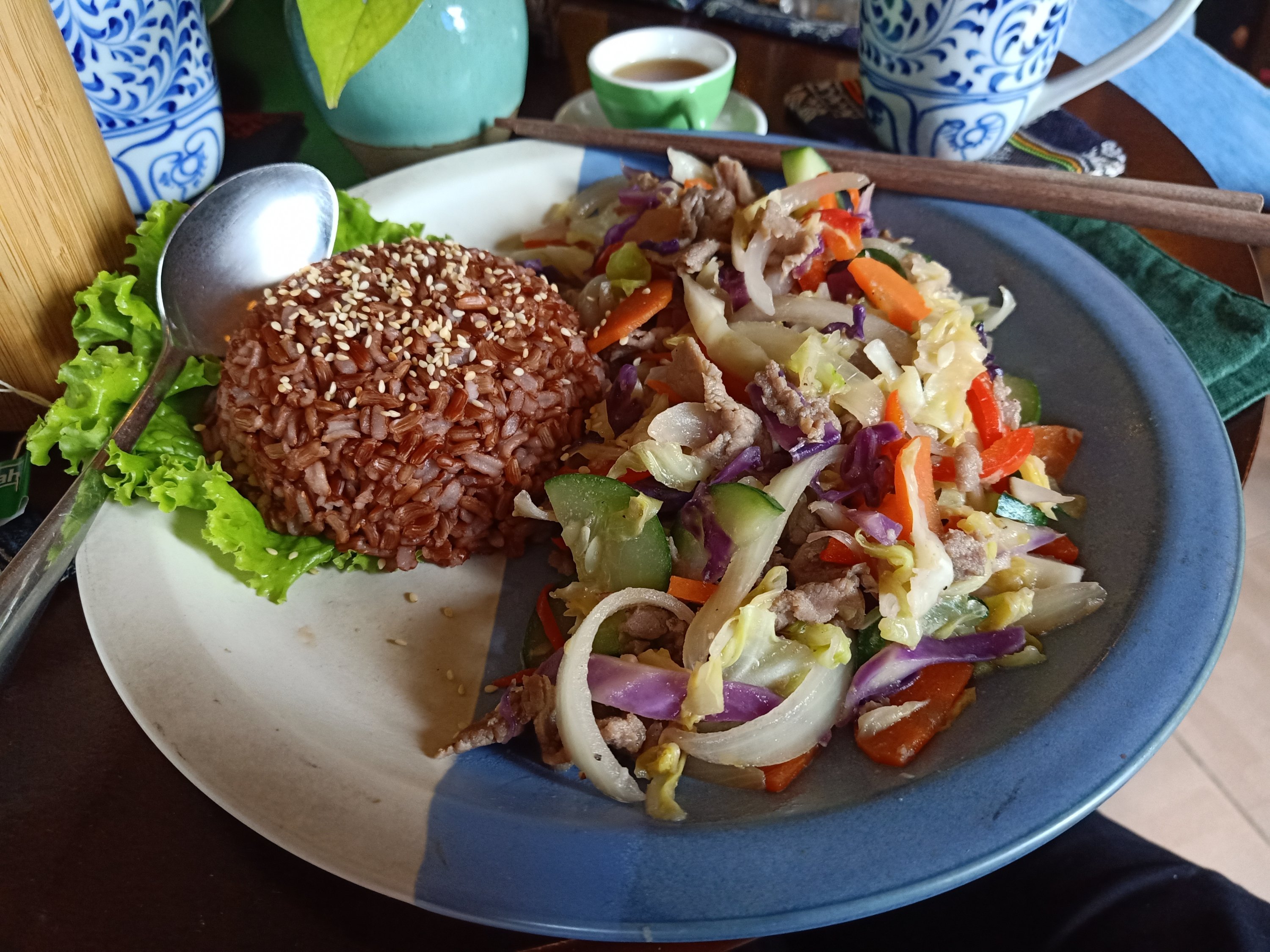 While I had 2 men working on my leg Captain Caveman went off shopping for provisions. I saw photos on Facebook of Hoi An showing more floods so we were lucky this time to be spared. After physio I decided I needed a second breakfast/early lunch so we went to Tree Hugger. They have brown rice new on the menu so I had the beef rice plate with brown rice and a peppermint tea. Captain Caveman had an egg sandwich (obviously) and Phuong just had a coffee. I was missing eating most of my meals at Tree Hugger and I really enjoyed our visit.