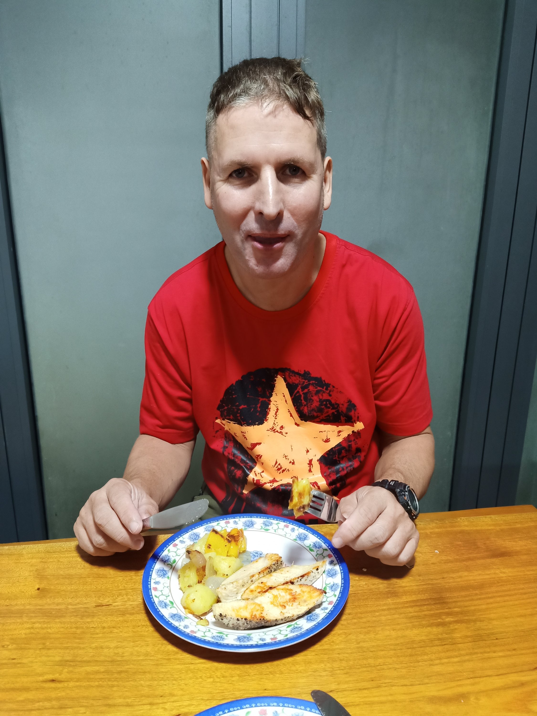 It was Matty’s last day at the Farmstay and we didn’t get to see him off – he had promised he would be back soon, though, and there was talk of him being up for Christmas. When I walked in to the clinic I spotted some weighing scales near the door and decided to get weighed. It had been 6 weeks since I had got weighed and was pleased to see I was even lighter with just 2.5kg left to go until I reached a ‘normal’ weight. The physio went well and when I got home I made myself ill by having a Snickers which no longer agreed with me. Captain Caveman had been watching Netflix most of the afternoon but then made chicken with potatoes and peppers for dinner. I decided not to bother with any alcohol and tried to drink as much water as possible.