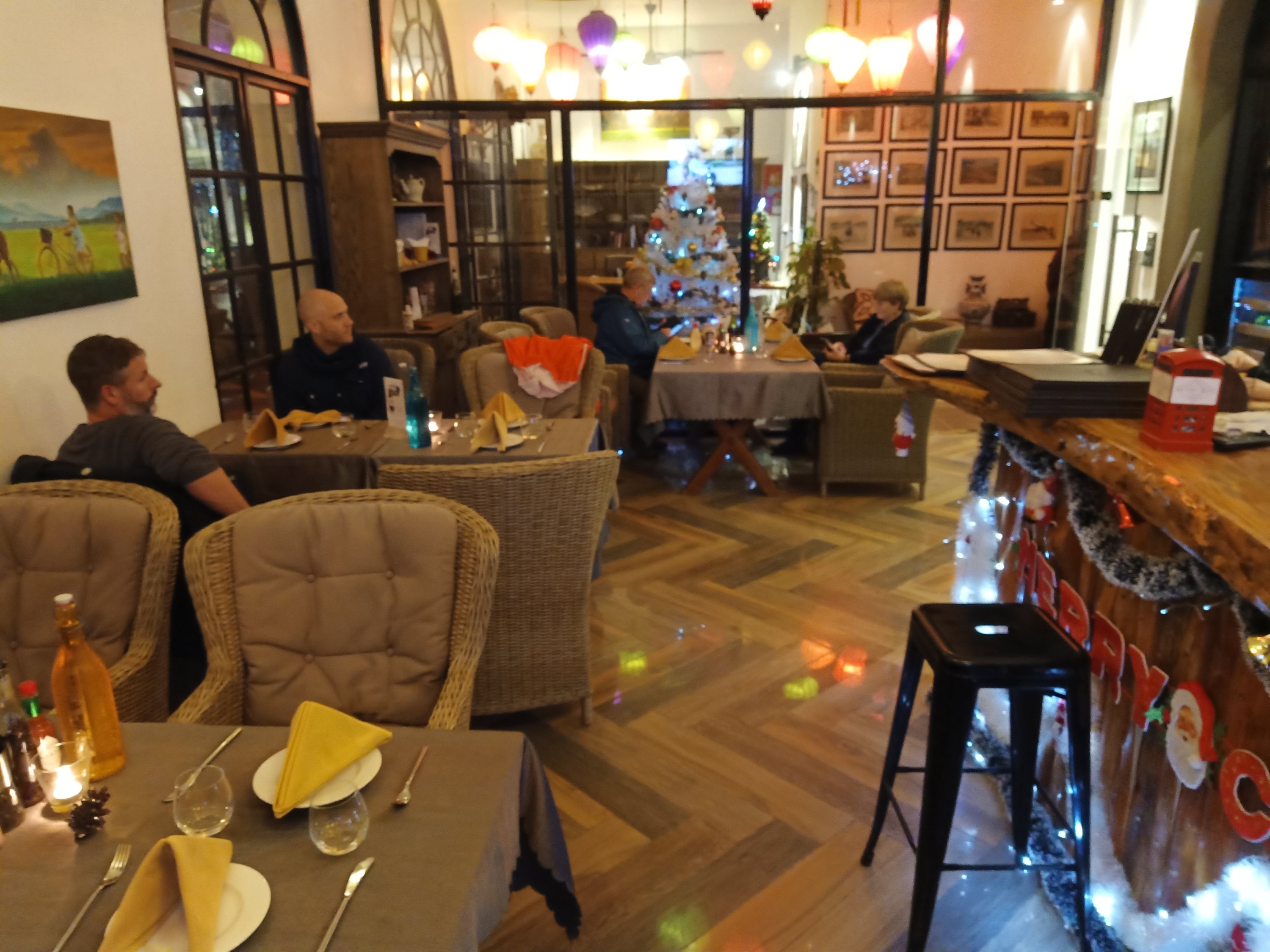 On Sunday 20th December Captain Caveman went to Phong Nha to see the returned cavers and have a coffee. It was still very cold and I sat on the living room sofa trying to keep warm. Captain Caveman got back just in time to make us bacon sandwiches for breakfast. I had a cheese sandwich for lunch and wasn’t ill, for a change. In the evening Captain Caveman popped over to see his colleagues at Momma D’s, before their welcome back special dinner, then he and I met up at the Farmstay, he had picked up Tatas on the way.