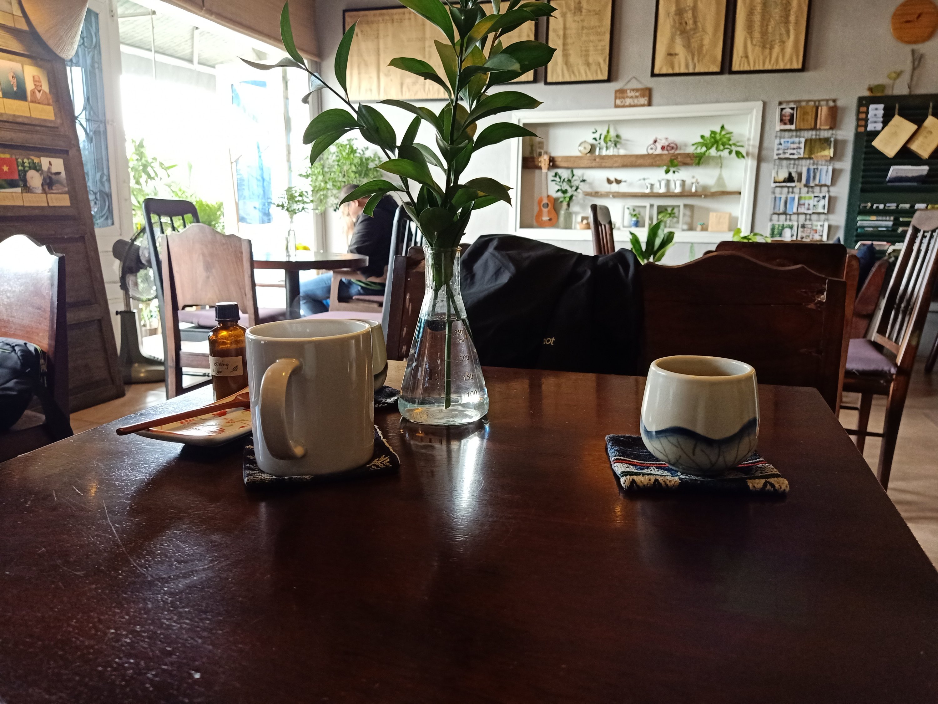 I had messaged Kimmie about my passport but still no word so Captain Caveman and I decided to go to Tree Hugger and wait there until the time for the flight. We got dropped off by Phuong, who then went back to Phong Nha with Shannon and family. Outside Tree Hugger were Momma D and Davis, sat having coffees and so we joined them. I ordered a peach tea while Momma D went back to the Nam Long Plus hotel to get Kevin, her new puppy, who was being cared for by the staff.
