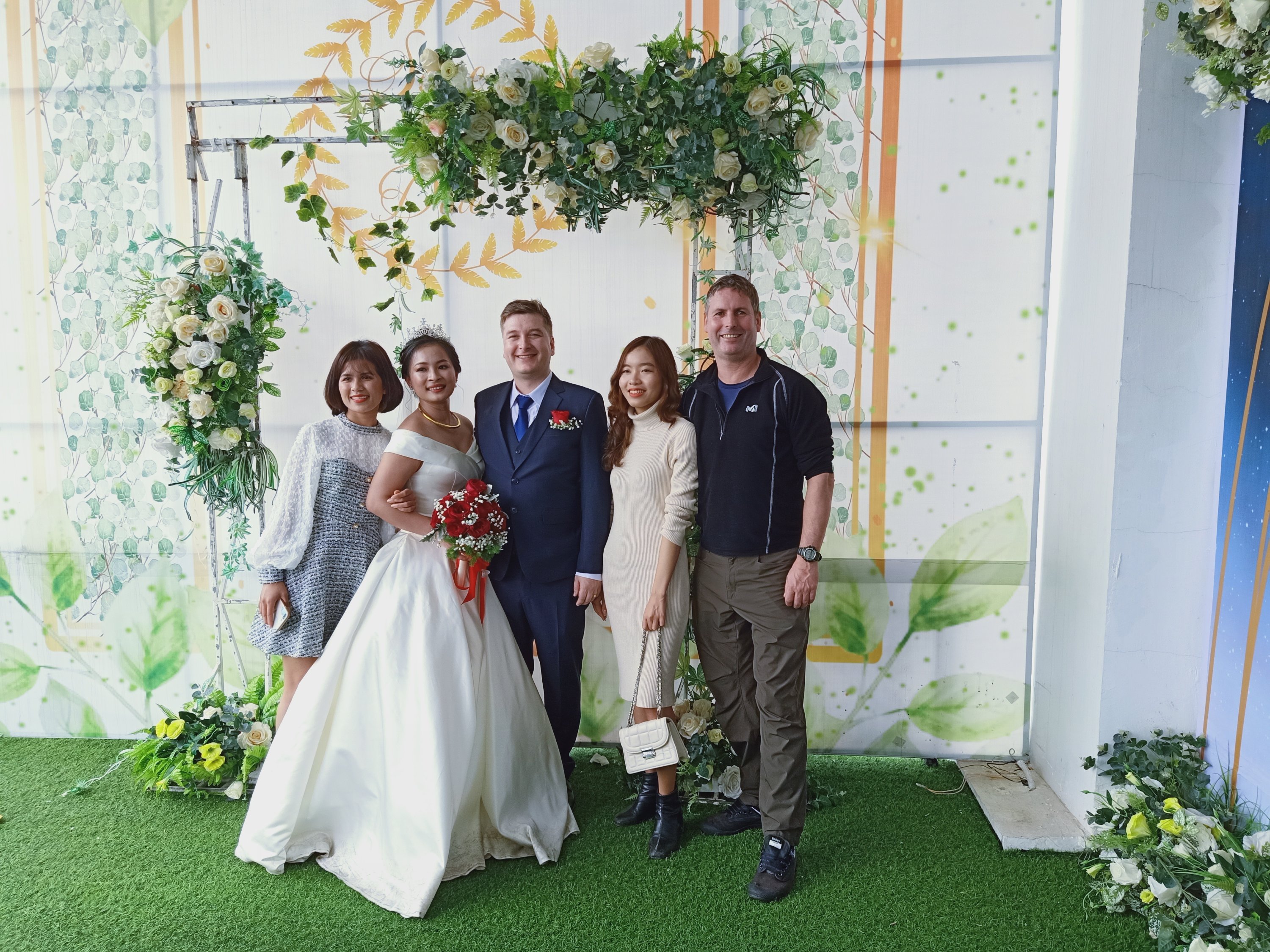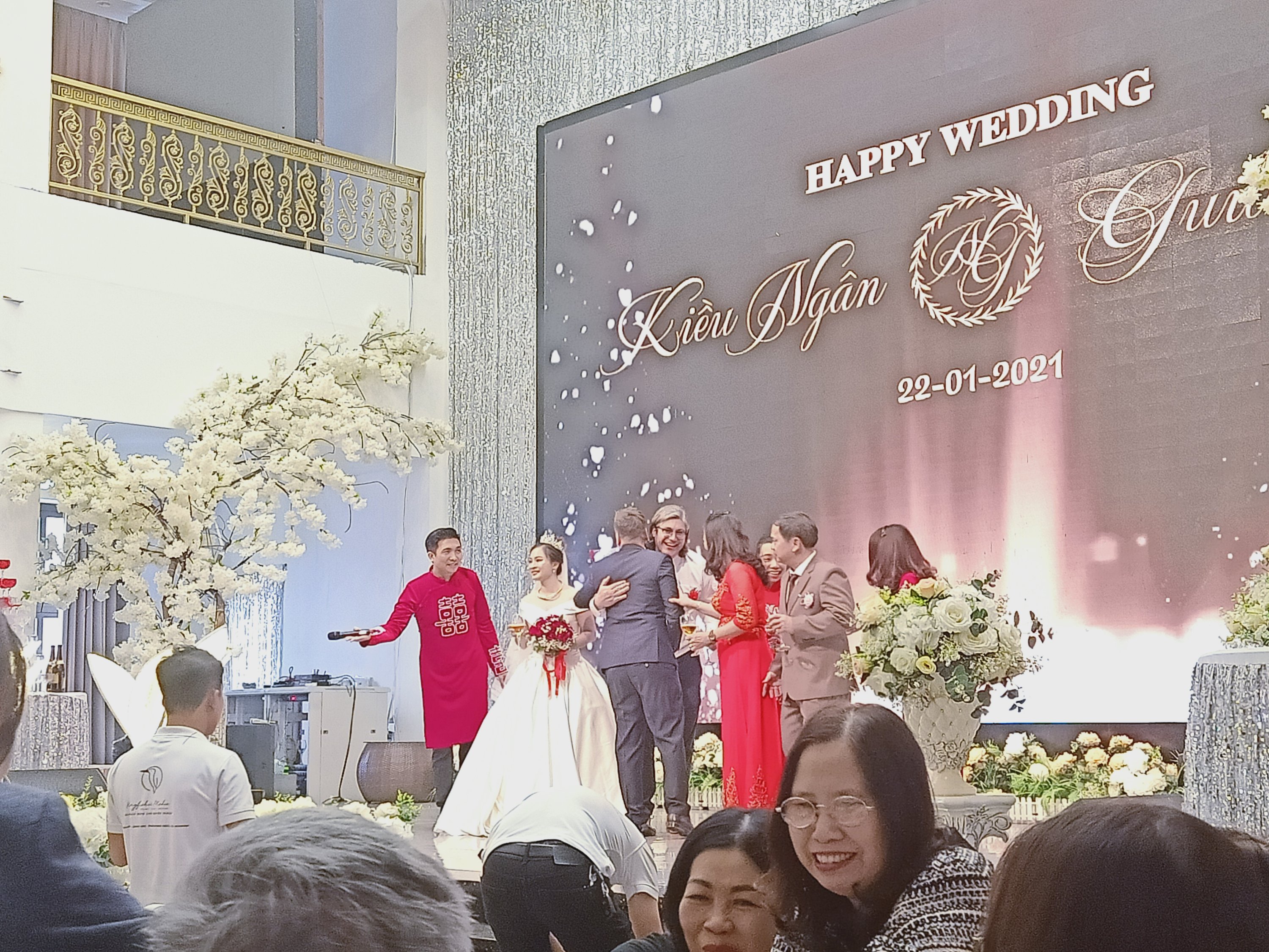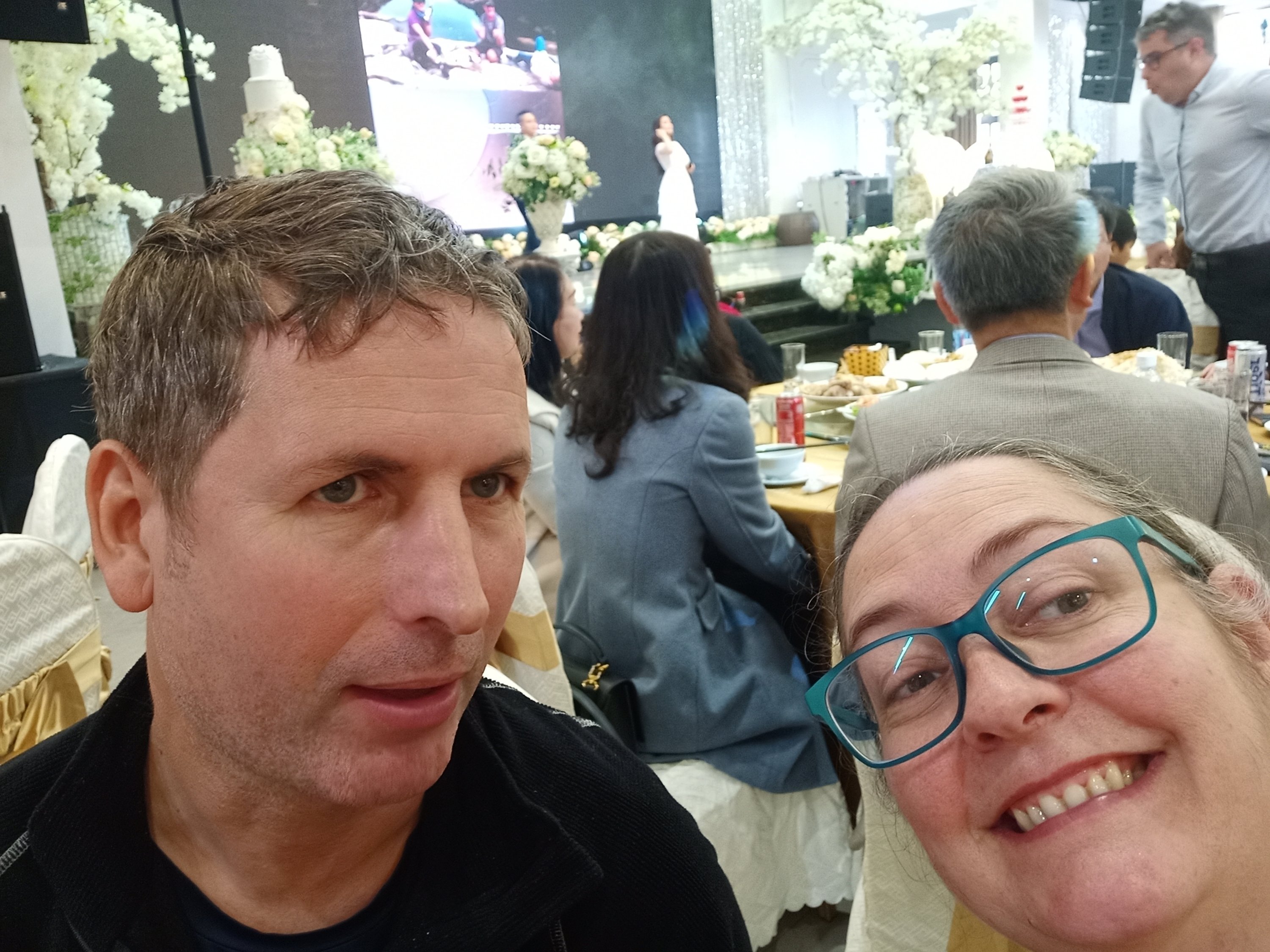 Phuong, of Phuong’s Transfers, picked us up at 9.45am and then we went to pick up Shannon, Stu, Max and Jack as we were all off to GuiGui and Stephanie’s wedding at the Royal King in Dong Hoi. There were hundreds of people going and it looked to be a big posh event, Bich had kindly saved 2 seats for Captain Caveman and I very near to the speakers, while the others went upstairs at the massive indoor venue. The food came out straight away and I tried to watch the ceremony and eat at the same time, there were some professional singers and even a violinist. I ate 1 big prawn, a piece of chicken, 2 prawn crackers, some sticky rice, some meat and a few chips, plus I had Tiger Crystal beer to toast with. The bride looked stunning and the groom and the rest of the party all looked very dapper. Shockingly we had been there only 50 minutes when everyone started leaving already and it was time to go and get photos taken with the happy couple. Even though the venue was very upmarket the floor was a greasy, slippy mess and it took me a while to walk to the toilet and back. When I got back there was only a handful of people still around, we waited for our turn to get photos and then I checked my messages to see what my plans would be for the rest of the day.