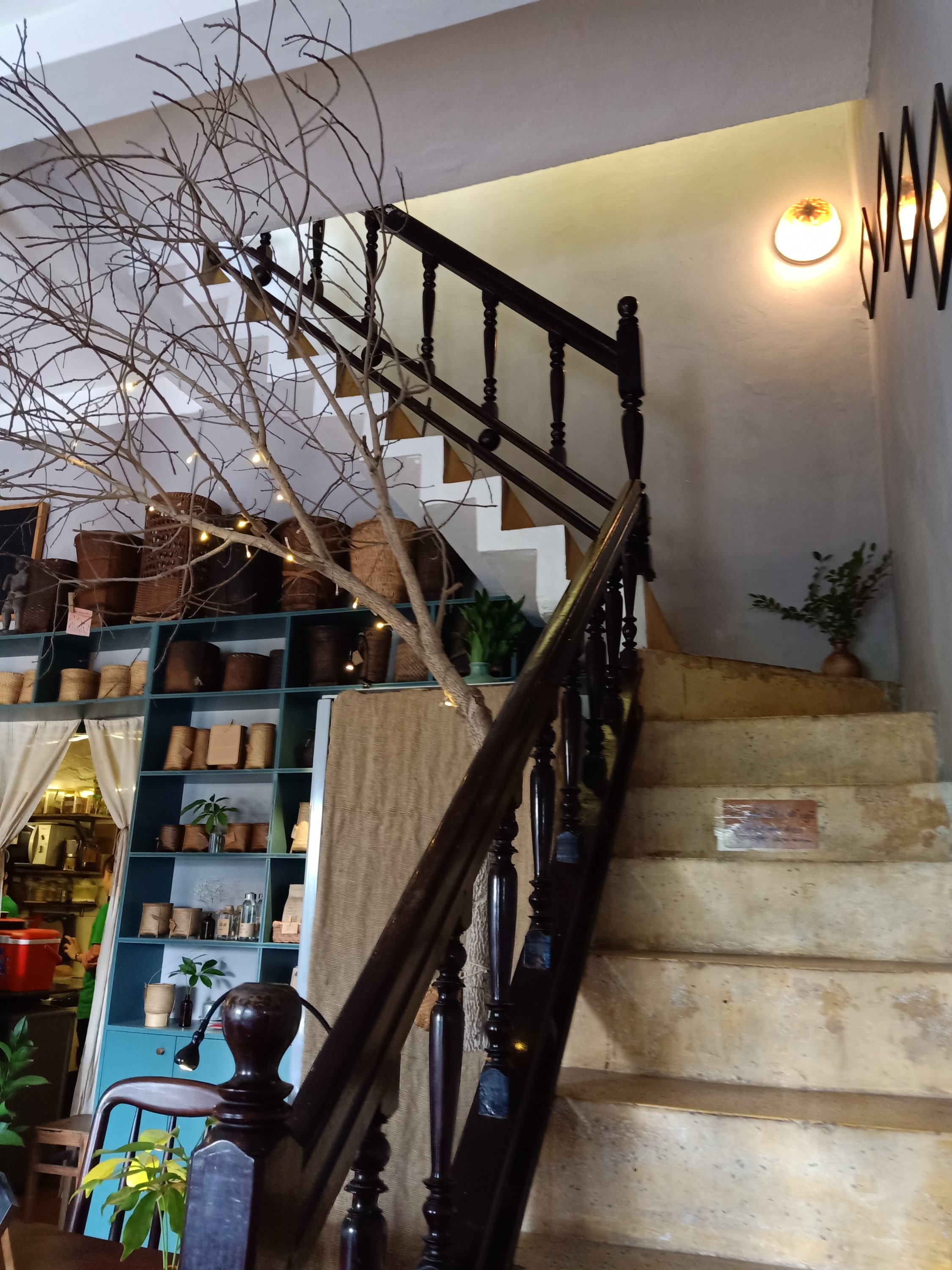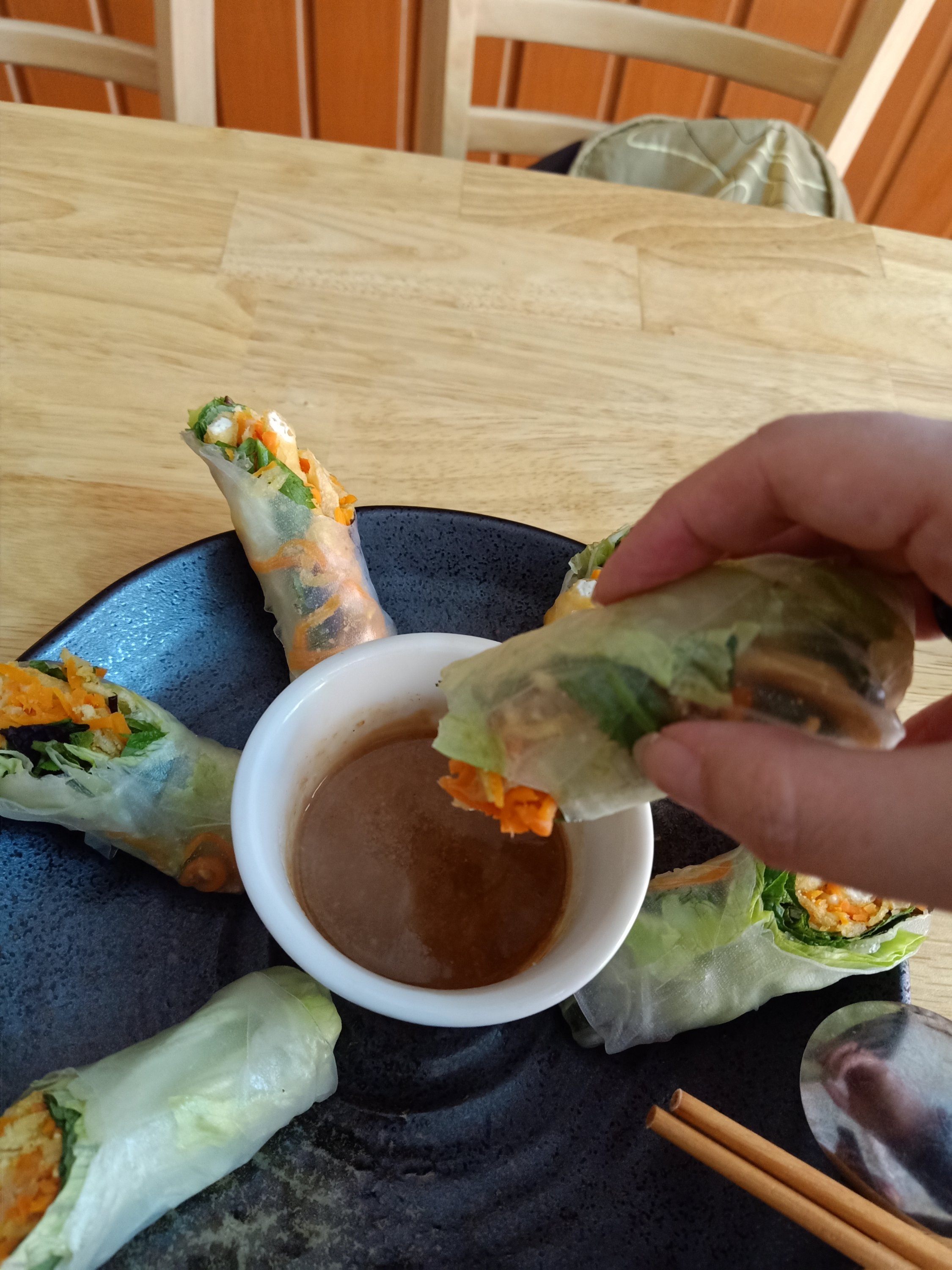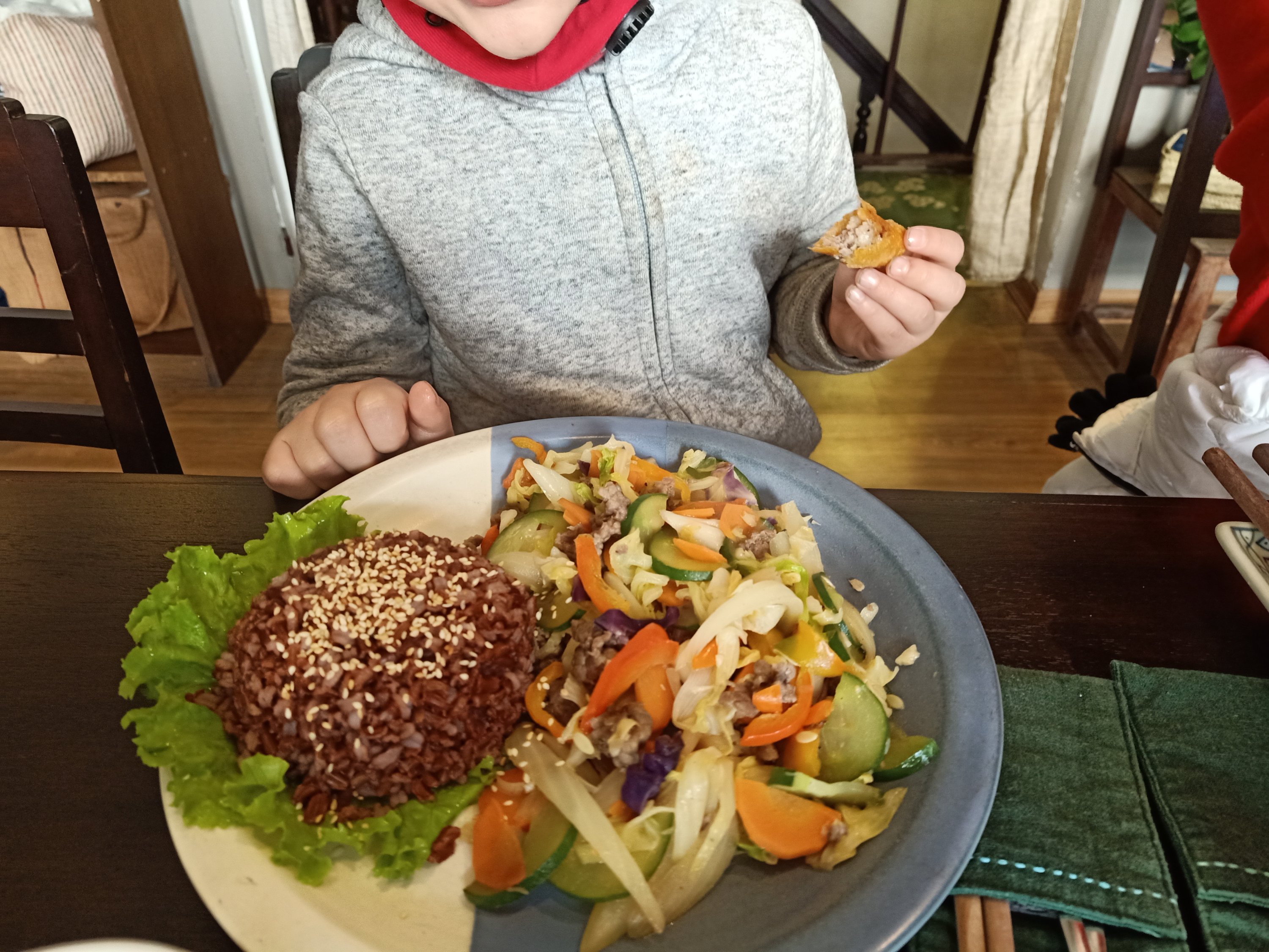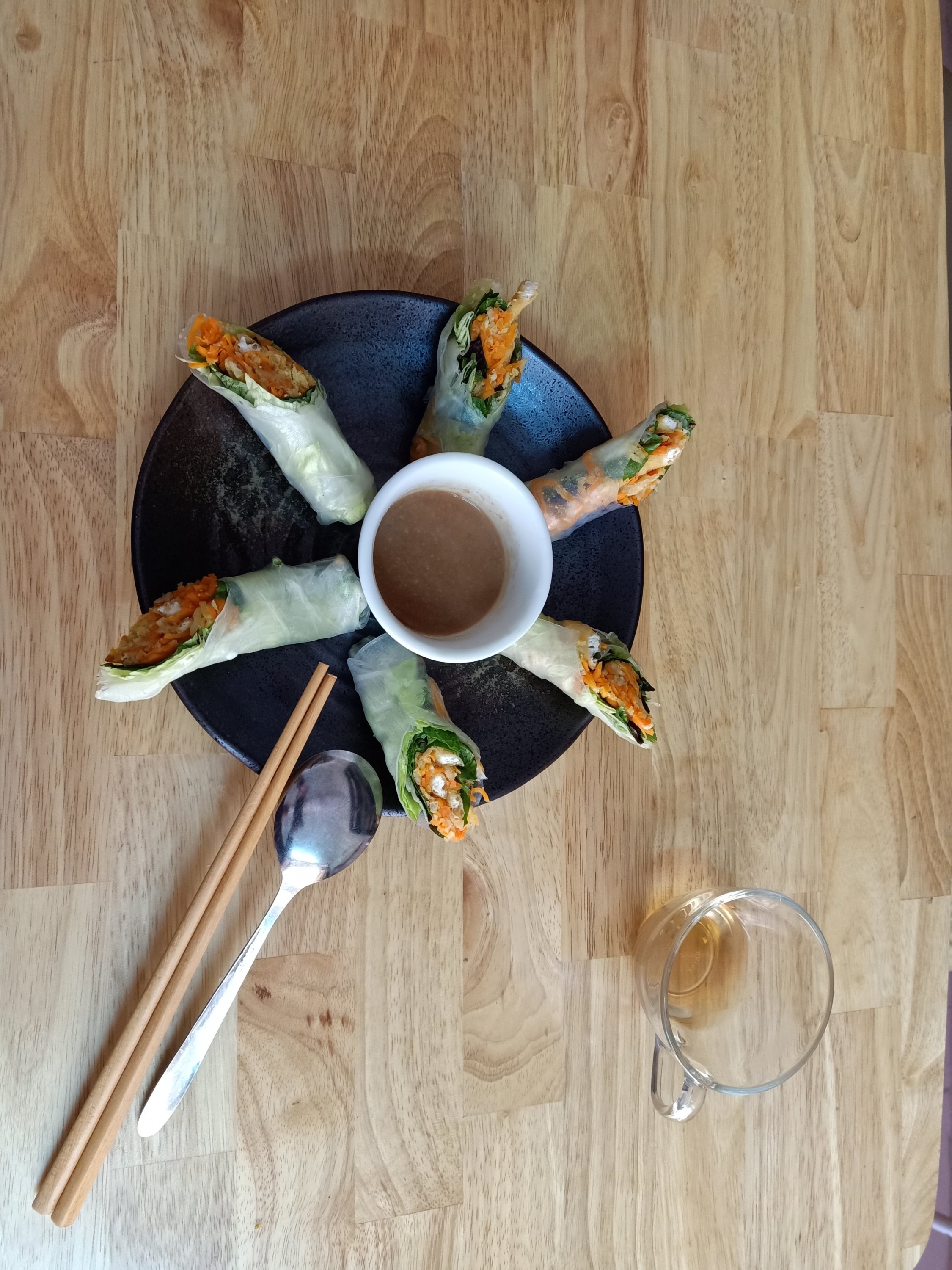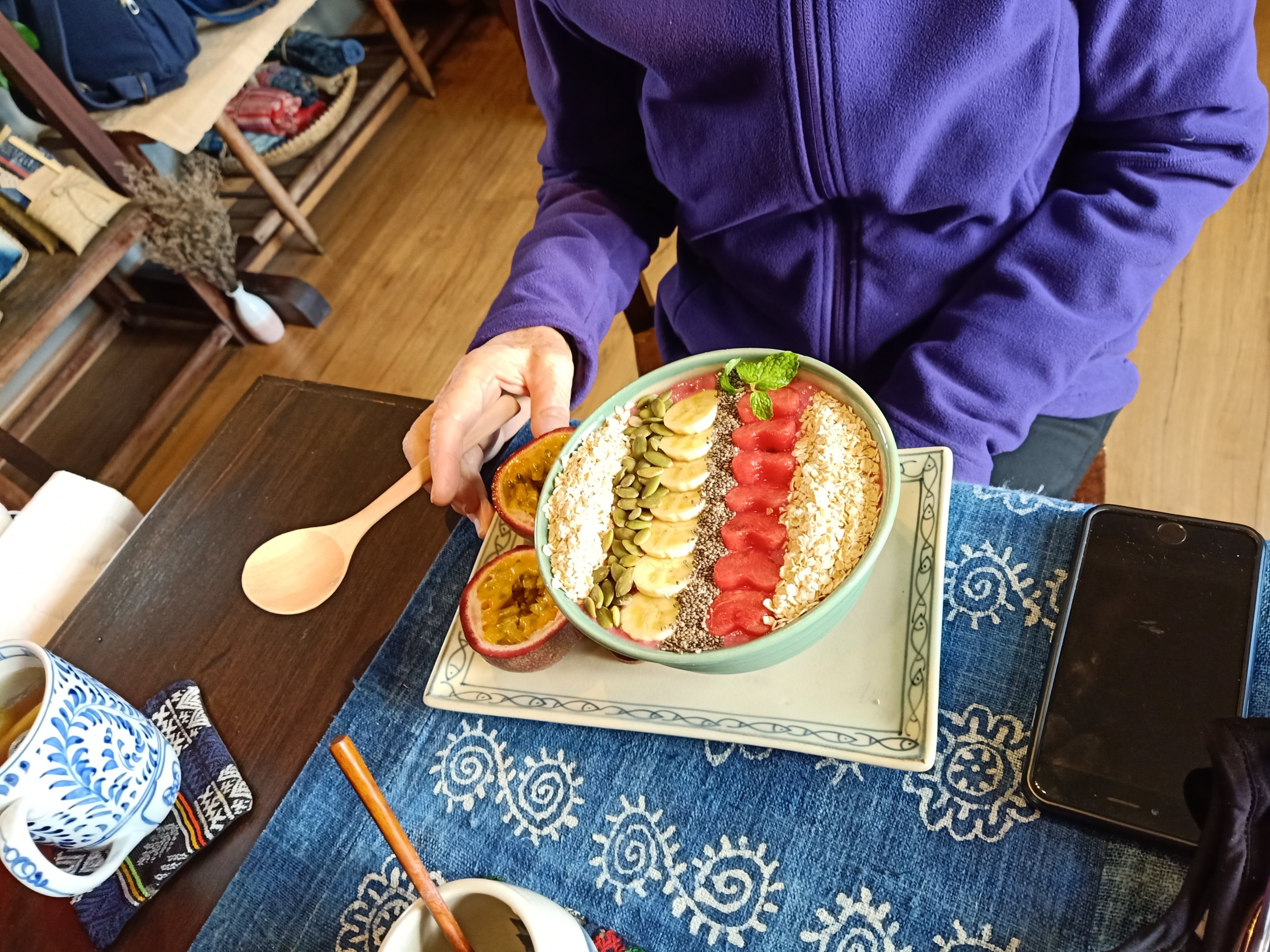 I messaged Tatas to find out what time she was going to Dong Hoi so I could go with her and I would have lunch before my flight. I chose the 15.40 flight so that I could be sure I had my passport in time. An’s Grab car picked me up at 11.10am and was already full, including Tatas who had also woken up, hungover. We got to Tree Hugger and I ordered (too much) food and drink – french fries and veggie spring rolls.
