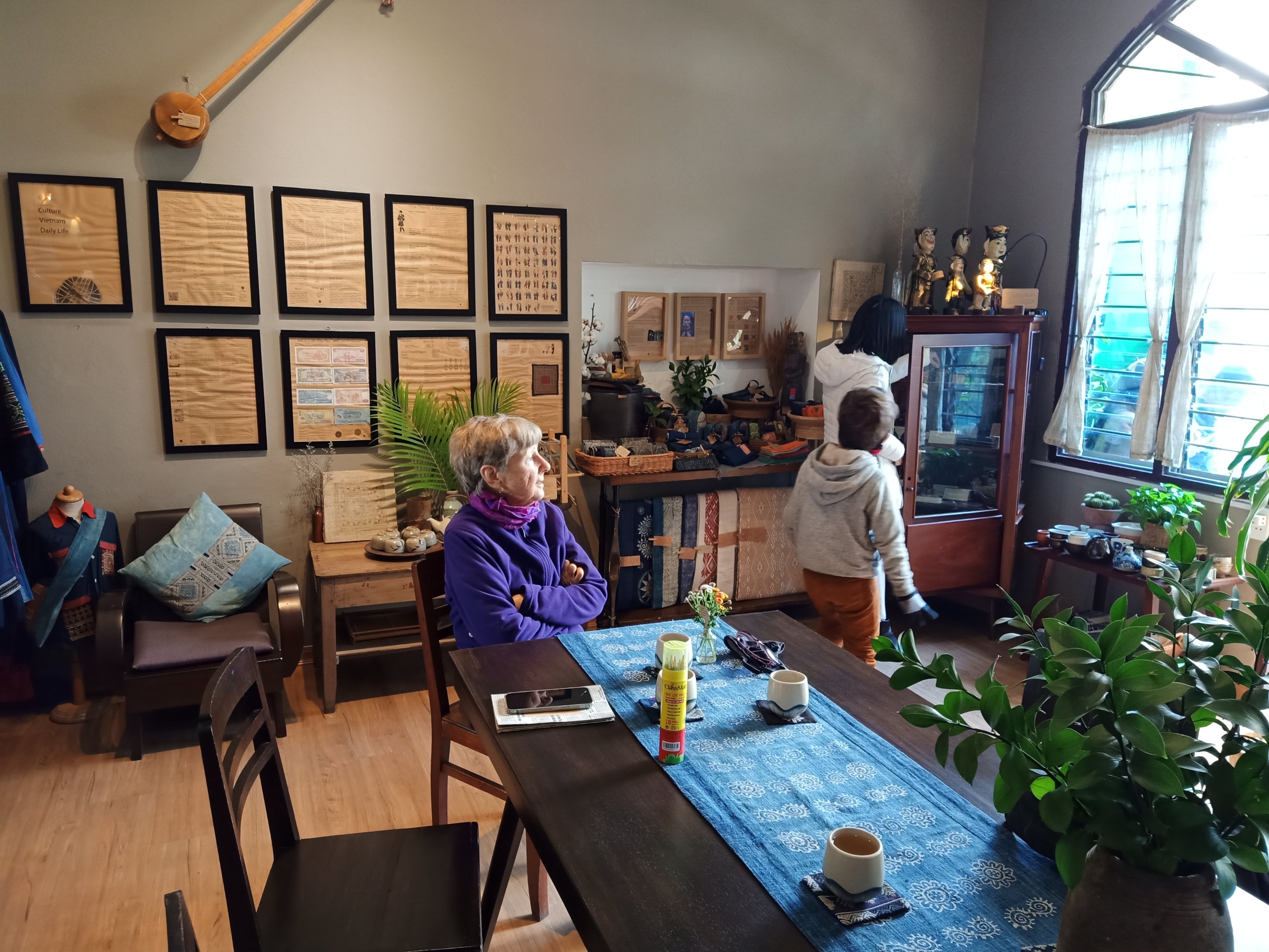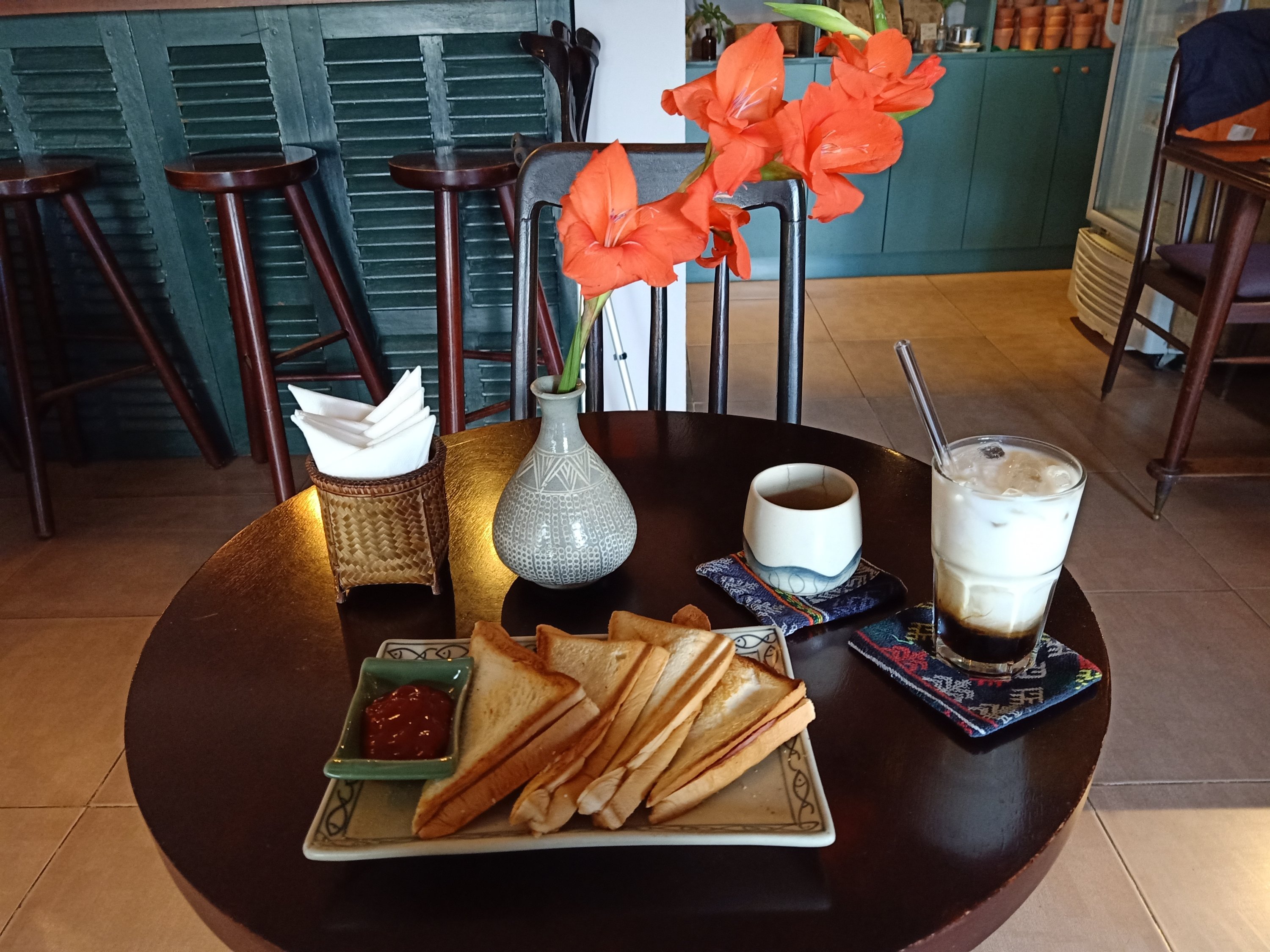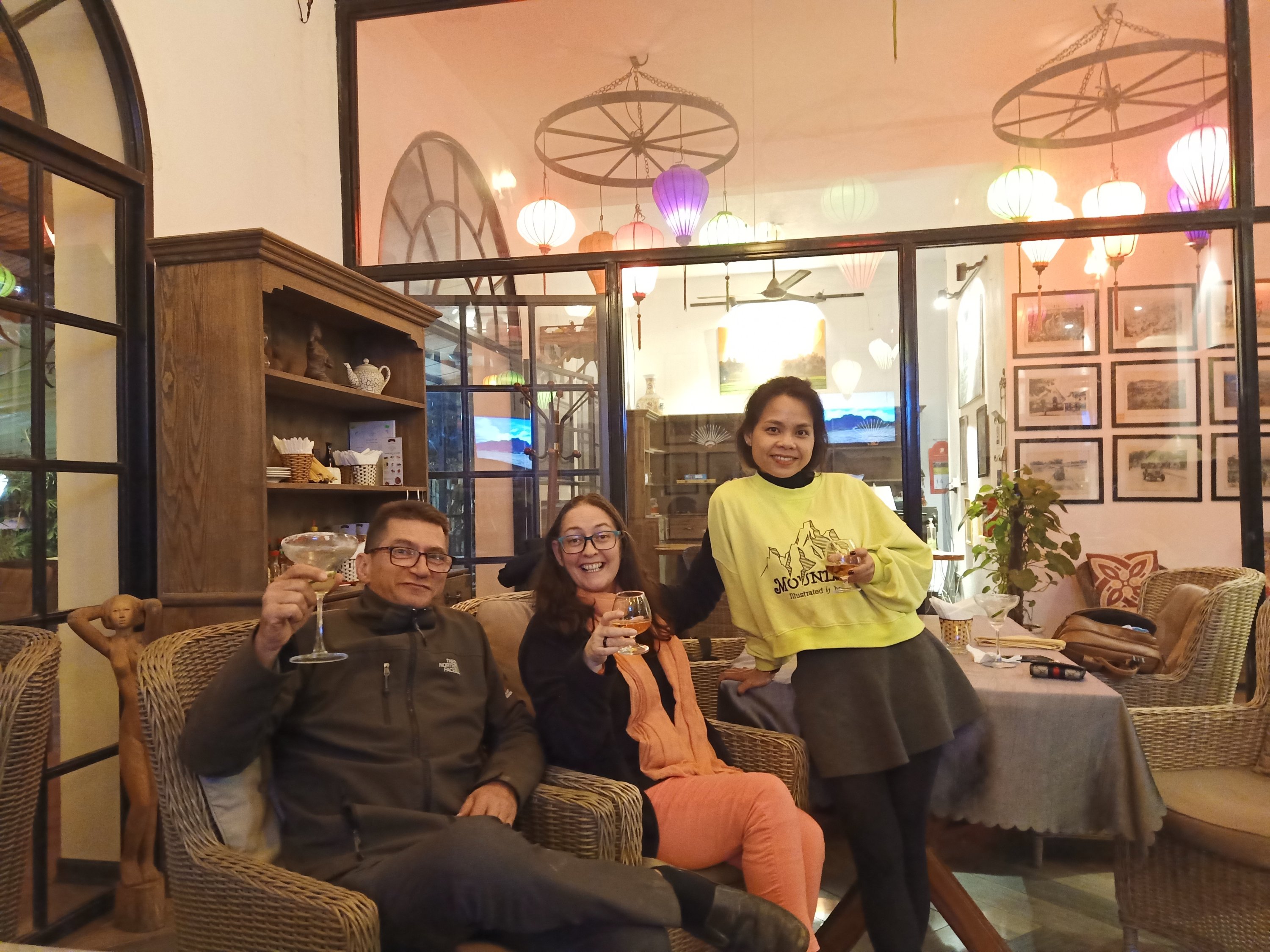 I had messaged Kimmie about my passport but still no word so Captain Caveman and I decided to go to Tree Hugger and wait there until the time for the flight. We got dropped off by Phuong, who then went back to Phong Nha with Shannon and family. Outside Tree Hugger were Momma D and Davis, sat having coffees and so we joined them. I ordered a peach tea while Momma D went back to the Nam Long Plus hotel to get Kevin, her new puppy, who was being cared for by the staff.
