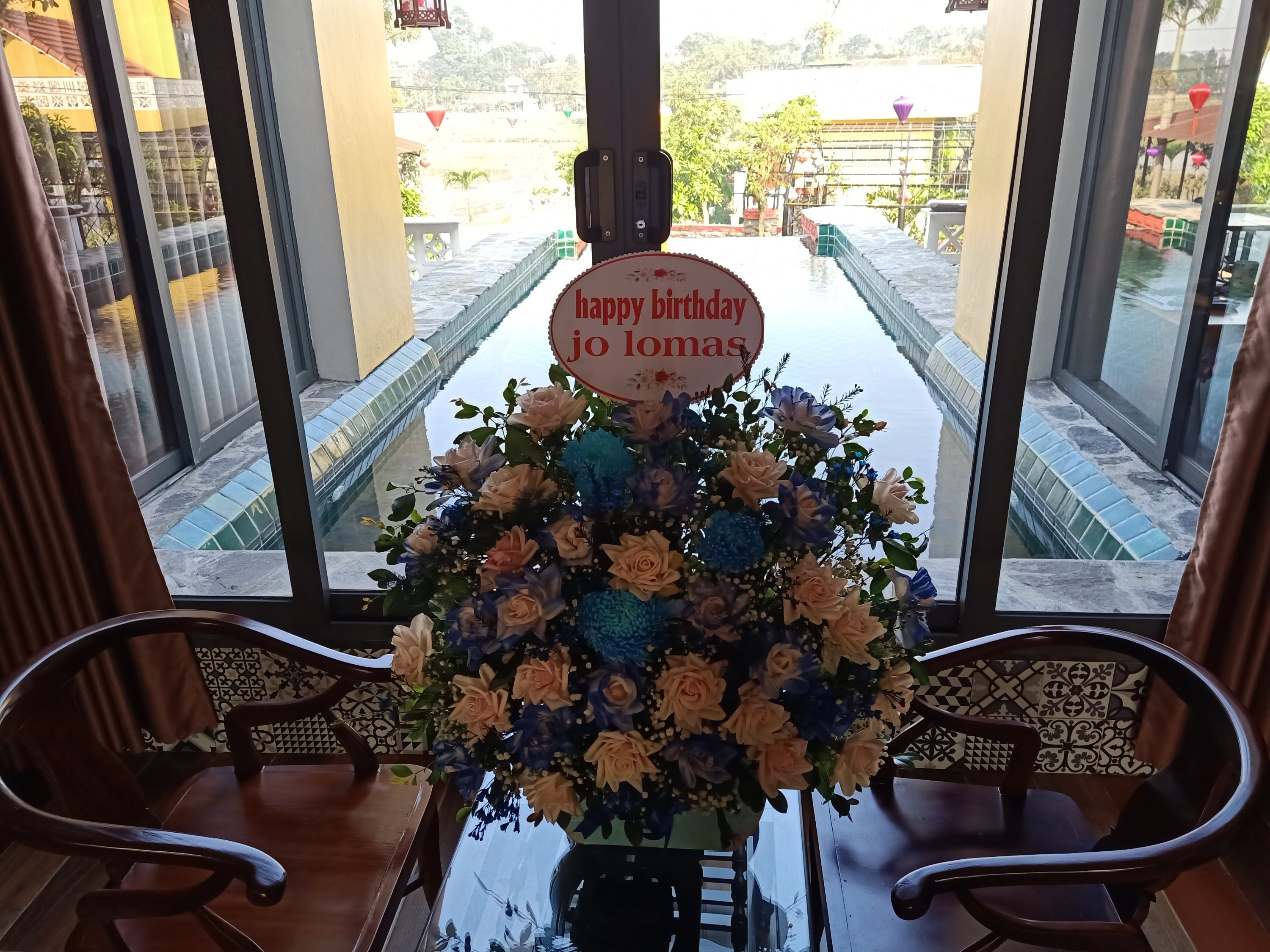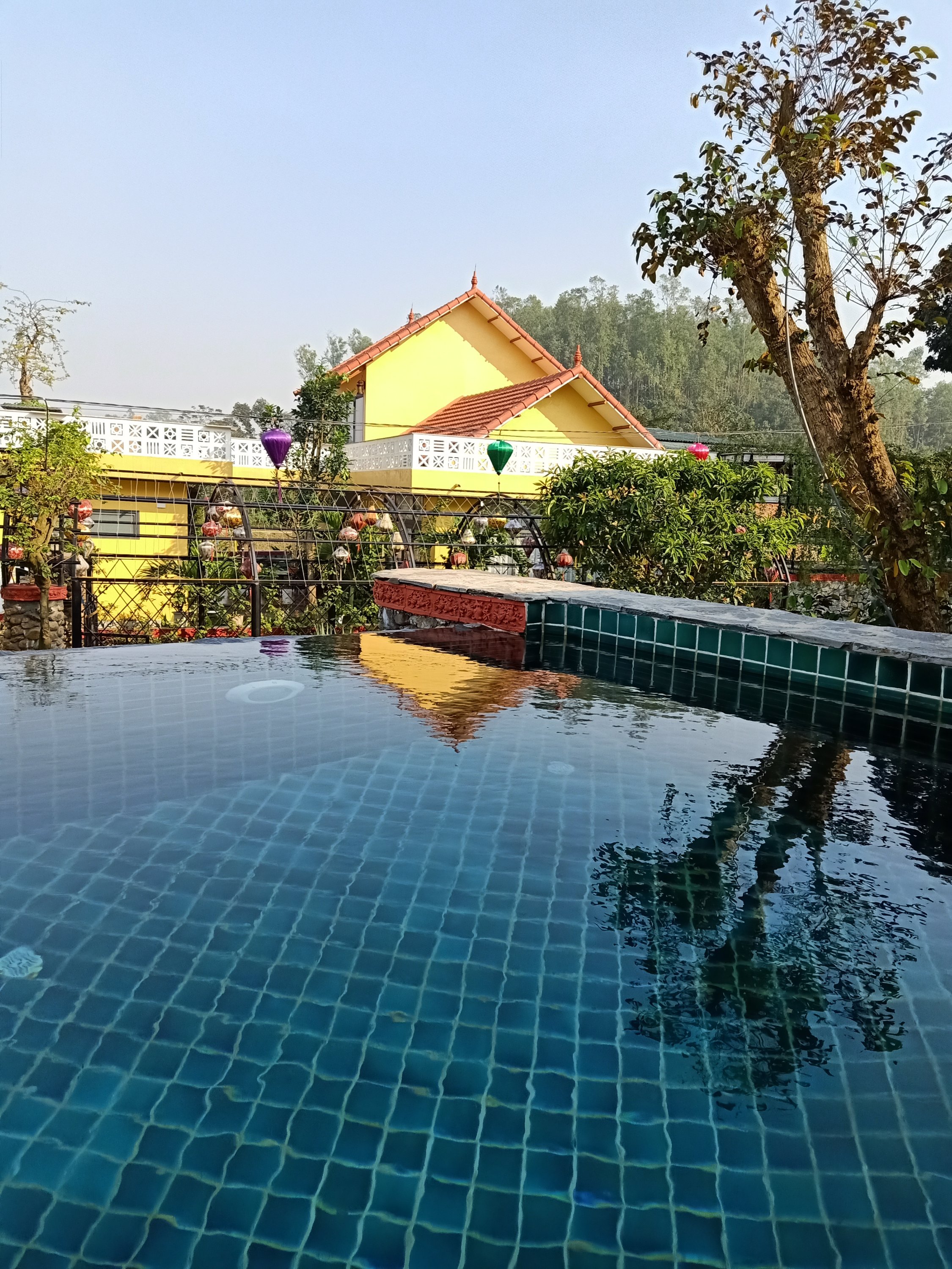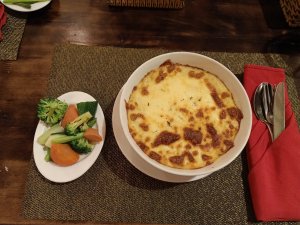 I just had a bit of bread and butter for lunch as we were off for dinner later with Tham and Tony at the Lake House for another birthday celebration. Captain Caveman needed to go by motorbike because he had an early start the next day but I got a lift in the van with Co and our bags. We arrived around 5.30pm and were checked in to the fabulous accomodation overlooking the lake, there was a massive bathroom with both indoor and outdoor showers and an outdoor luxurious bath. We had a four-poster bed with comfy pillows and nice furniture in the room. The walk from reception took me about 5 minutes down a steep slope and was a little painful and slow, which is why we were given the first room.