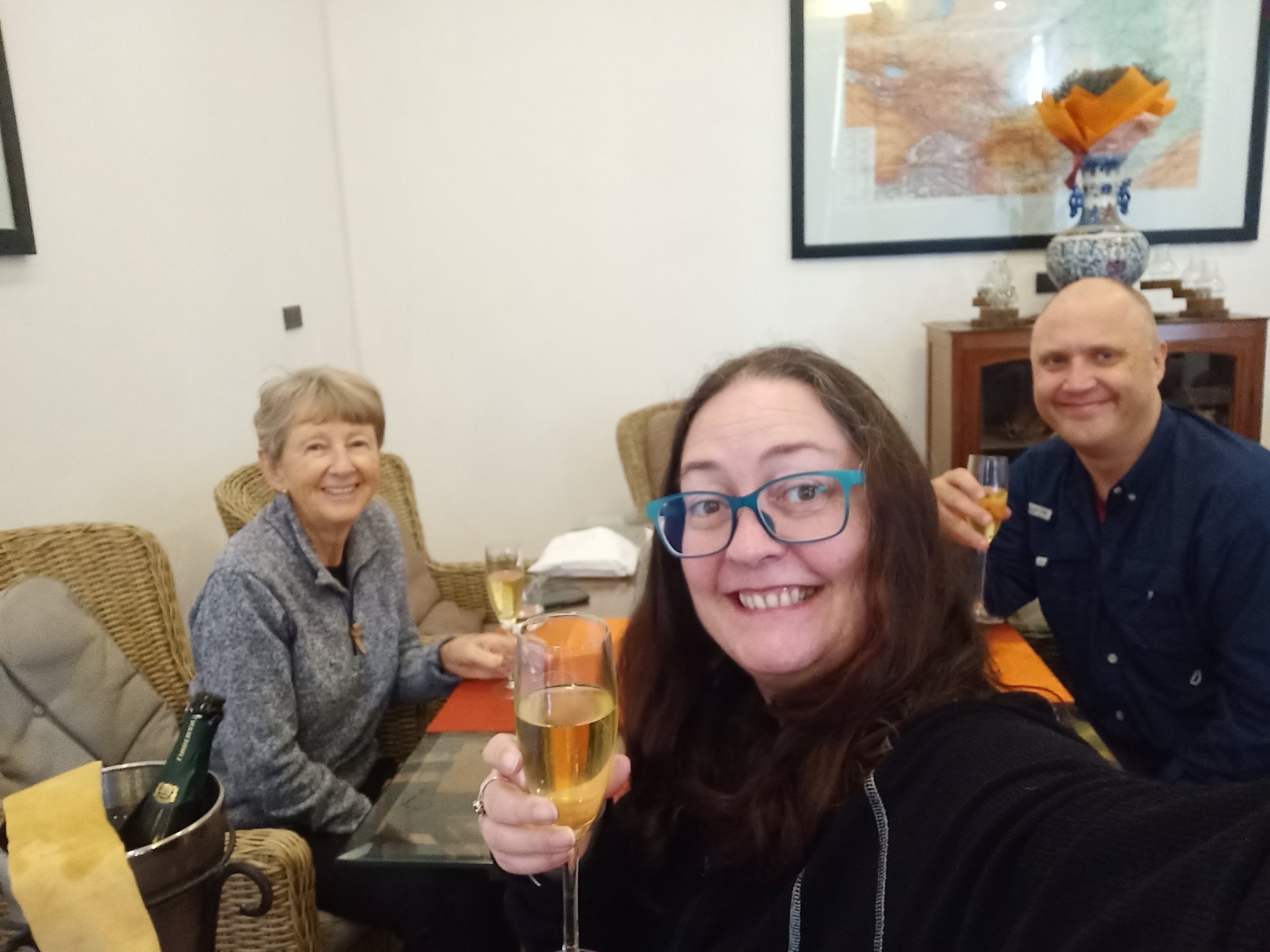 I was glad to be celebrating someone else getting older on Wednesday 13th January and Bich had arranged to pick Veronika and I up to take us to The Villas for brunch. On arrival it was absolutely stunning scenery outside, overlooking the river, the weather was starting to warm up a bit but we still sat inside by the fire. The sun was out again but it wasn’t particularly hot and I ordered a hot chocolate with cream for my breakfast. Bich had work to do and had to go to meetings so we sat and had a chat until Matty arrived by motorbike. Veronika ordered the smoked duck salad for brunch and both Matty and I ordered the tomato soup with cheese toastie (or grilled cheese if you order it in American). We had a chilled bottle of our favourite Lindeman’s sparkling wine, which we had polished off before midday! Unfortunately by the time I got home I had been glutened by the bread (it was worth it though) and felt terrible so I went to bed. I didn’t realise it at the time but Veronika didn’t get away with a quiet night in and had to go to the Farmstay for birthday wishes and cheesecake. I was grateful to get to stay in and eat a handful of dates and walnuts, once my stomach was back to normal(ish) because tomorrow I had another celebration to go to!