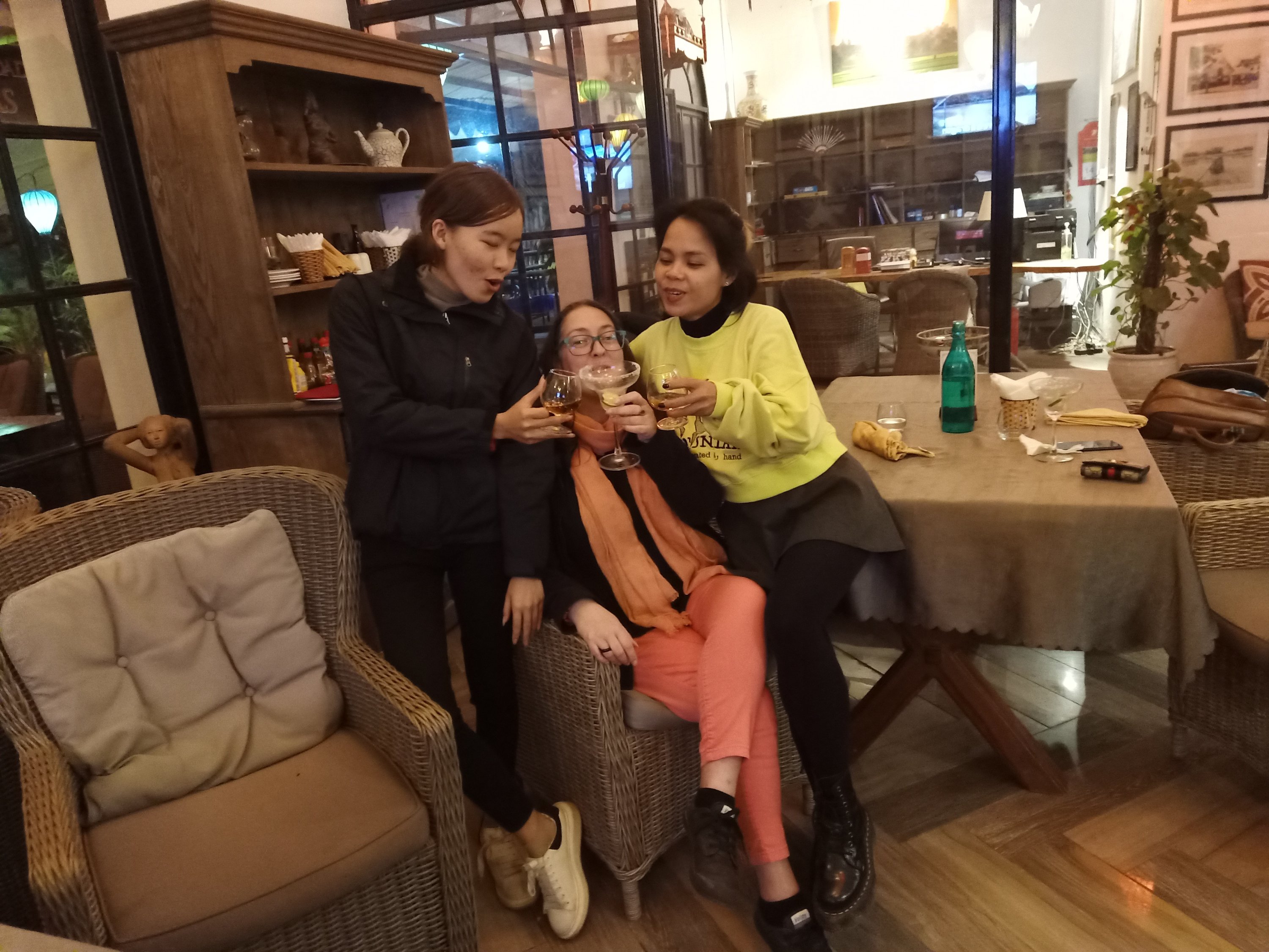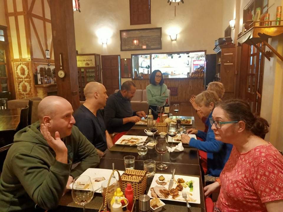 On the Oxalis Hang Va tour there had been some great guests and 3 of them had decided to come to join us for a Sunday roast dinner at the Farmstay, one of them decided to book a room there and got an upgrade to one of the pool villas in the Jungalo Collection. Another was from the UK, although works in Saigon and she was really lovely, her friend (a South African Canadian) was bright and funny and we all enjoyed a spot of wine together by the fire. We moved to a table for dining and all ordered the fantastic Sunday dinner and more wine. I’d optimistically brought tupperwear to put my cake in but when I saw it, I had to have the carrot cake, which was very nice. Everyone agreed to meet up again and the Hang Va group were going to be coming back to Phong Nha to explore more and do another Oxalis tour in May. It was a good night and everyone enjoyed lots of wine, an excellent Sunday roast and some great conversation, with an interesting and fun bunch of visitors. Captain Caveman organised another exploration walk with Veronika and Matty for Tuesday and I had definitely drank more wine than I anticipated. The next day Captain Caveman was off to meet his work colleagues in the morning but then we had another birthday celebration planned!