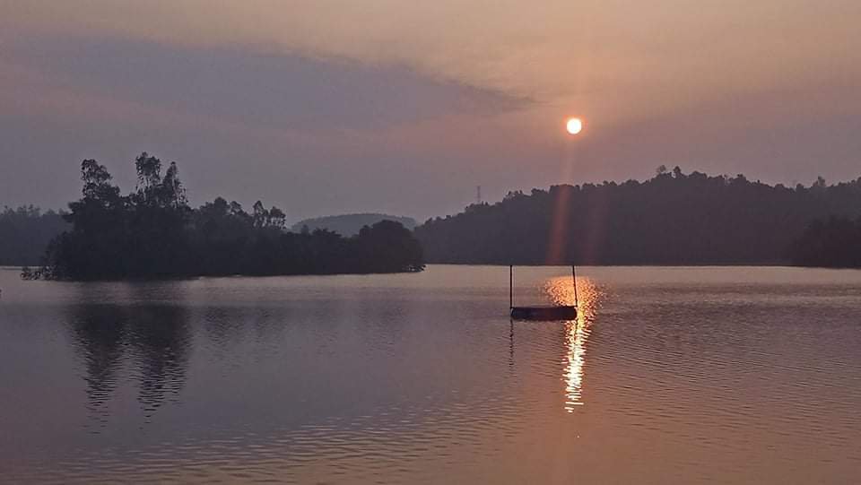 When the alarm went off before sunrise on Tuesday 19th January I wanted to go back to sleep but Captain Caveman was already up and ready, on the terrace with his chair positioned facing the lake, to see the sun come up at Phong Nha Lake House. I made us both a cup of tea and decided to join him and I’m glad that I did – the sunrise was lovely.