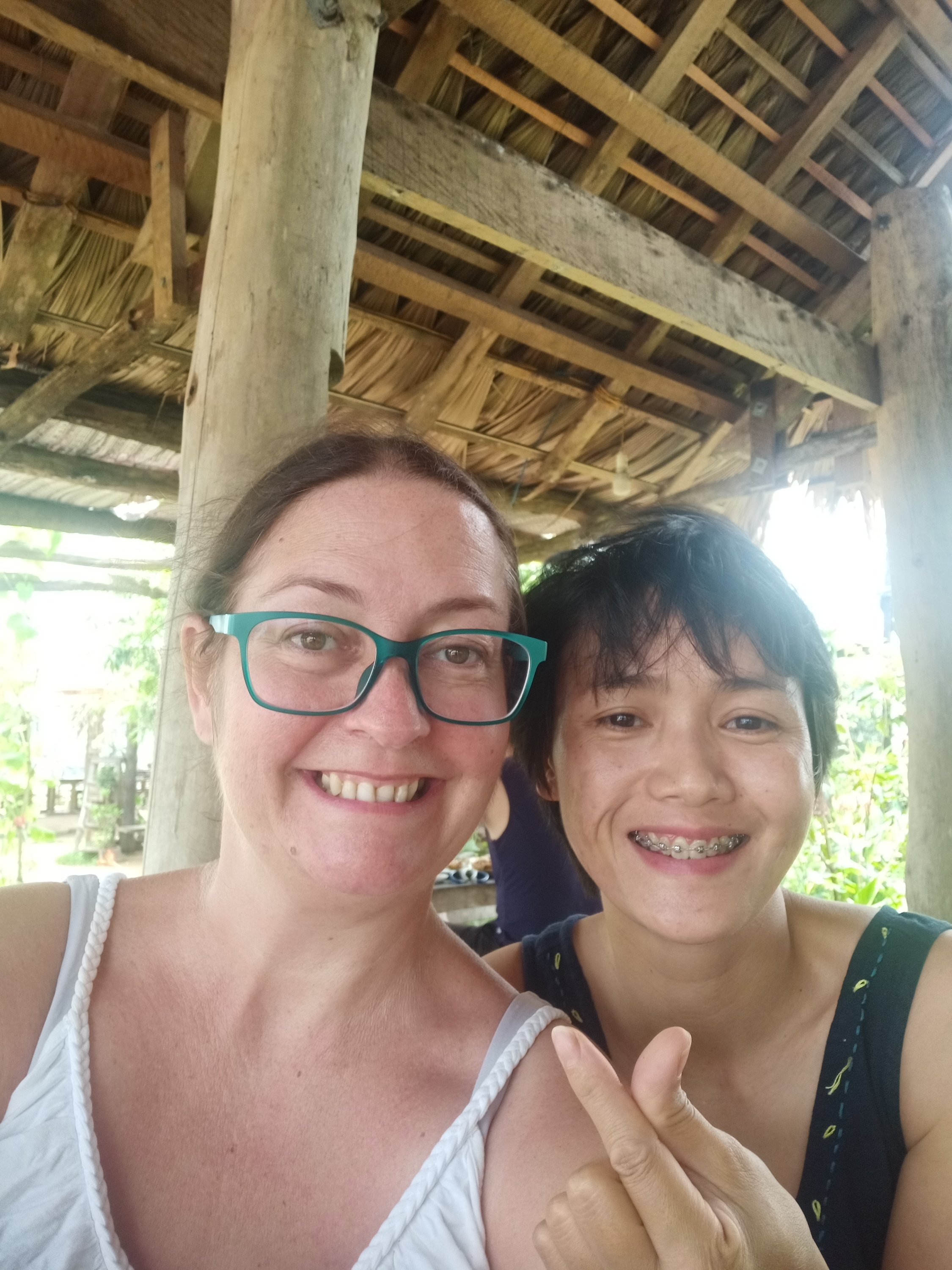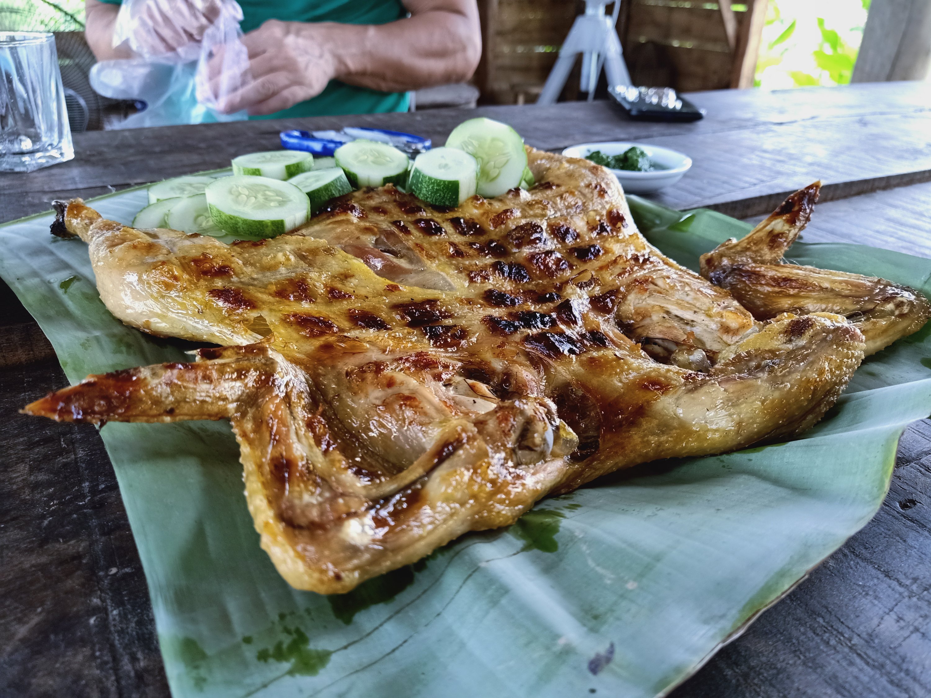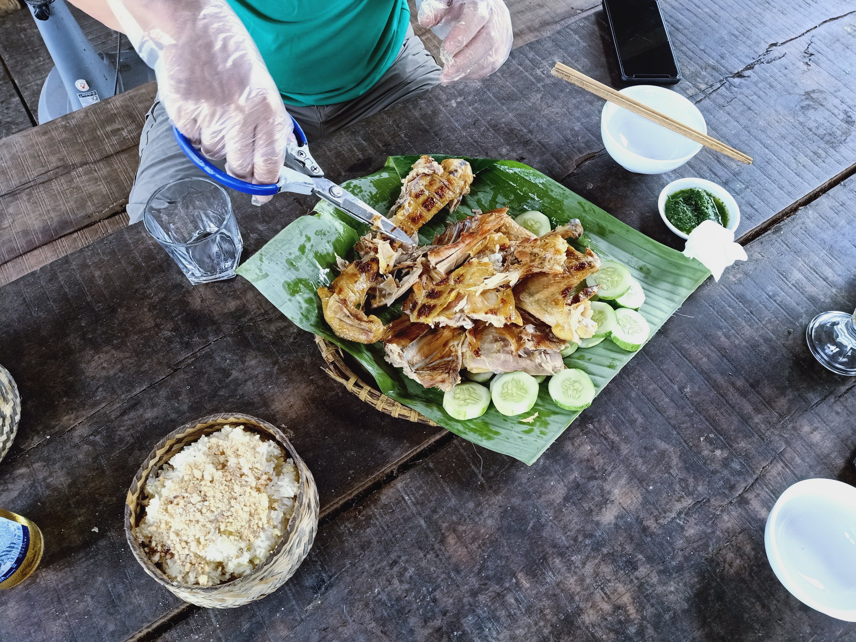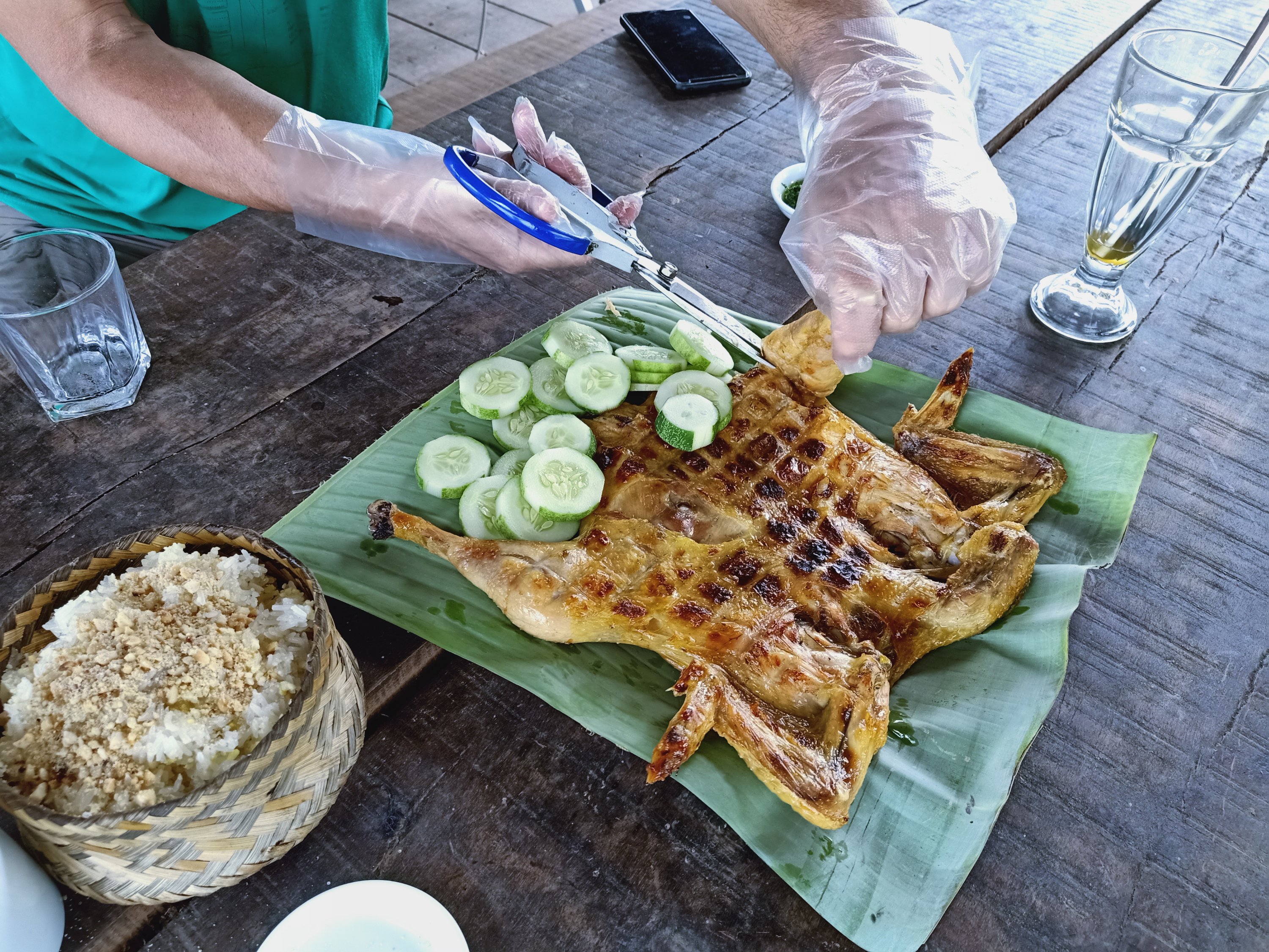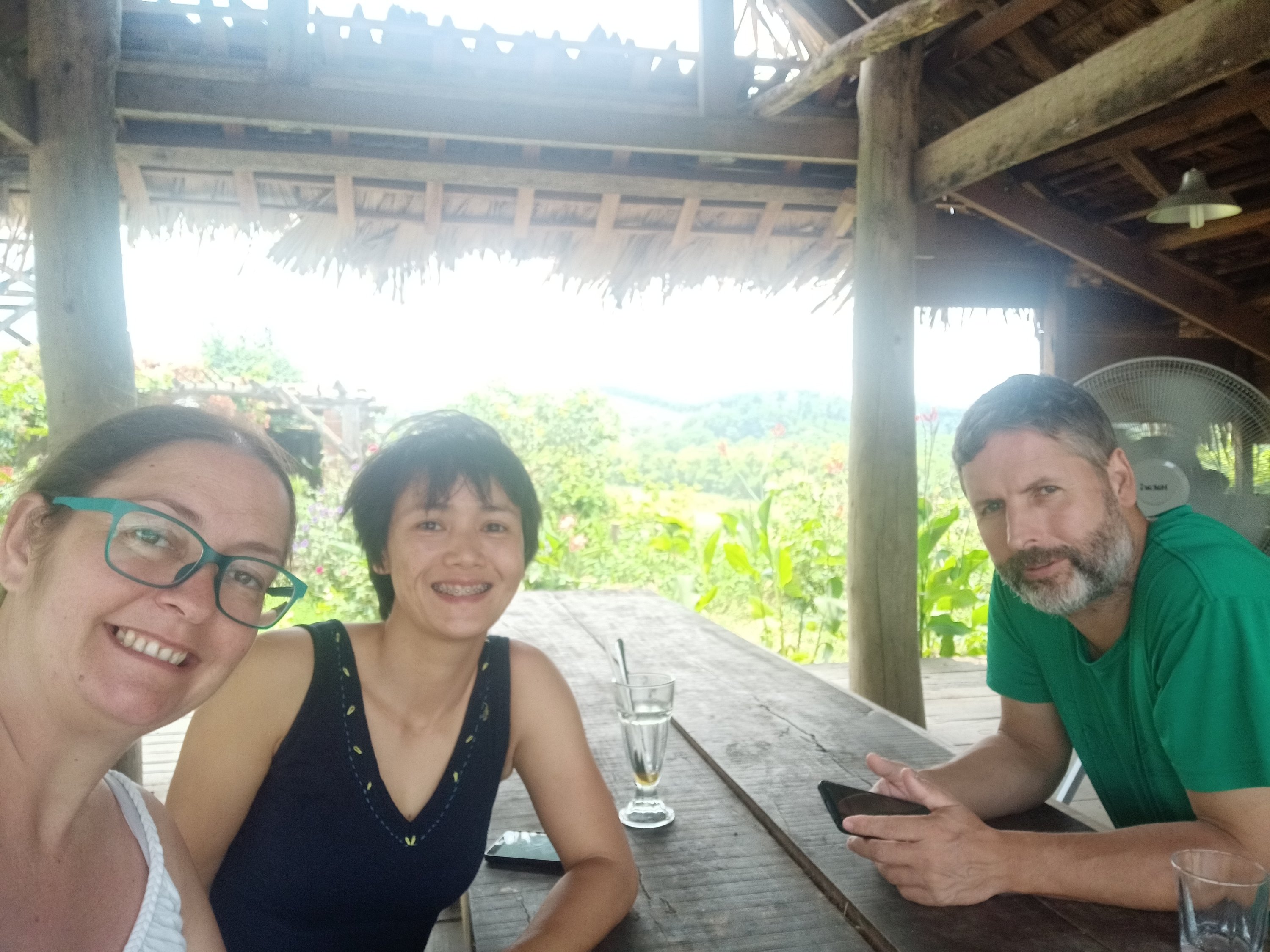 When Captain Caveman returned from Phong Nha just after 10am I had accidentally fallen asleep after my shower. There was no more snoozing to be had, though, because we were off to meet Hanh, a friend who I was meant to meet in Hoi An but she was in Phong Nha for a couple of weeks. We decided we would go to East Hill for an early lunch of BBQ chicken and sticky rice by motorbike, even though it isn’t very far from our place. I managed the steps up pretty well and Hanh was already there, ready for our early lunch. I decided to have a pepsi and this was the first time I noticed the odd sugary fizzy drink was creeping in to my diet – it always seems to happen when the hot weather comes. Captain Caveman did the honours of cutting up the hot chicken and we tucked in, all rather hungrily. As always, the chicken was excellent and the views were stunning, it was lovely to see Hanh, who we hadn’t seen since she left Phong Nha last year, when her Bun Cha restaurant had to close due to lack of customers. Captain Caveman had a shandy so I decided a strongbow would be nice and refreshing on such a hot day. The steps back down were still a bit harder to do but Hanh helped me, then we said our goodbyes, hoping to meet again and headed home before what looked like a storm brewing.