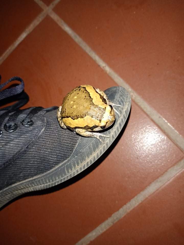 I had another short nap and then there was a huge downpour and a storm. Unfortunately Captain Caveman’s next Son Doong briefing was at 6pm so we shared the falafel salad (the one we brought all the way from Nomad’s Kitchen in Danang and was still really good) and then he had to venture out in the rain. He had been suffering terribly with hayfever too, since returning to Phong Nha, but luckily he had the motorbike rather than having to cycle the 9km there. While he was at work, the rain continued to pour down, it was bad enough for a frog to try to take shelter on Captain Caveman. The two-toed frog had tried to climb up his leg, maybe to take shelter under his shorts, but had to settle with a rest on his shoe! By the time Captain Caveman returned I was already in bed, all the excitement of Danang had worn me out!