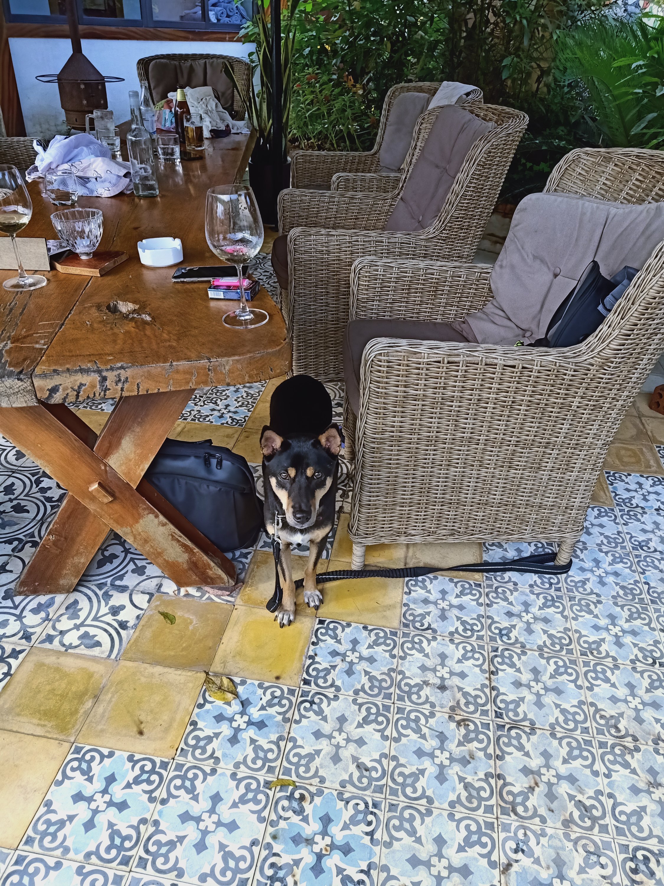 Caroline had been invited to a friend’s house party for sunset, my stomach wasn’t great after the sausages so I had a little nap and then gave belly rubs to River. Around 7.30pm Caroline came home and we decided to get a taxi to the old town for dinner. I was shocked at how quiet it was as we walked from the main street towards the river front, something I couldn’t have done last time I was here. Caroline suggested we eat at a delightful little place called Cabanon where she introduced me to the chef and owner, Gilles. We decided to have a bottle of fizz and a half baked camembert to share for starters, Caroline also ordered the pâté which I don’t normally eat. We were quite hungry because we had not eaten since breakfast and I’d taken a Gastropulgite prior to dinner to help prevent any stomach problems. The starters were fantastic and I even tried, and enjoyed, some of the pâté. For mains we decided to share our dishes of carbonara and chicken cordon bleu and the food was so good! A man on the next table heard Caroline talk about her forthcoming motorbike ride and went off to buy her a bandana for wearing underneath her helmet to keep her hair good and prevent a sweaty head – how nice of him! Back home we had a nightcap, of more fizz, while singing and dancing to music – I’d had a great time on my last night in Hoi An.