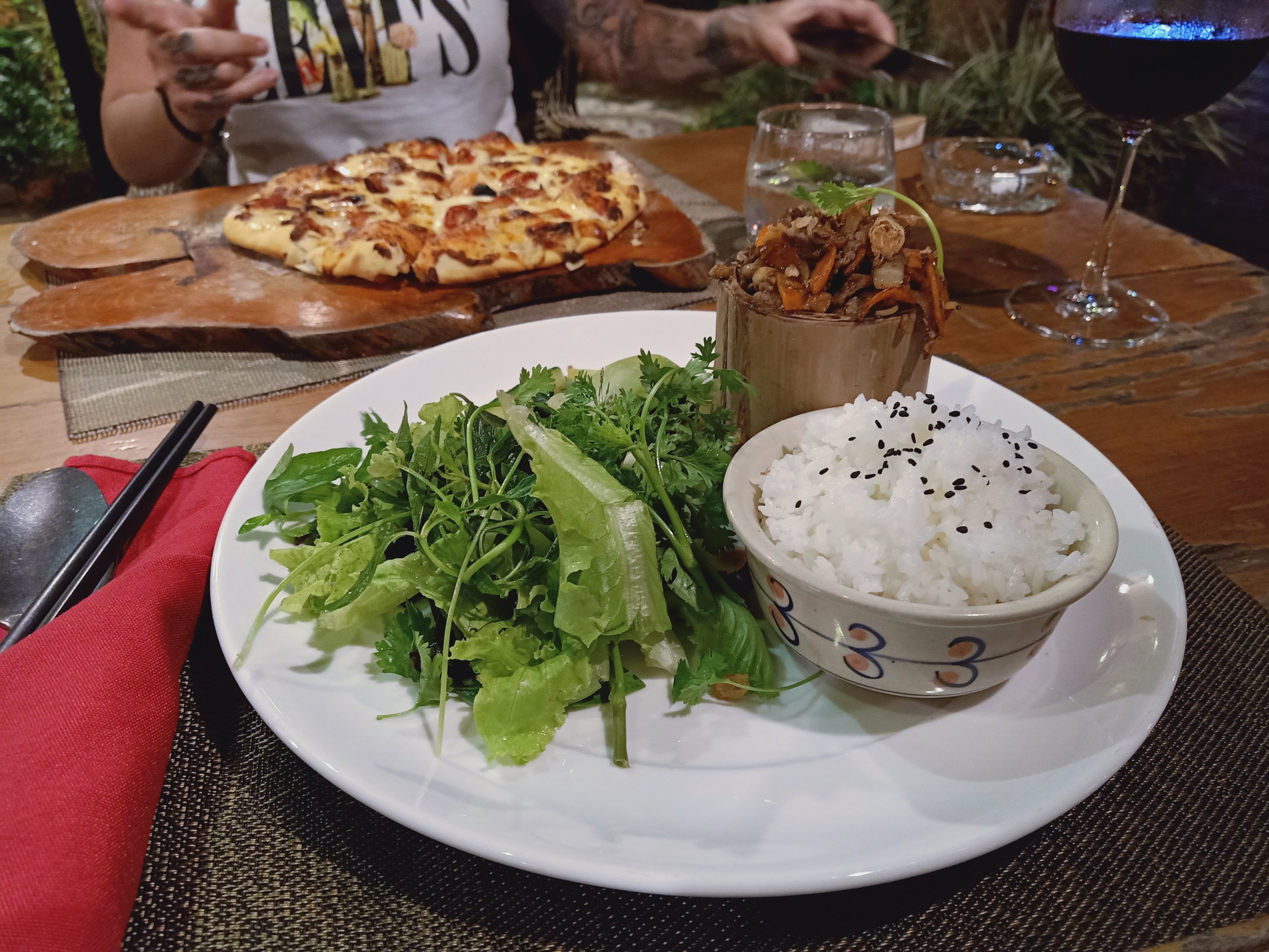 After the 3rd shower of the day at the hotel, we were off out for dinner. It was Tatas’ last night so she got to choose where she would like to eat. We arrived at The Nomad Kitchen in An Thuong and ordered some drinks while looking at the menu. It was a shame that I’d decided not to drink as they had some decent wine for a good price.