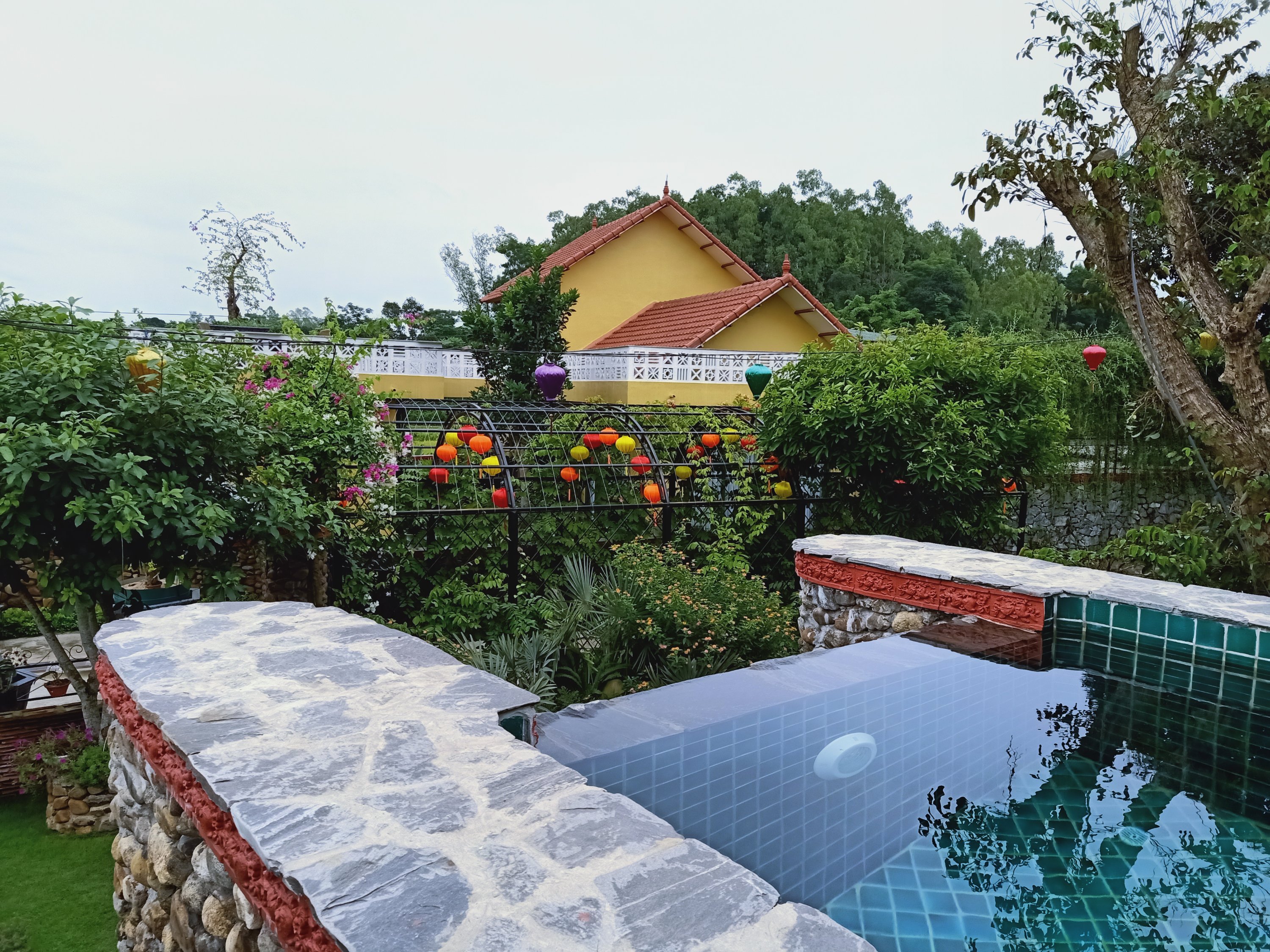 I had a lovely day in Hoi An on Thursday 22nd April with Caroline. I’d slept much later than I usually do and so our first stop was for breakfast at Rosie’s. We met Neil who had just bought a new motorbike and so they were chatting on about parts and planning a visit to the Harley Davidson shop in Danang. Neil came up with the Poison Ivy song being used as her kind of backing track and he and I sang it while waiting for our breakfast to arrive. It was really hot and sweaty so I probably shouldn’t have gone for the English breakfast, I’d come to regret the choice of sausage later. Caroline had the breakfast burritos which looked good and Neil a salad bowl with extra chicken which was a better choice than mine. Back at Caroline’s we had a much needed dip in the pool which was so lovely, we even had a glass of fizz while we swam. I had a bit of trouble getting out of the pool and ended up having to go backwards because the tiles on the side were too slippy, but she did have steps and a bath mat so all was good.