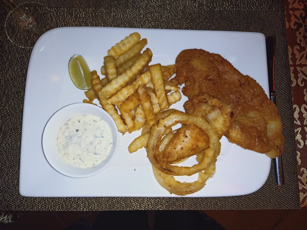 I was so impressed with the meal as it even came with white vinegar (I’m not keen on the malt vinegar you can find in restaurants here sometimes) and the tartare sauce was spot on too. On the plate was 2 substantial pieces of crispy battered basa fish, 3 battered onion rings (which I gave to Captain Caveman), a portion of chips and a bowl of tartare sauce. One of the cavers mentioned it needed a cup of Yorkshire tea and a suggestion was made by Captain Caveman to add on mushy peas, which Veronika seconded, given she had just fish and salad for her meal but thought salad didn’t really go. We got a lift back home with Bich in the car while Ben waited for the other guests to take them back on the fun bus. All in all a successful evening and I’ll definitely look forward to eating the fish and chips again at The Villas.