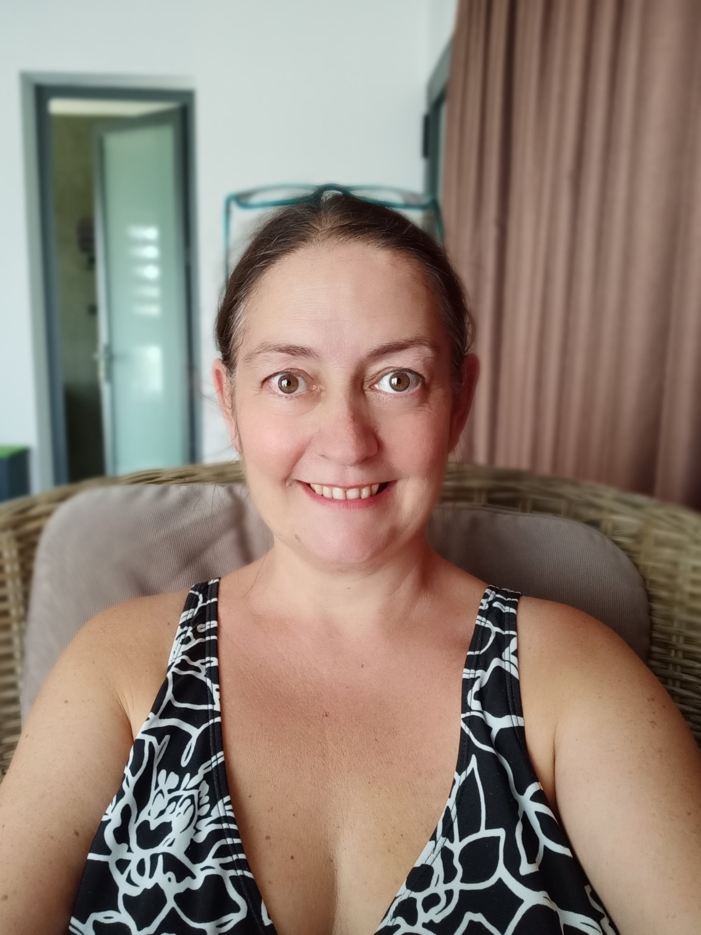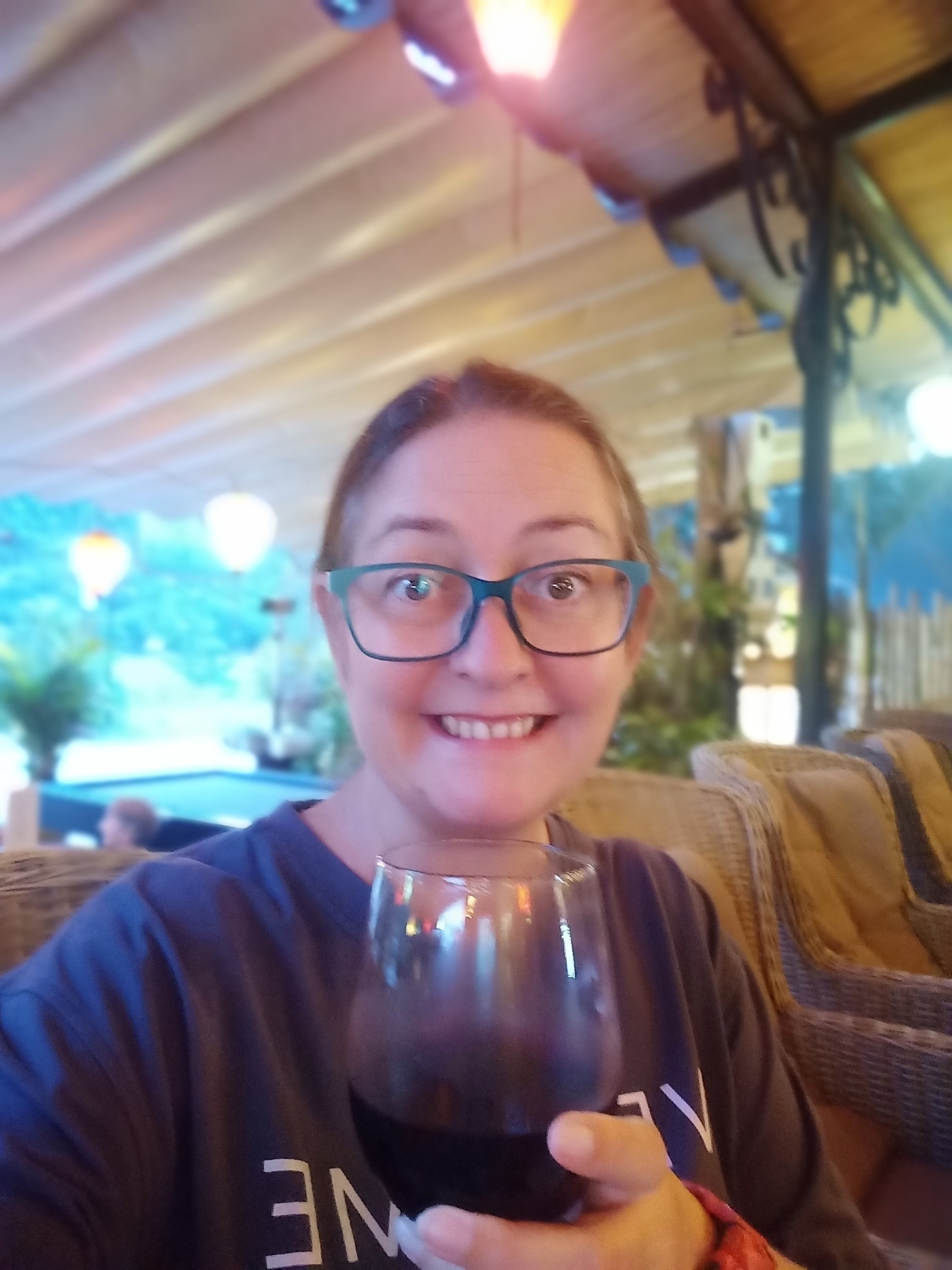 We arrived at Tree Hugger and we went upstairs to eat, I ordered peach tea with my pancakes, fruit and honey. It was really busy today and so we were there for about 2 hours in total and I took half of my breakfast away. As we left Tree Hugger the boys were moaning that they didn’t want to go shopping and they were bored but luckily for them, we only had time for a trip to the organic shop and the VinMart. When I got back home I took out the last piece of chicken from the freezer, not realising it had bones in, and I’d not been able to get any more chicken breasts in Dong Hoi. I ate my leftover Tree Hugger breakfast for lunch and then chilled out by the pool. Later, Captain Caveman made us a chicken salad baguette, a bit like being at Subway, but the chicken wasn’t ideal for this kind of meal and would have been better in a stew or curry. We shared a bottle of red wine as I tried to finalise the plans for tomorrow’s Ladies Night!