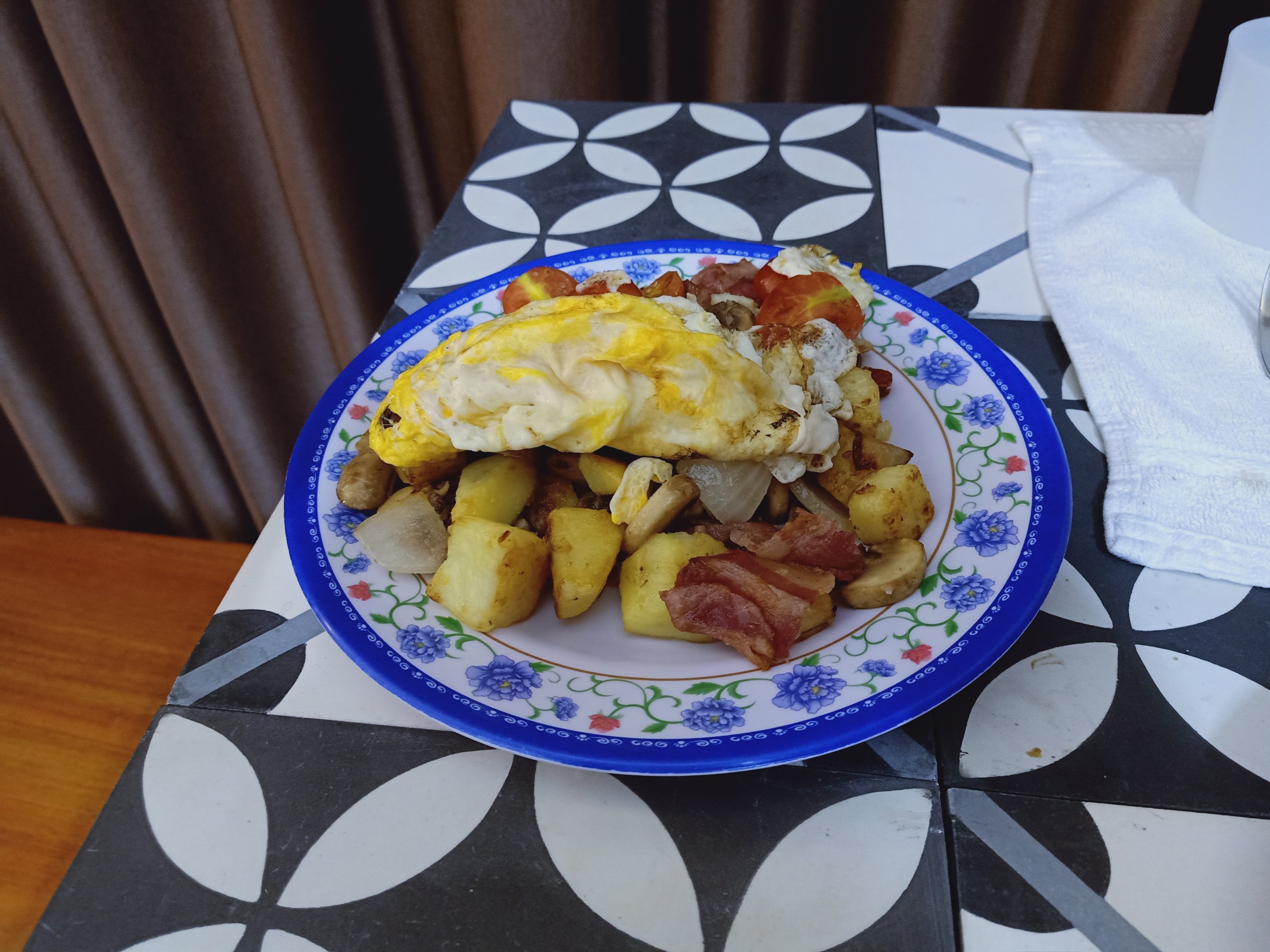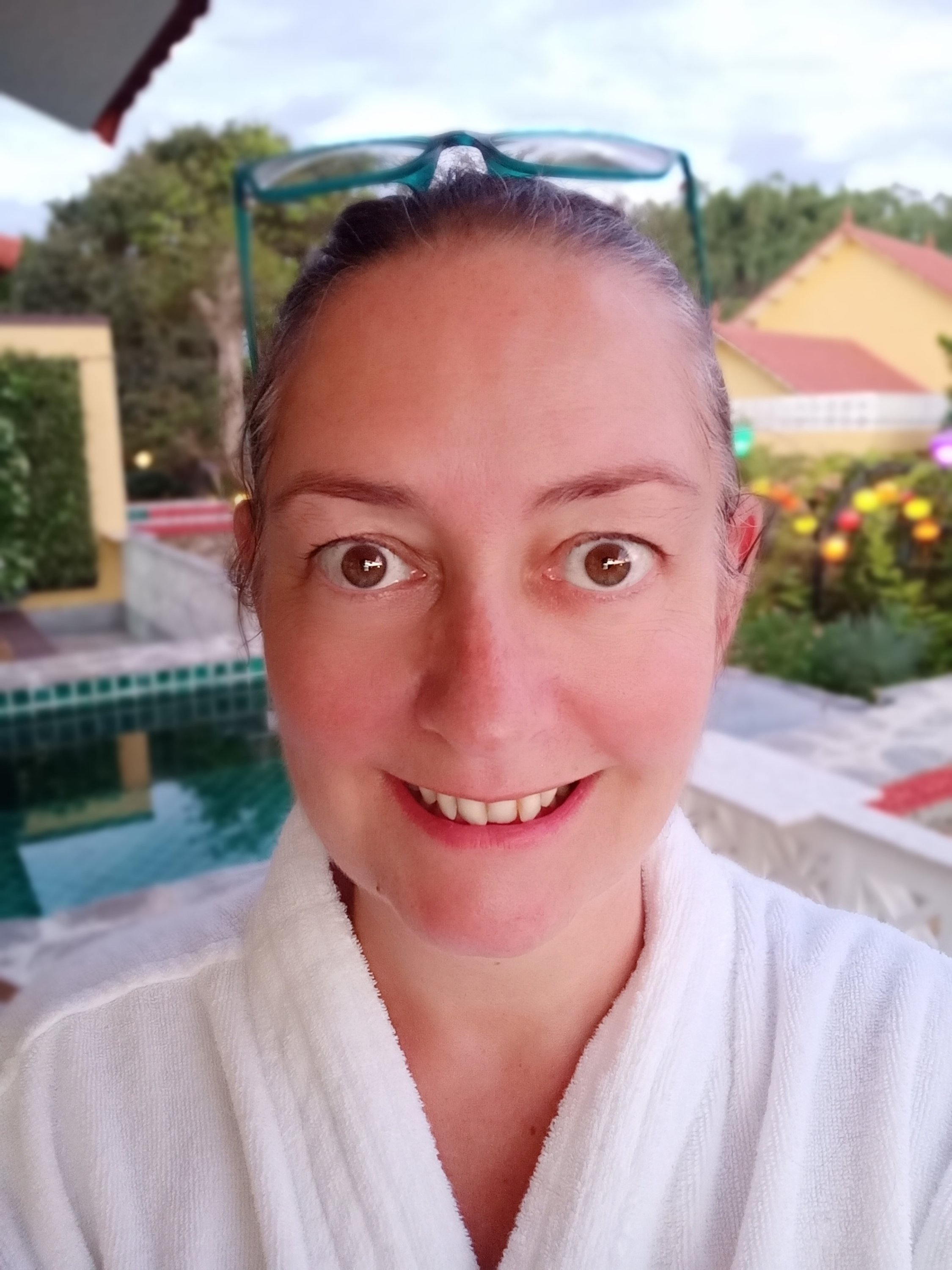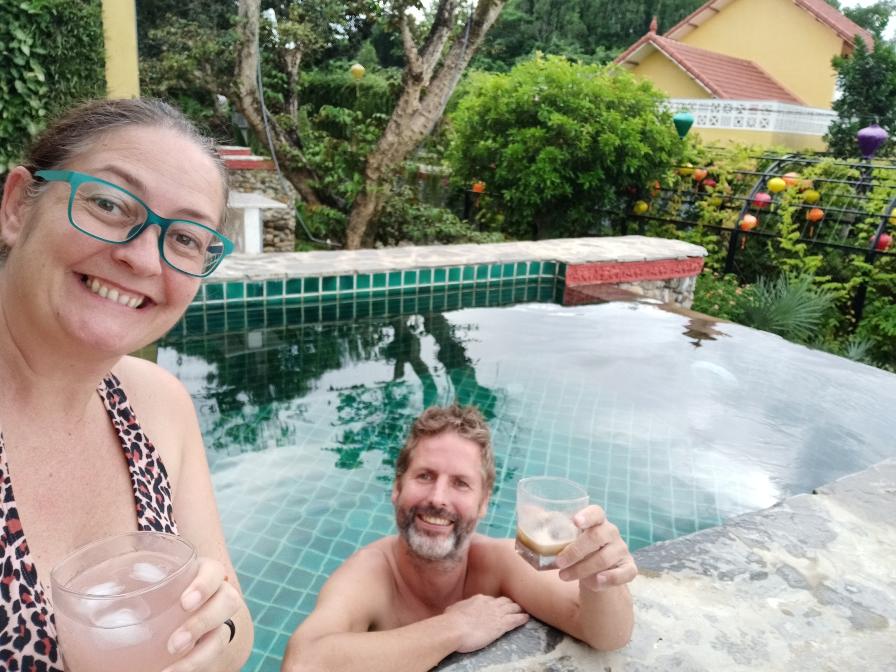 On Sunday 27th June Captain Caveman didn’t go to Oxalis but he did get a message to confirm his next Son Doong tour would be on the 9th July, with the briefing on the 8th, so he was very happy about that. I completed a few blogs in bed but couldn’t post them because of the phone issues and so lined them up in drafts for when I can. I finally got up to make pancakes at 11.45am and when I started making the mixture Captain Caveman appeared and started making a cooked breakfast without any consultation. He made us both bacon, mushrooms, peppers, potatoes and onion (him with added egg) and so mine was ready while I was still stirring the pancake mix. I ended up making a mess of it because I couldn’t remember how much milk and water I had added and put it in a jar in the fridge. After breakfast I caught up with more writing and apart from a break for a Baba Ganoush lunch I kept myself busy. I finally got in the pool after 5pm, Captain Caveman was already in there and, while Veronika and Howie went up to Phong Nha Farmstay for Sunday Roast dinner, we had decided that spending 600,000vnd (£19.20) from our remaining funds was not a sensible action and we made a chicken dinner at home instead. I roasted a whole pumpkin, in batches, so that we could have some with dinner and the rest I could make a soup with tomorrow. I even attempted Yorkshire pudding with the batter mix from earlier but it was not very successful, I thought it was the almond milk that ruined it but Captain Caveman thought that 230°C wasn’t hot enough! Before bed I found an app to track everything I eat and drink as well as my reactions and any symptoms for allergies, I added a week’s worth of data and it told me dragon fruit is my allergy of the week so far! It obviously needs more information so I will continue for a month and see what it comes up with.