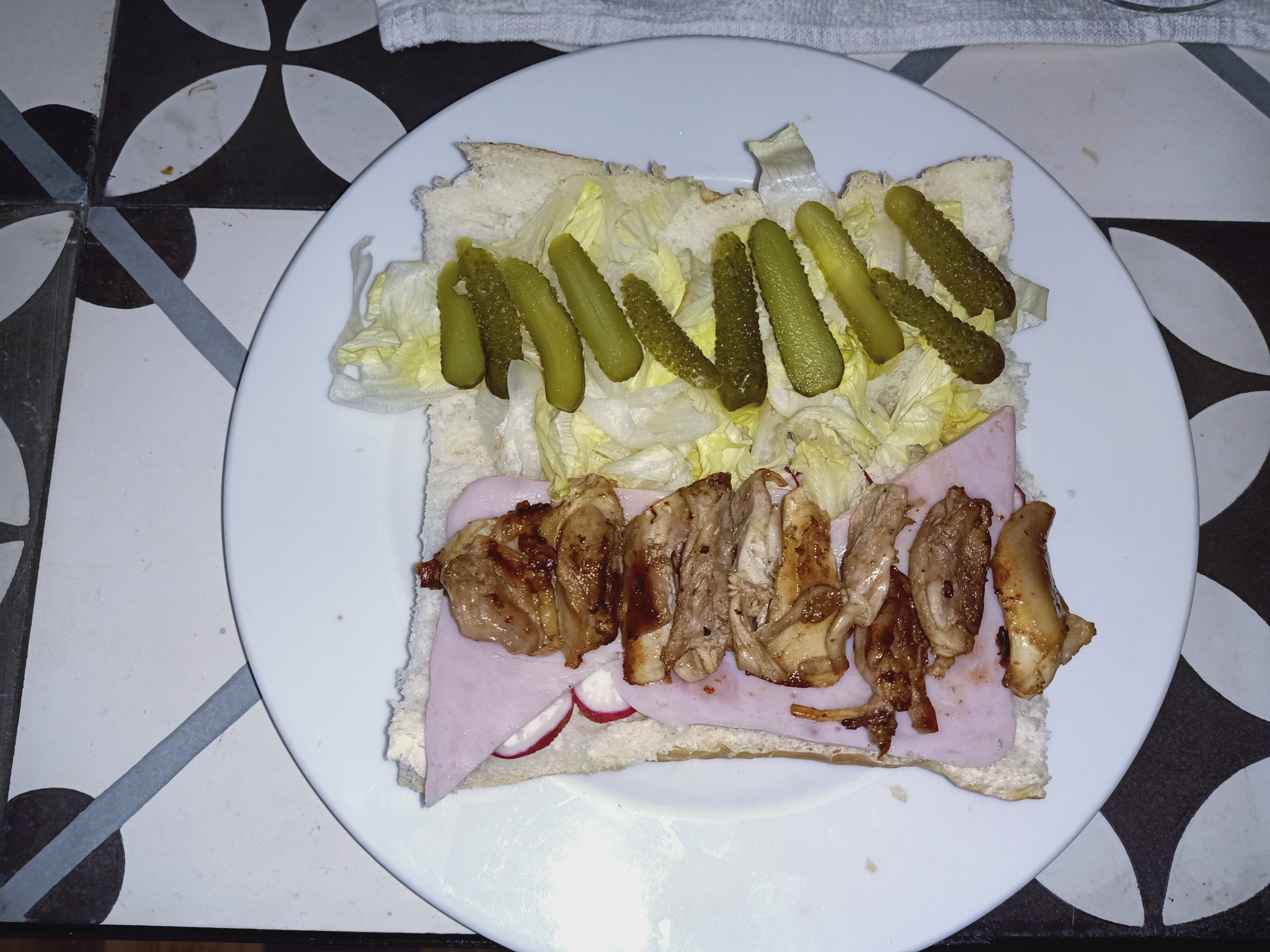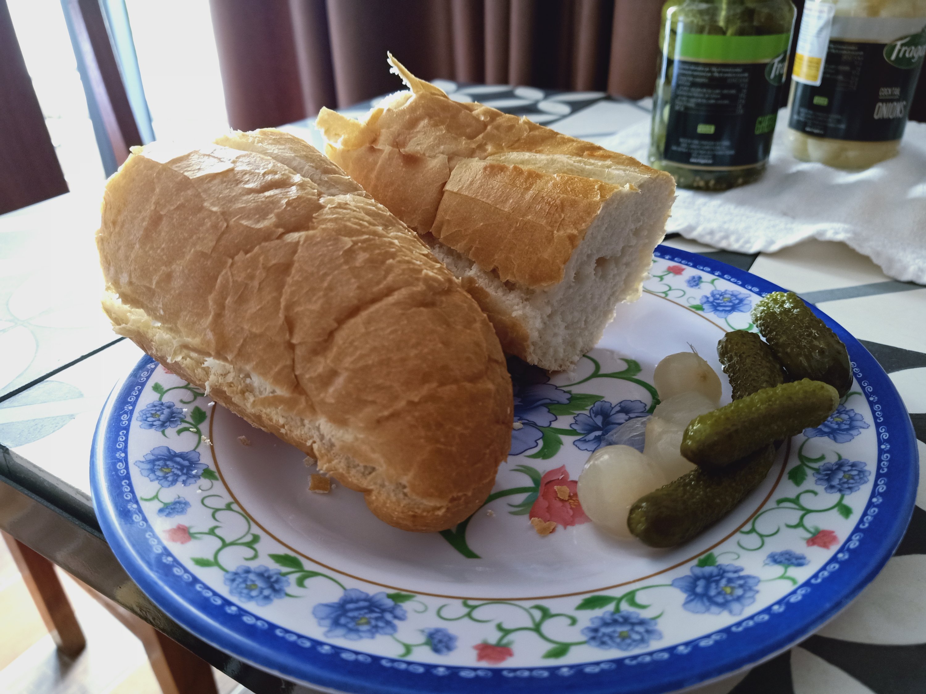 For brunch I had a ham salad baguette with pickled onions and gerkins, some cashew nuts from Funny Monkey’s and 3 mangosteen.