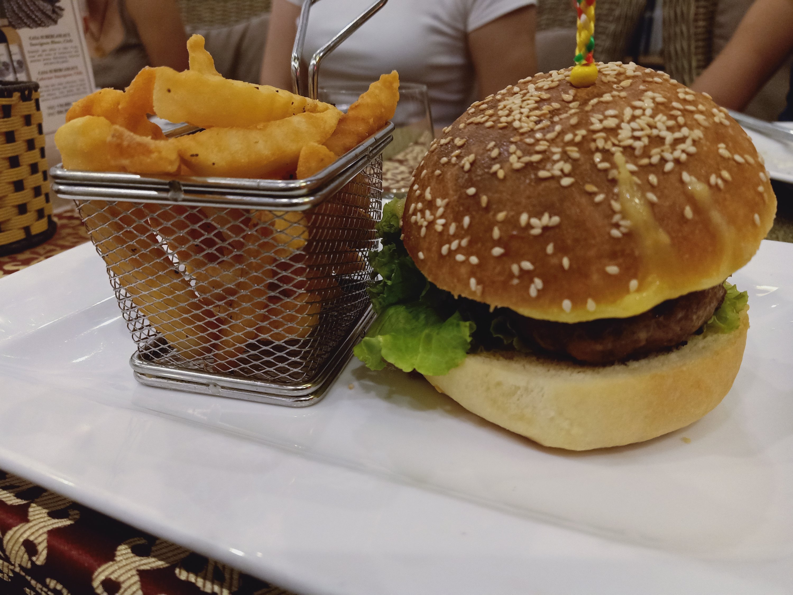 Back home, on the afternoon of Thursday 17th June, having had my first vaccination, I made myself a ham sandwich and some tea. I had organised Ladies Night for later so I decided to rest up as I didn’t want to feel unwell for my night out. Captain Caveman was in Phong Nha for a bit longer and by the time he got home I had various messages from some of the ladies to ask questions, change arrangements or to cancel. I got a message from one lady to say that 3 people wouldn’t be able to make it because they had been vaccinated and weren’t feeling well. With 15 minutes before we were due to leave I was asked if we could move the event to next week instead, but Tatas was already on her second cocktail and wondered where we were. Momma D, had been the first to arrive and was sat next to Tatas. I sat next to Tatas, opposite Bich, who was next to Shannon, Veronika sat next to Shannon and Momma D. On the other side of me was Hong and Hạnh, then Ngày and Moon. Hien and Trang joined later so we had a full table and only 3 people unable to come. I decided to try the sangria and a burger but I was conscious that having the jab I might feel a bit fragile so I took it steady on the alcohol. The food was great and I couldn’t finish the burger, it was so big! I had one glass of wine which Tatas shared with me, as she bought a bottle to share with some of the others.
