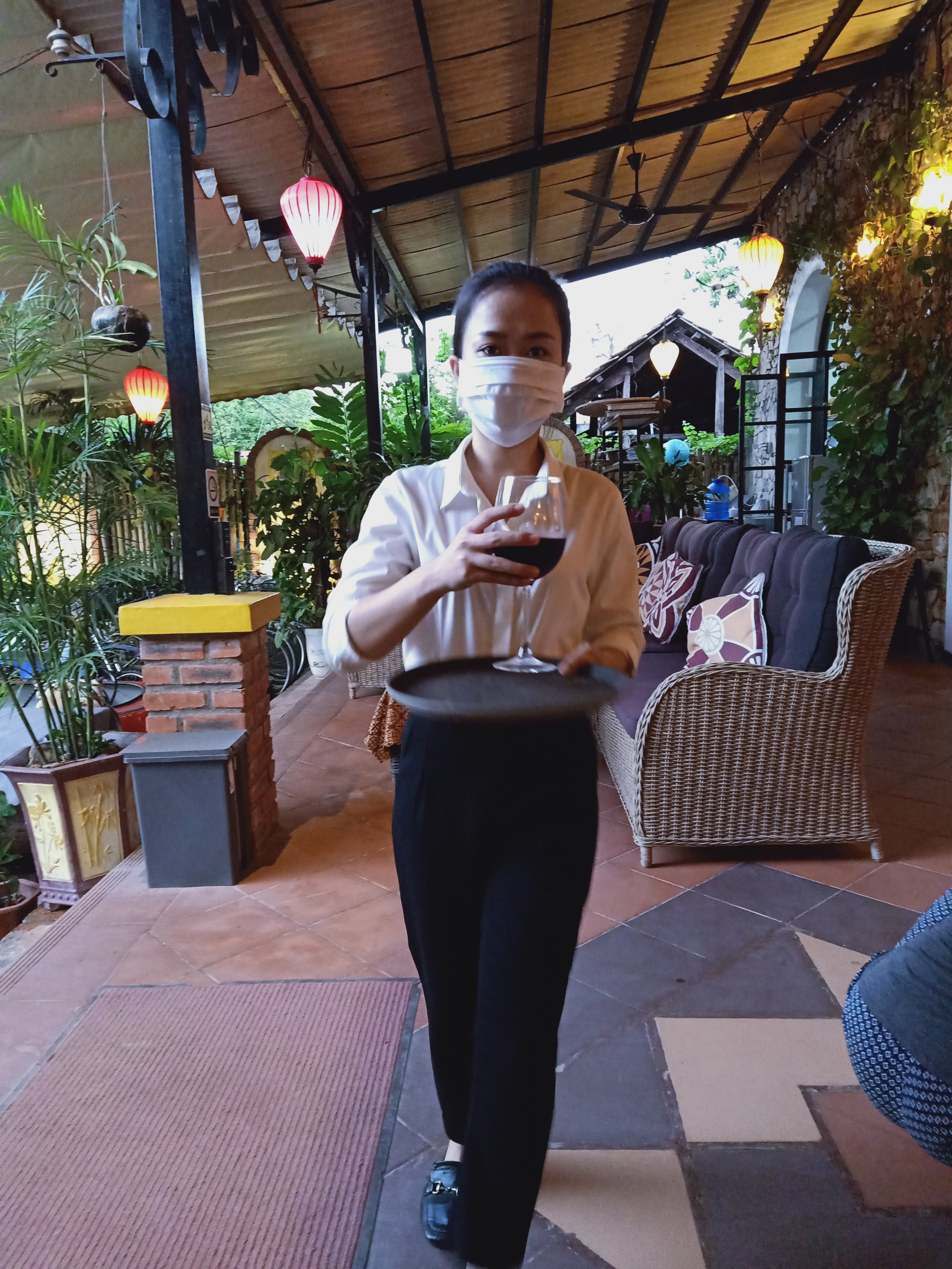We had decided to try the new fish and chips special at The Villas, also giving us another opportunity to perhaps retrieve my passport. Ben and Bich picked us up in the Phong Nha Farmstay minibus with their group of customers from Hanoi, it was great to have some tourists around again! We sat outside and I enquired about my passport with the manager, but it had not been left for me yet. There were quite a few out tonight, all the Oxalis cavers and Momma D had come to sample the fish and chips and were sat in the bar area with Shannon too. We shared an outside table with a lovely old chap called Leonard, who’s really funny. He and I had a white wine and Captain Caveman had a beer. Veronika finally sat down at our table, probably waiting to see if anyone would want to mover her out of her seat first.