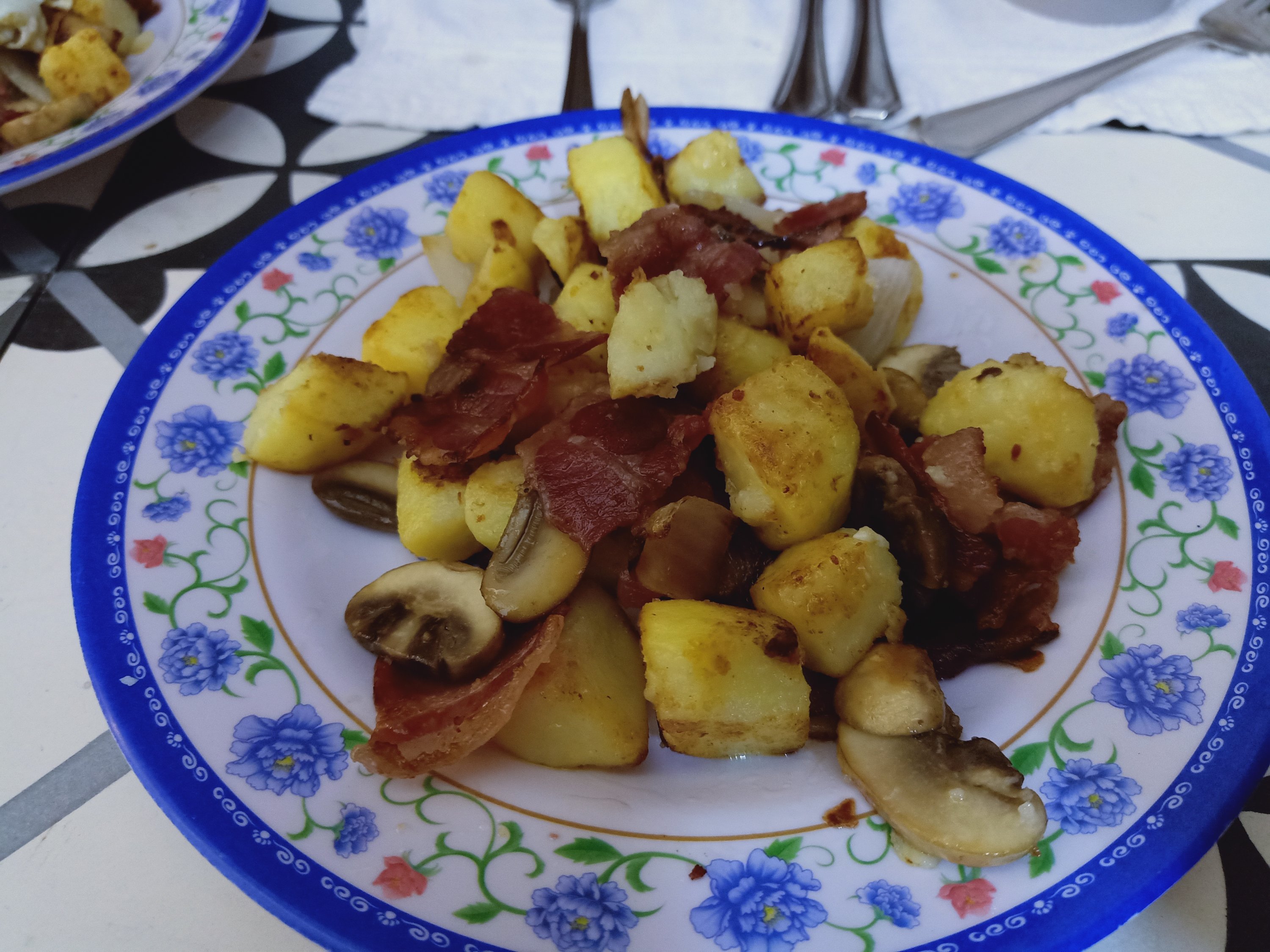 As we were trying our best to cut back on spending while Captain Caveman had less/no work, we had to forgo the Farmstay Sunday Roast dinner tonight and instead we made a chicken dinner together at home for less than a sixth of the price. I doubled up on the roasting of the potatoes, onion and garlic, in Veronika’s three-legged oven which I’d recently found out works quite well, so that Captain Caveman could make a Spanish omelette with the spare. It was still a lovely dinner and although I was missing having wine whenever I felt like it, I was definitely having less calories so hopefully I would be seeing the benefits this week! I wouldn’t have been able to have a Farmstay dessert anyway because of the avoiding of dairy so we were happy to make the sacrifice.