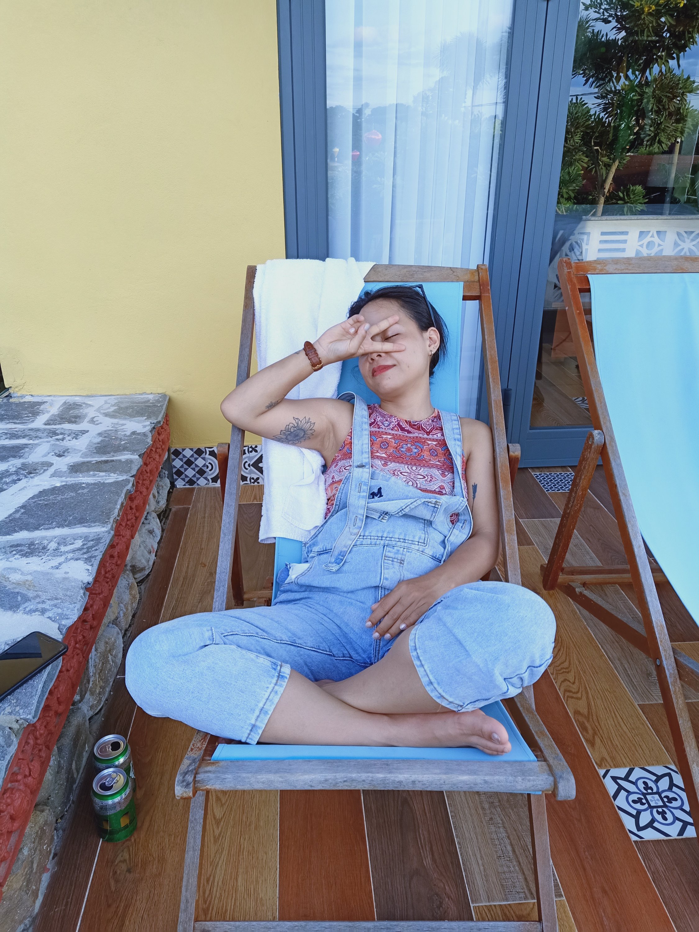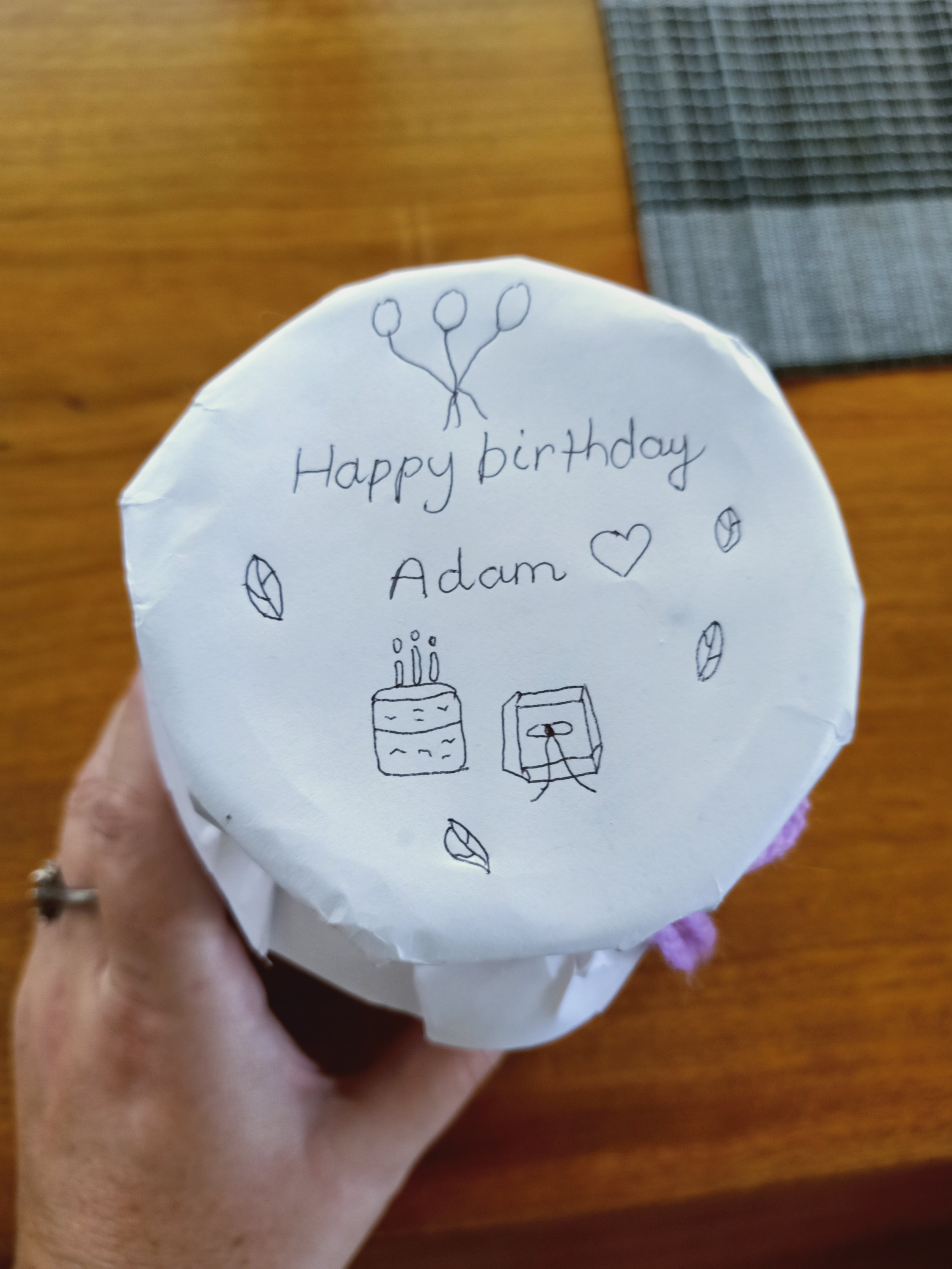 Having left East Hill after a wonderful lunch we arrived back at Elements Collection about 2pm. Thankfully Tatas had taken the beers on her motorbike as Captain Caveman has no basket and I would have struggled to carry them on Bluey. It was so hot that we got in the pool straight away, Tatas hadn’t brought her swimmers so sat in a deckchair in denim dungarees. We all had a beer and it was at this point that Captain Caveman revealed what had happened to Tatas’ carrot cake on Tuesday; he had taken it, in the seat of the motorbike but had decided to take it to Oxalis and gobble it down for his hungover breakfast then pretend it had been stolen from the bike! He confessed from the pool, Tatas and I were shocked especially as we had lots more cake at home! Hien popped round and brought Captain Caveman a bottle of red wine, which was really lovely. Tatas and I ‘persuaded’ (it didn’t take much doing) Captain Caveman we should go to the Farmstay for a happy hour drink to finish off his birthday with the Farmstay family. We ended up having chicken quesadillas, pitta bread with dips and wine! A birthday cake was presented and we sang Happy Birthday to Captain Caveman before all having a piece of cake. When we got back home there was a tiny surprise which I had forgotten about until the next day.