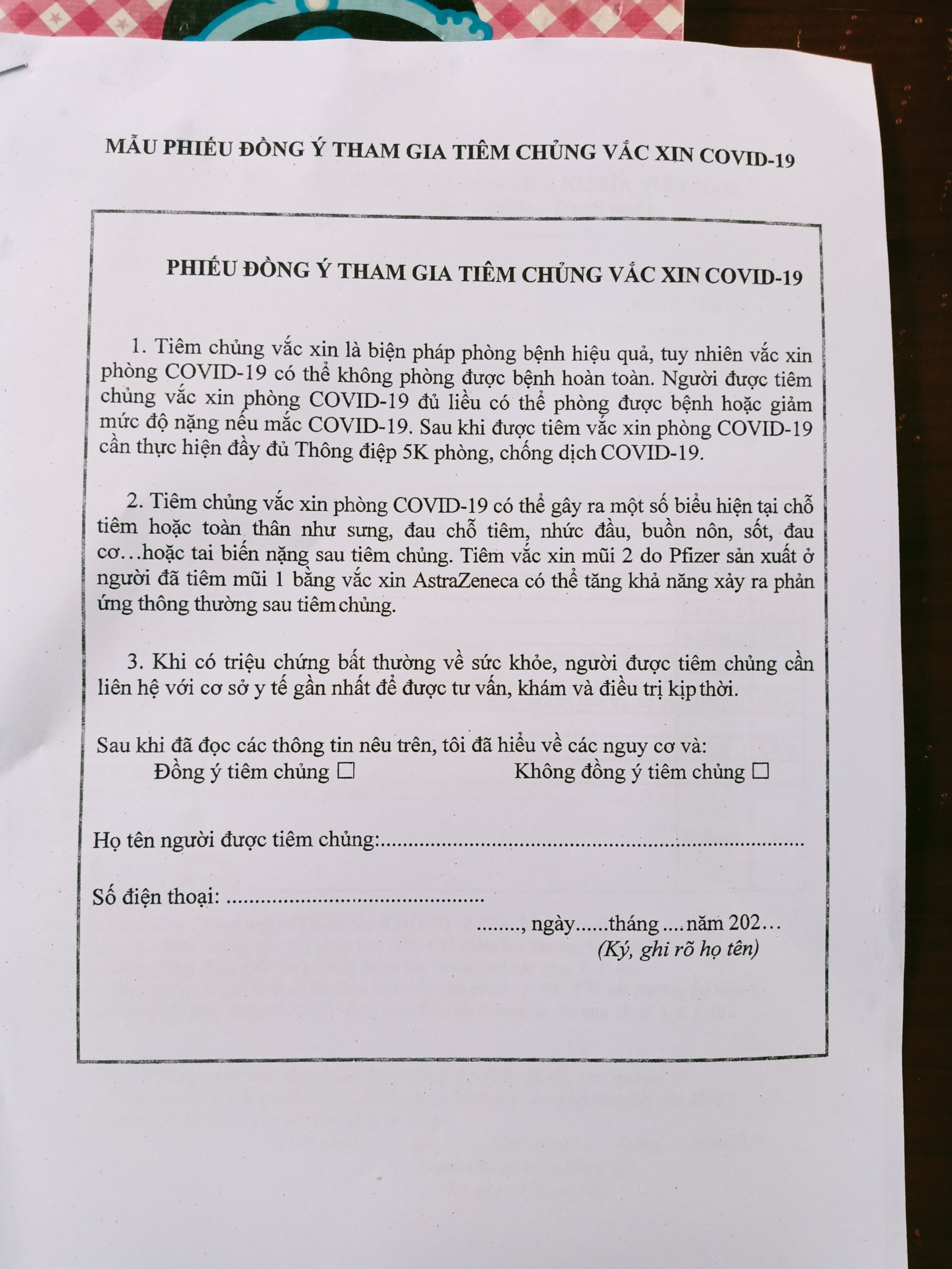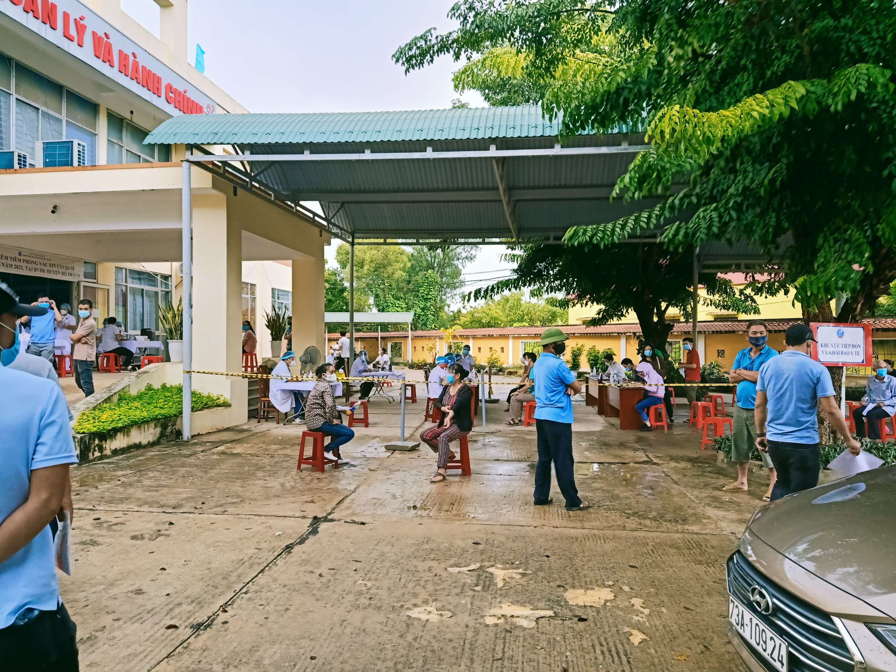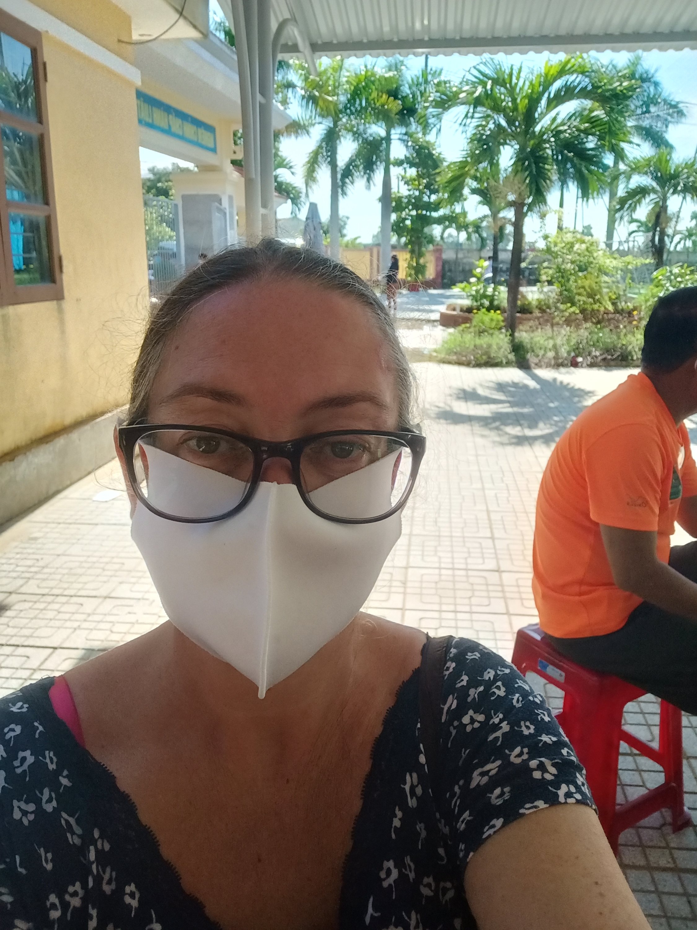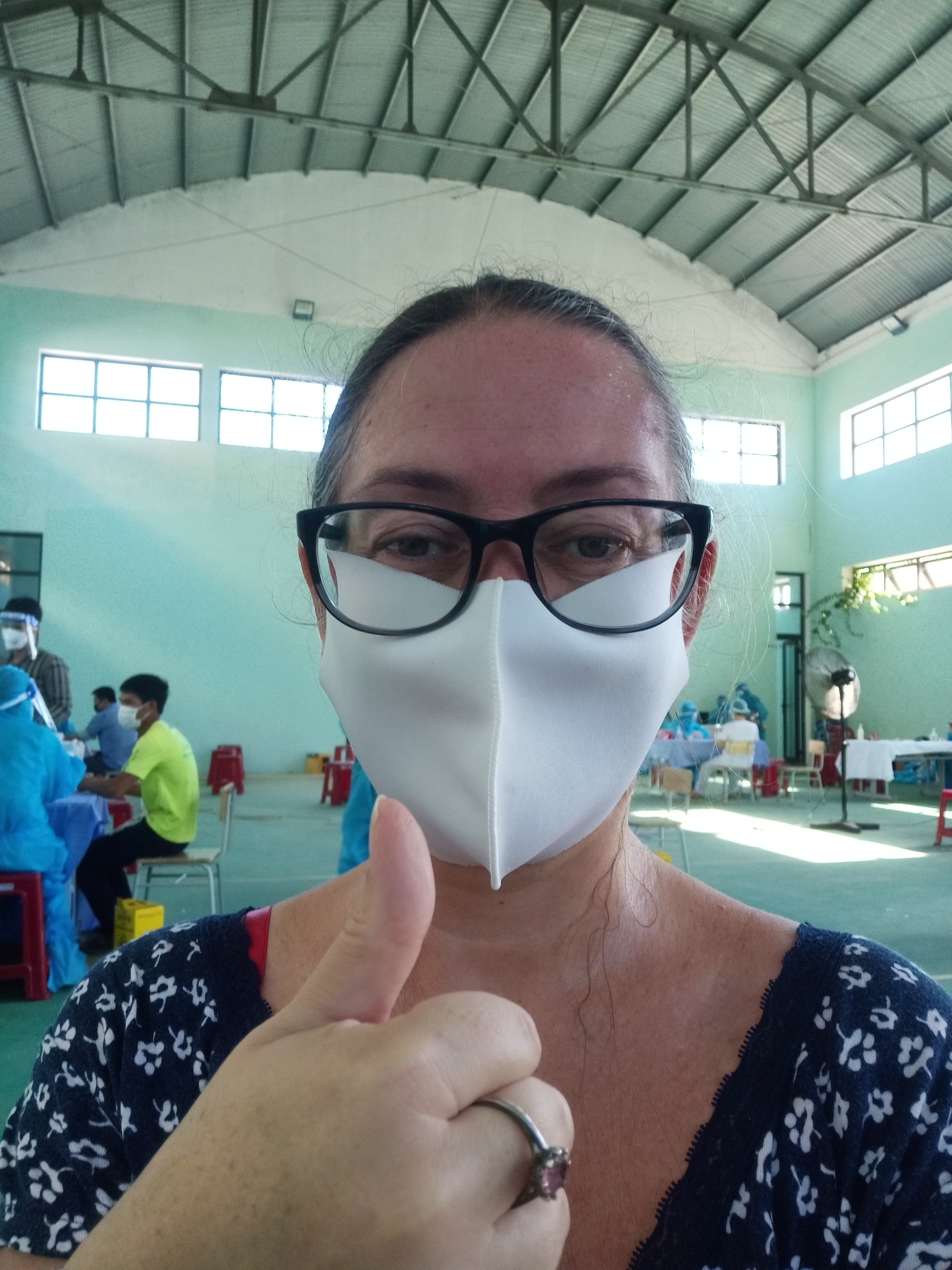 I set my alarm for 6am on Monday 6th September as I was getting picked up by the Oxalis vehicle at 7am at the junction of the small road to our place and the highway. It was day 12 of the #STFAH Directive 16 Lockdown but I was off to Hoan Lao hospital, which is about 30 minutes away and still in the same district of Bo Trach. I had my permission slip, my passport and my vaccine stamp in a waterproof bag, I was wearing Captain Caveman’s waterproof jacket and I took one of the Elements Collection umbrellas for the 10 minute walk to the roadblock and main road, in heavy rain. As I approached the house on the left before the barrier, a man shouted in Vietnamese to ask where I was going. I replied Hoan Lao and tried to show him my permission slip but he wasn’t letting me near him and just waved me away. My trainers were squelching and my feet were cold but I made it to the pick up point for 7am, everywhere was closed and there was nowhere dry to sit or stand so I just waited at the side of the empty main road. I checked with Captain Caveman a couple of times over the next half an hour if he had heard if they had set off as no vehicles had passed me at all, I didn’t want to be forgotten. Captain Caveman had heard nothing but eventually at 7.30am I heard two mini buses driving towards me, I assumed they would be the Oxalis ones and stood in the middle of the first lane of the highway to wave them down. The 1st bus told me to get on the 2nd one, so I did and there was already 6 people on, none of whom I recognised and all seated, nicely spaced out and wearing masks, some of them were double masked! When we got to Hoan Lao hospital it had almost stopped raining and we had to queue up with social distancing measures that were actually strictly enforced. We had to sanitize our hands and then stamp ourselves with the stamp on the table. I watched and copied everyone else as there didn’t seem to be anyone who spoke much English and then we all went to a designated outdoor area with a roof over and lots of plastic chairs, I was still confused as to why I needed a quick test to go to pick up my negative PCR results but if this is what it took to get out of here, then so be it. There was a small queue where we sat on red plastic chairs 2 metres apart until we got to the first desk which had 4 attached pens and lots of copies of forms to complete. I asked a girl from our bus if this was a form for the quick test, using Google translate, she said yes. I started to fill one of the forms in, having sent a copy to Captain Caveman to help me translate both of the pages, at the next desk were 6 fully covered, masked and shielded nurses so I asked them if I had the correct form and they said yes. It was at that point that I realised I was not in the queue for a quick test, this was the queue for vaccinations!