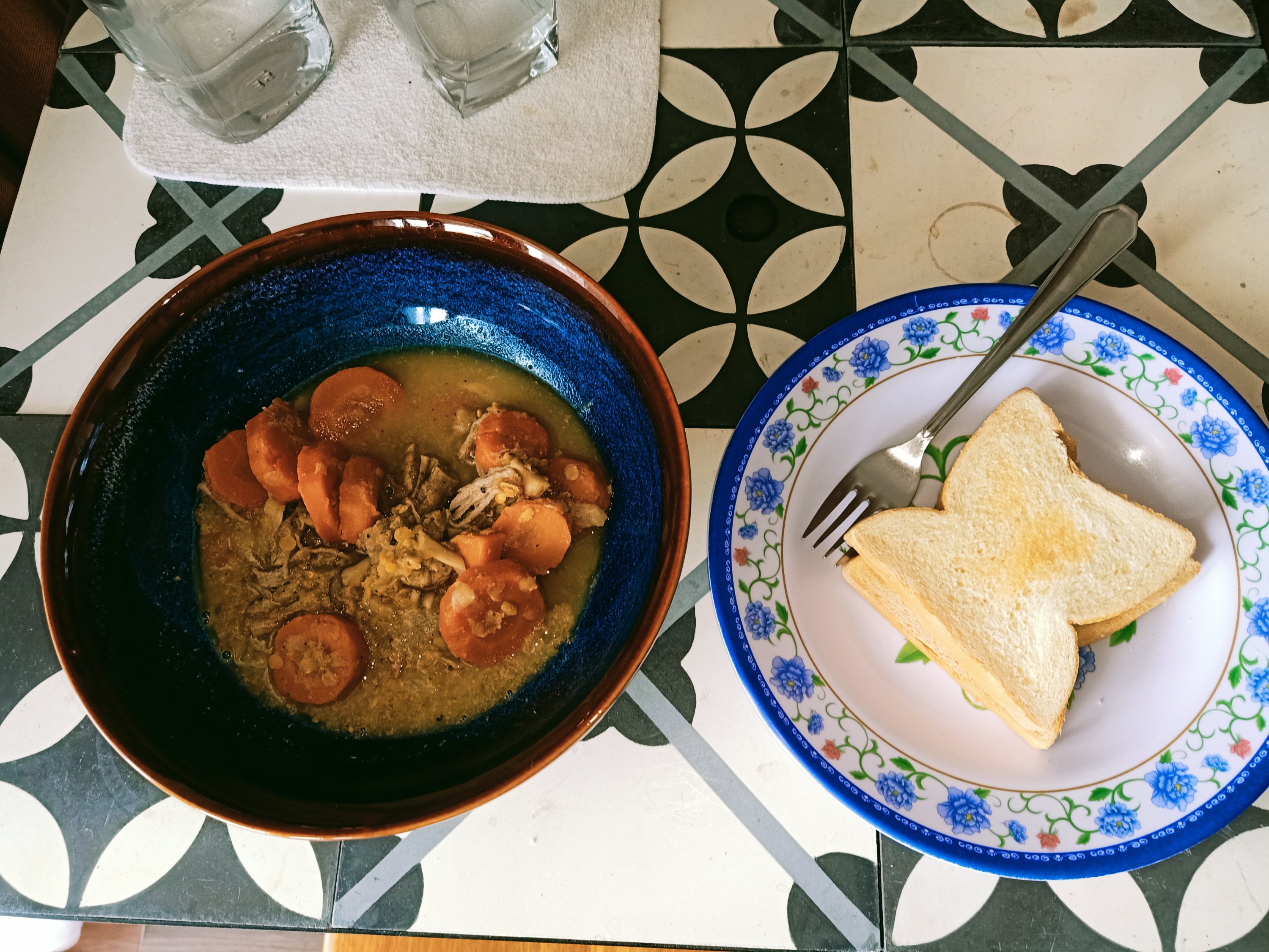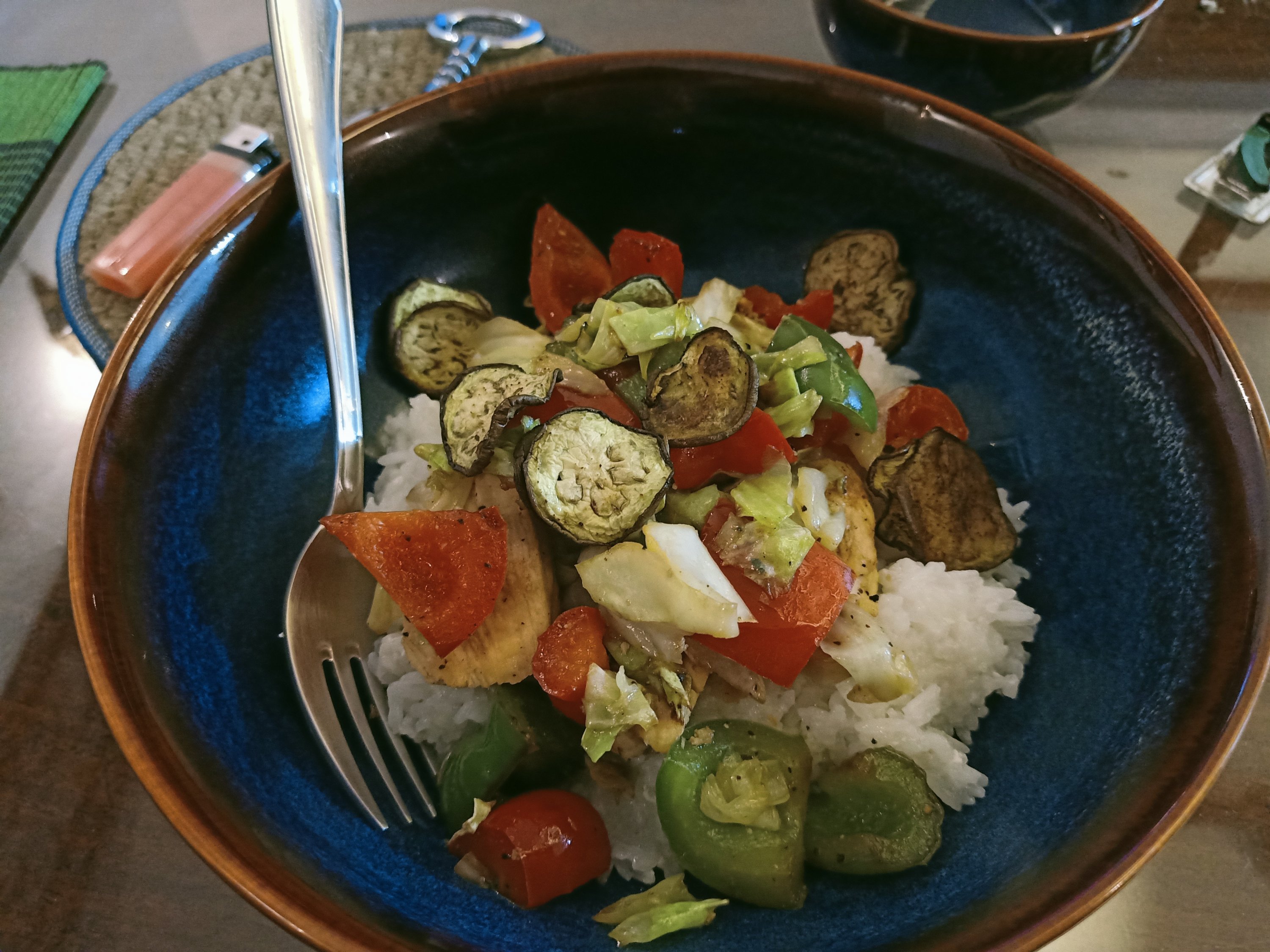 Instead of it being the last day of #STFAH on Thursday 9th September there was (at least) another week of Directive 16 Lockdown to come. To cheer ourselves up we had more of the pulled pork baguettes that we had yesterday, but for breakfast, followed by passion fruit. I would have been landing in Istanbul at 11.45am (Vietnamese time) and I was a bit sad that it hadn’t happened, especially as today was the 12 week anniversary of my 1st vaccine. It rained all day, at times heavily, flood and storm warnings were issued in our area, ironically we had no water again and the guys had to pump it from the other building, which looked like hard work in the rain. I made a kind of leftover vegetable medley (aubergine, peppers, tomatoes and garlic) to have with a slice of tortilla and my home made pickled red cabbage for lunch. It was now day 15 of our lockdown, gone were the days when we could frivolously eat 2 slices of tortilla at lunch, we had to make things last. I had a beer but I didn’t really enjoy it as I know it makes my eczema worse. We treated ourselves to some of the brownie disaster I made weeks ago, back when we had the luxury of an oven, even that tasted like a real treat! I’m not much of a chocolate eater but I’d started to long for a bit of decent chocolate or even a proper brownie. Today was also the day my visa expired and now immigration had my passport to extend it once again. That night, we had more of Stu’s amazing pulled pork with potatoes, asparagus and pickled cabbage and we were so grateful for a nice place to be living in and the food we had managed to get. Some friends had started to struggle to get the foods they needed or wanted, so we were in a much more fortunate position than most and it was good to remind myself that, especially when I thought of me being at our other home in Dalyan, had things worked out. As Captain Caveman and I had been eating the same for lunches and dinners he had been losing quite a bit of weight and I think he missed being able to ride his bike, but we were doing well compared to most. The bad weather was set to continue and although I was still fine with the temperature, grateful even, Captain Caveman had to put a hoody on!
