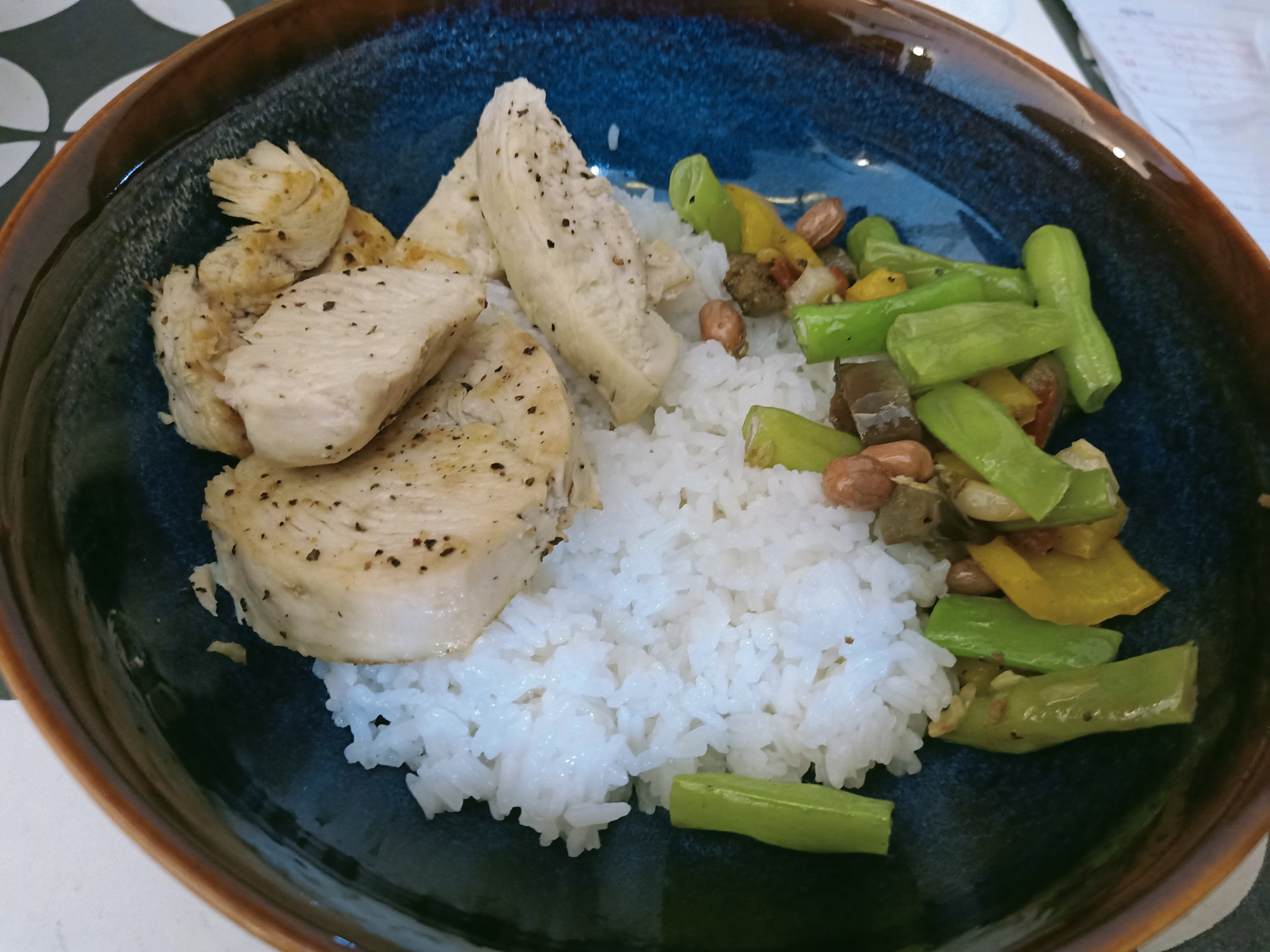 By lunchtime we figured we must both be negative for the Corona virus as we hadn’t been carted off to a quarantine facility yet so that was good news. We had lunch of Baba Ganoush on toast, followed by jam on toast and then a few of the grapes which Bich had sent! The day kept getting better; I got a message from Danny, the driver, to say he can set off a bit later, drive through the night, so that I don’t have to spend a night in the empty airport by myself. I was very pleased and we confirmed he would pick me up on a road just outside of our district at 9pm on Tuesday 7th September, we’d arrive at Hanoi airport at 7am the next day, 3 hours before my check-in – very helpful! I still hadn’t started packing my suitcases, despite Captain Caveman having brought them down from the upstairs mezzanine immediately after booking the flight! He said I should get on with it so that everything was ready to leave, I was putting it off for some reason. I saw photos of Captain Caveman’s colleagues on Facebook as they did their volunteering at the roadblocks and check points in the fight against the pandemic – I felt sorry for them as rain was forecast and they were sleeping in Oxalis tents on the side of the road! For dinner we had steamed chicken and rice with green beans, mushrooms, peppers, red cabbage, white carrots and the last of the peanut salt.