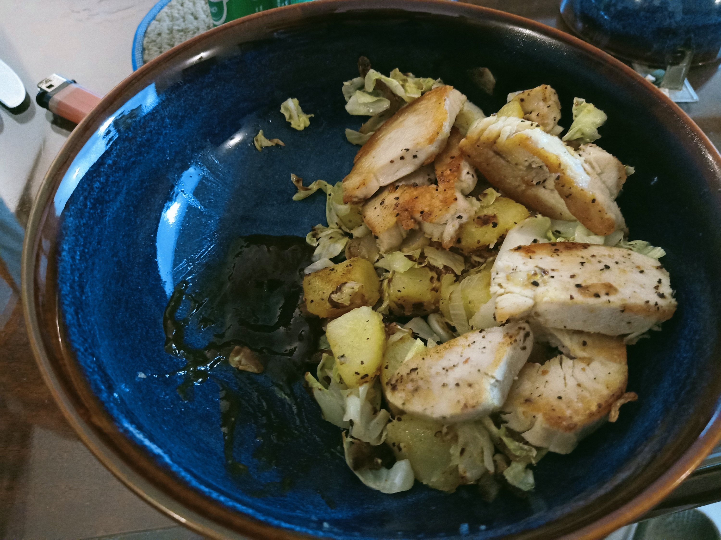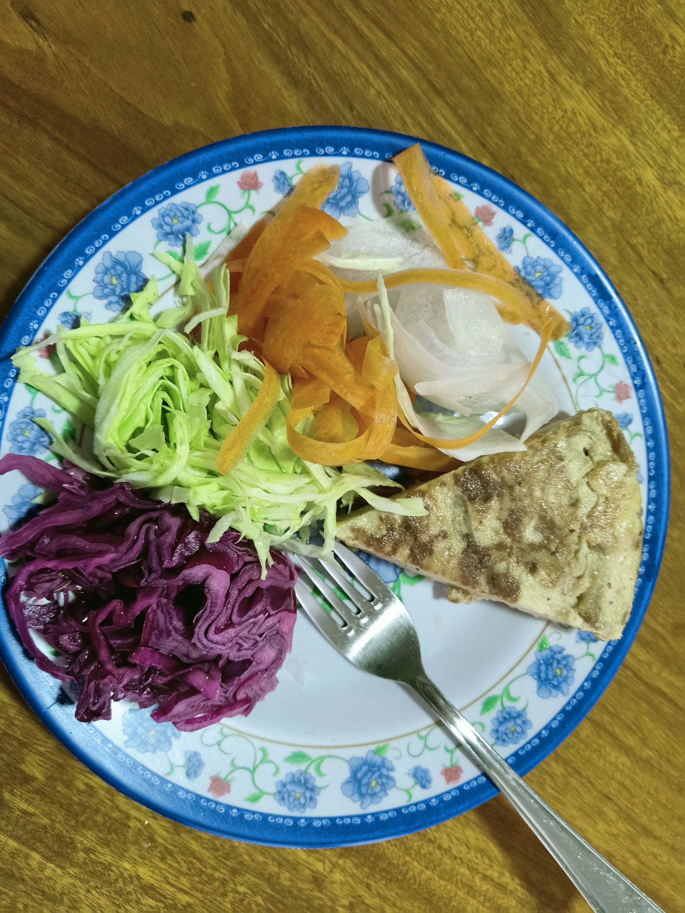 We ate very well on Saturday 11th September, day 17 of our #STFAH Lockdown. I didn’t wake up until 8.30am which was nice and I made more pickled red cabbage for later on. We still had some baguette left which we had put in the fridge so we warmed it in the microwave and shared the piece with butter on, then had a banana and a tangerine each. In the news there was talk of plans for Saigon to be fully open before Tet holiday next year, read about it here: https://tuoitrenews.vn/news/society/20210911/ho-chi-minh-city-plans-to-pilot-vaccine-travel-passes-in-three-stages-of-economic-reopening/63049.html For lunch things were getting a bit samey and my stomach really didn’t like the egg but I continued to eat tortilla, egg fried rice, asparagus, cabbage and carrots. We had 2 apples, donated by Bich, so we went mad and had 1 each – it was the best tasting apple I’ve had in a long time! In the afternoon there were more warnings of the typhoon coming and Duyet was outside with Cuong preparing the trees for a storm. There was a post shared on Facebook saying that there would be compulsory PCR tests done in Son Trạch, the commune where Phong Nha is; it started this afternoon and would finish on the 14th September, testing 1 person per household. I hoped plenty of people would be ready for it, thinking that the more people that were tested negative the better chance of us coming out of a lockdown. Captain Caveman cooked chicken, potatoes and cabbage for dinner and I had half a beer. The rain came and then there was a power cut so we went to bed very early. I’m so grateful for the emergency light a friend brought us from Germany as my phone wasn’t charged.