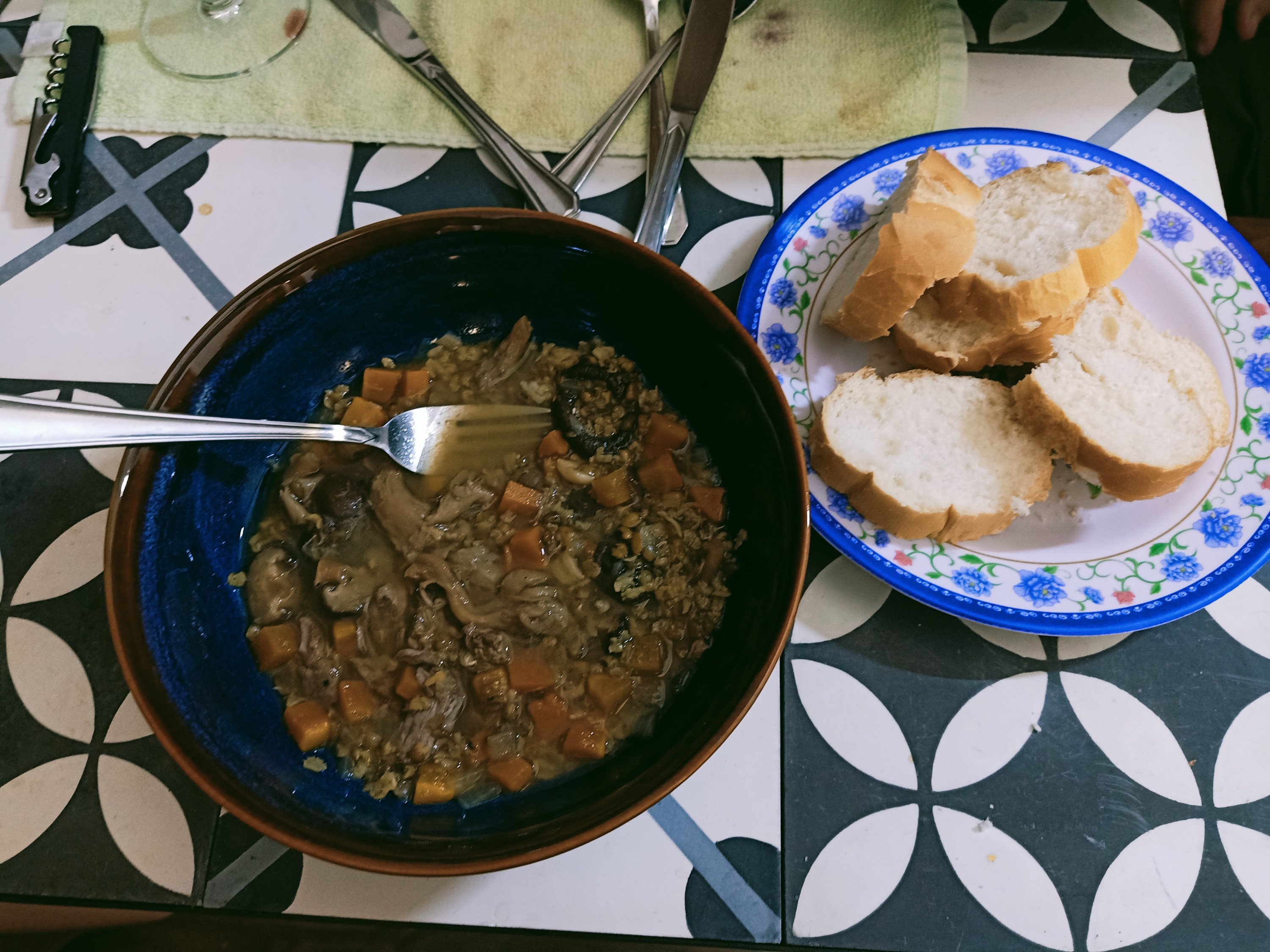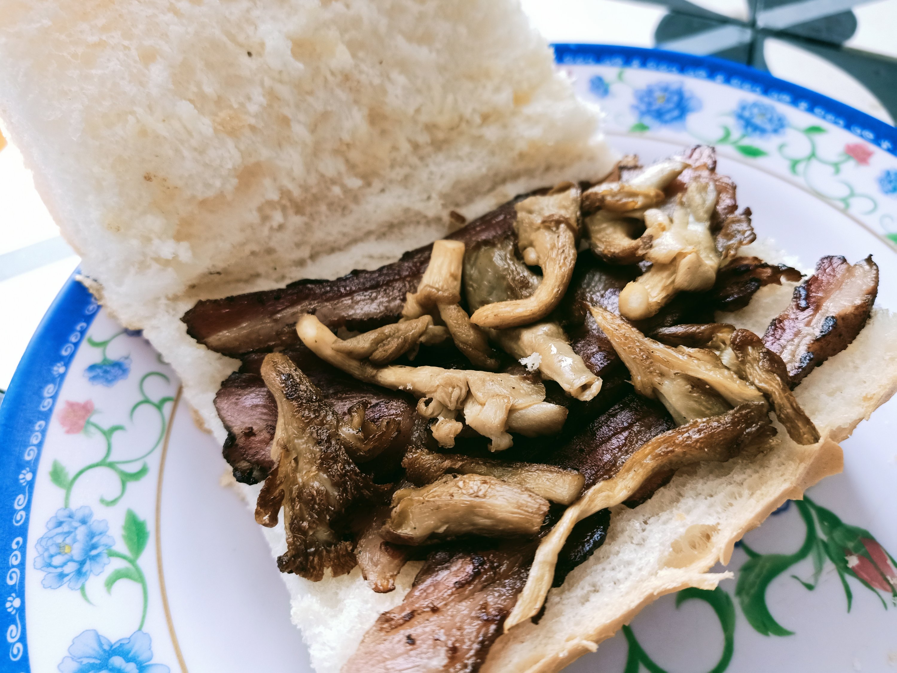 By 10am I was regretting turning down a bacon sandwich from Captain Caveman early this morning, so I had a 2nd breakfast of a bacon and mushroom baguette (no butter or sauce) and a piece of carrot. I’d already chopped all the veg, prepared the stock (using Captain Caveman’s special recipe) and seared a couple of the beef fillets. I love using the rice cooker as a slow cooker and off I went back to the Aircon in the bedroom. At lunchtime I made myself an iced chocolate drink, which was a waste of calories because it wasn’t good, finished off the tortilla and had a couple of pieces of dragon fruit. It took a bit of willpower not to start eating the beef stew which smelled so lovely. Duyet found me a spray bottle for me to use on my mushrooms and the laborious task of spraying them several times a day began, a bit sad that I wouldn’t get to eat them as I’d have left!